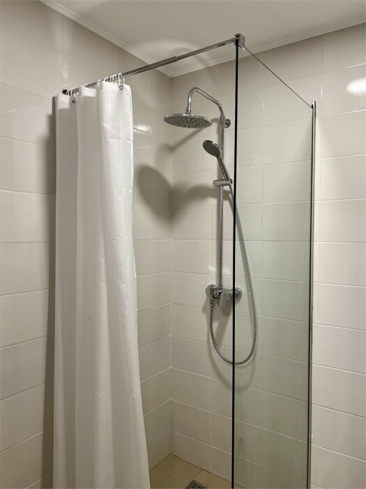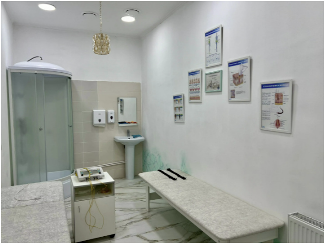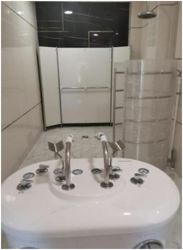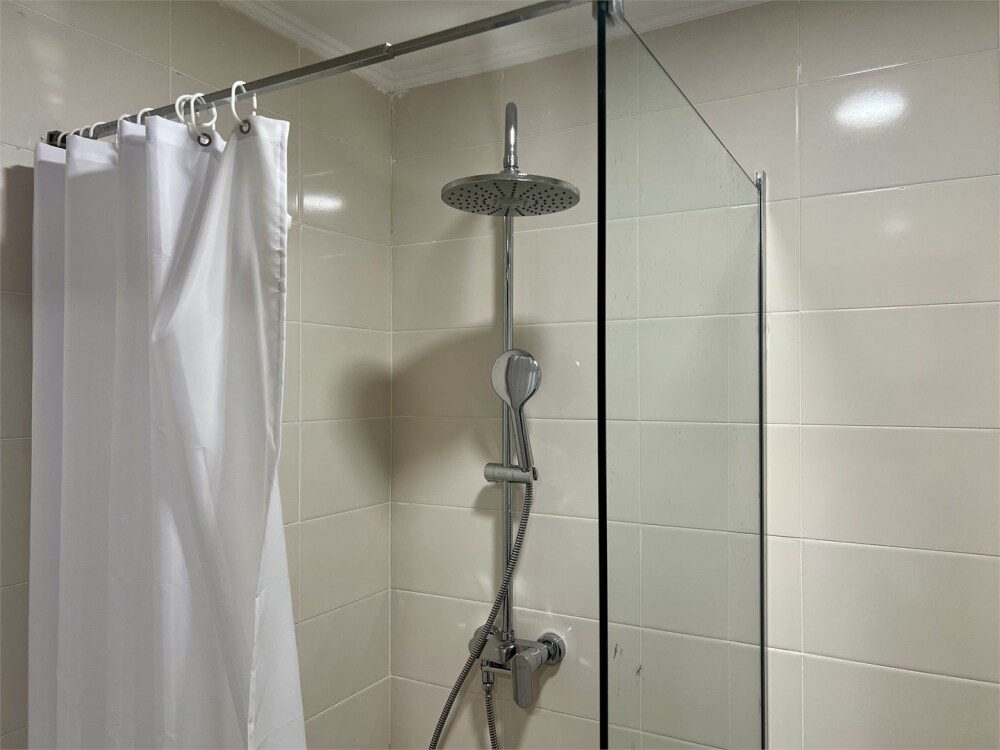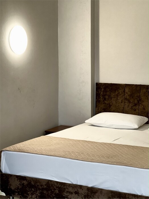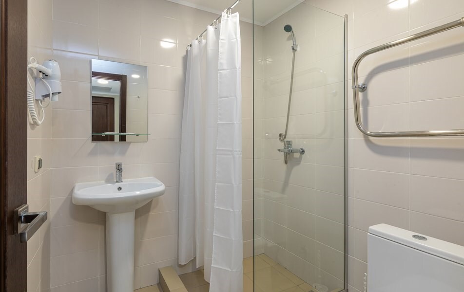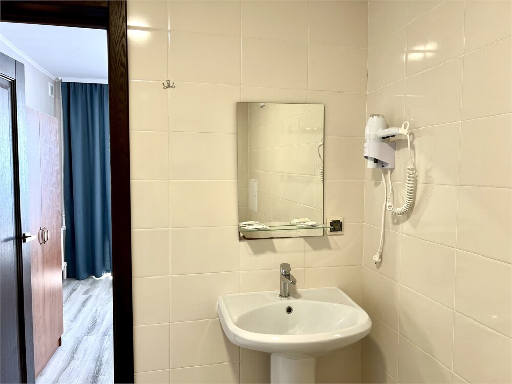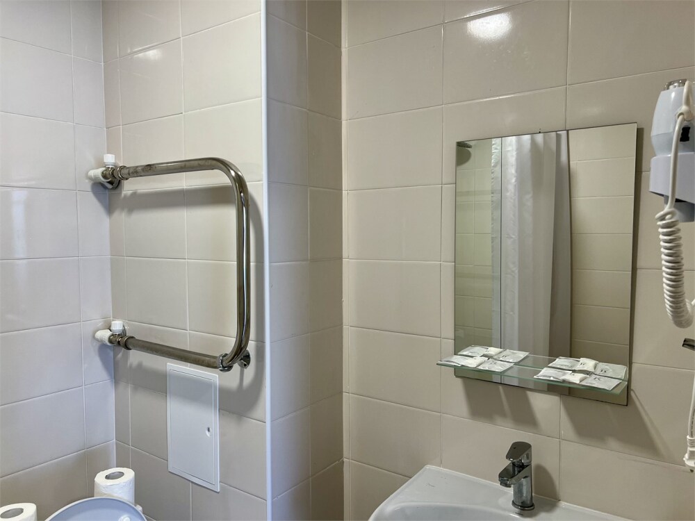 Номер: оснащен двумя двуспальными кроватями, прикроватными тумбочками, чемоданницей, двумя столами, двумя стульями, двумя шкафами, двумя телевизорами и двумя холодильниками. В санузле имеется душ.