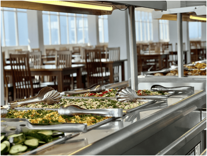 Конференц-зал отеля, расположенный на 2-м этаже, представляет собой просторное помещение площадью 240 кв. м. Большие окна обеспечивают ощущение простора и легкости, а также открывают панорамный вид на горы. Интерьер зала подходит как для торжественных мероприятий, так и для деловых встреч.