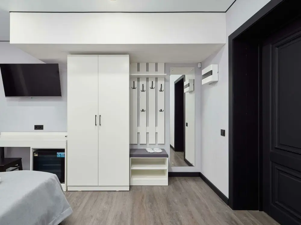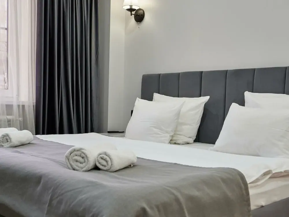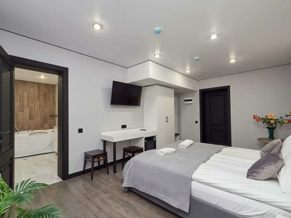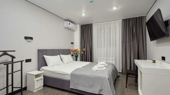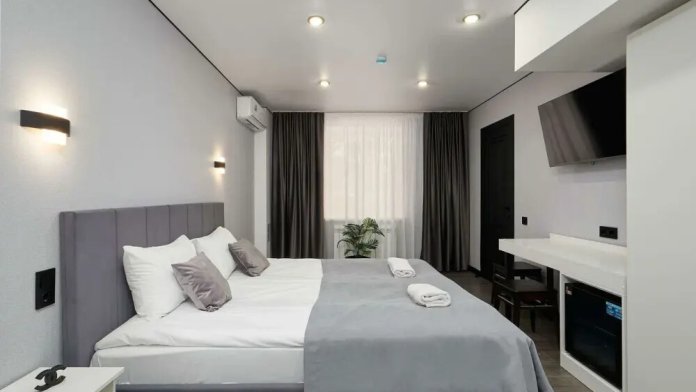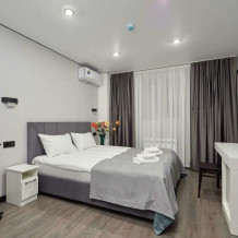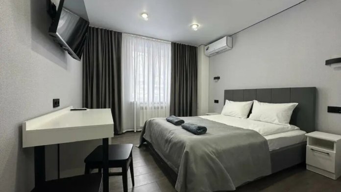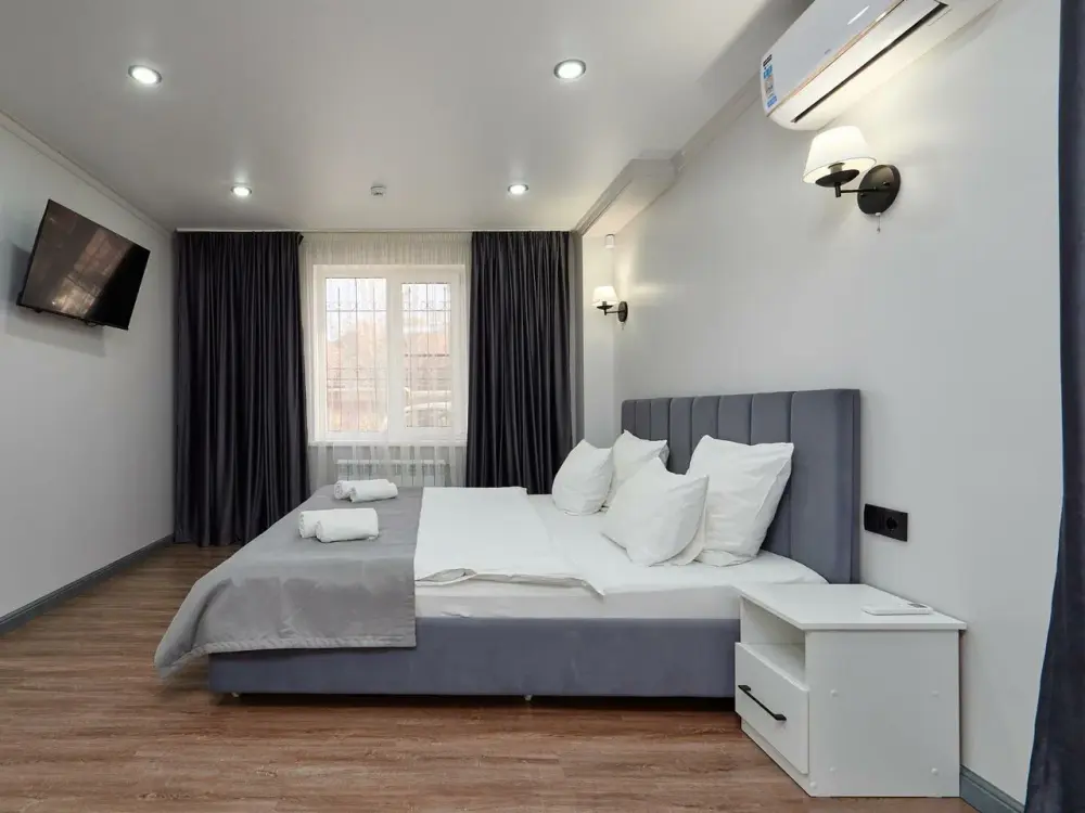 Каждый наш номер с хорошей звукоизоляцией располагает всеми удобствами для комфортного времяпрепровождения. В распоряжении гостей телевизор с плоским экраном, письменный стол, удобная кровать, шкаф для одежды, холодильник. Ванная комната оснащена всеми необходимым. Постельное белье, полотенца и средства личной гигиены: шампунь, кондиционер, гель для душа предоставляются. По предварительному запросу бесплатно предоставляются детская кроватка до 3-х лет и стульчик для кормления.