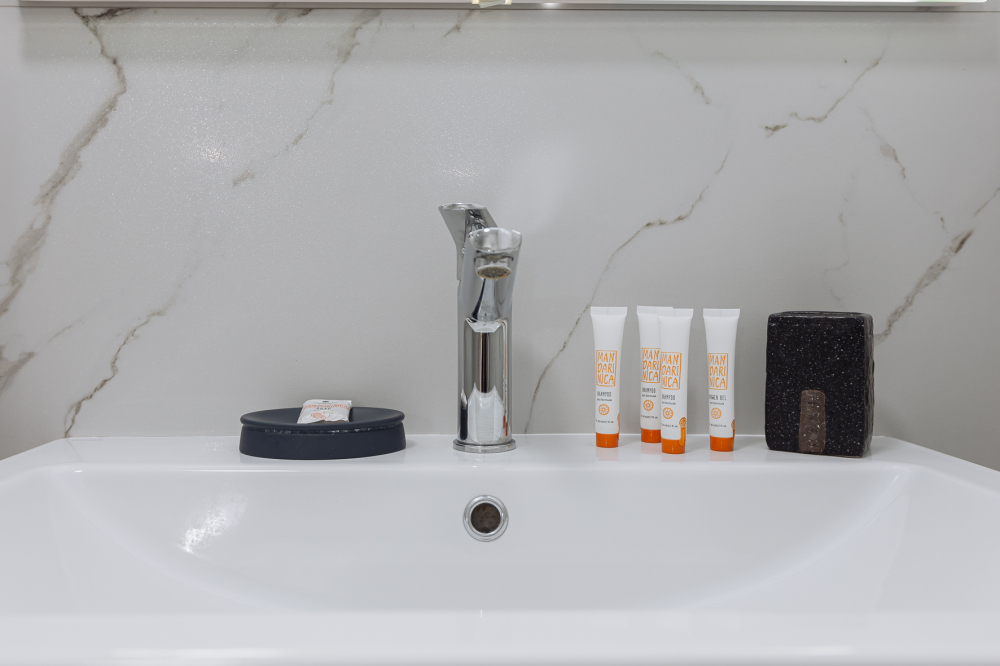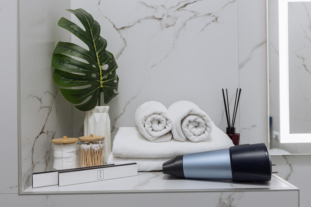 - Для каждого гостя подготовлено по 2 полотенца (для душа и рук) + 1 полотенце для ног.