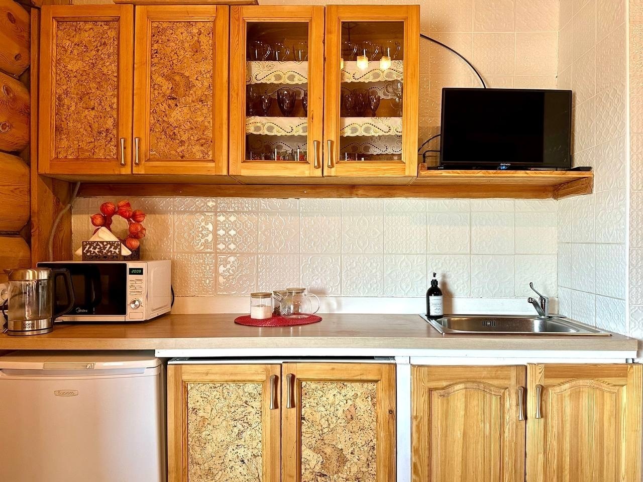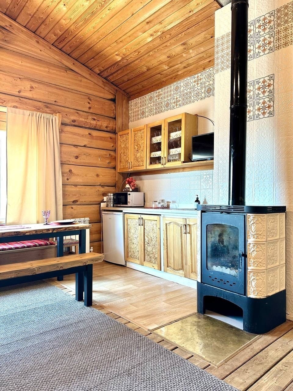 полностью оборудованная кухня (плита, посуда, шампуры, казан).