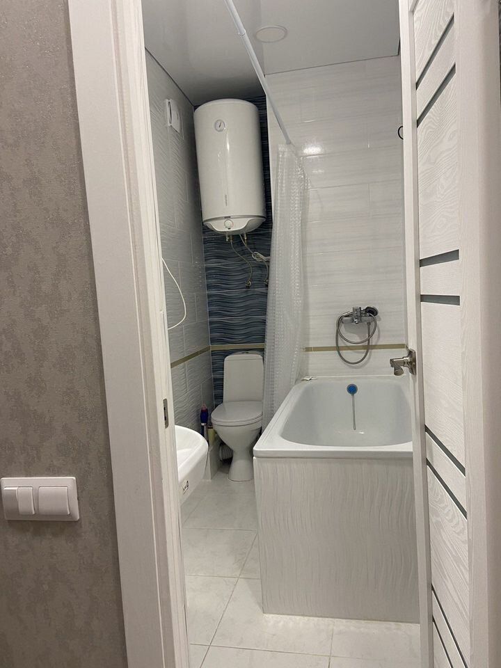 В квартире всё необходимое для комфортного проживания: кондиционер и телевизор, холодильник, ТВ, стиральная машина, полностью оборудованная кухня, микроволновка, электрическая плита. А также вся необходимая мебель. В спальне двуспальная кровать. Ванная комната совмещённая с санузлом. Стиральная машина, утюг с гладильной доской.
