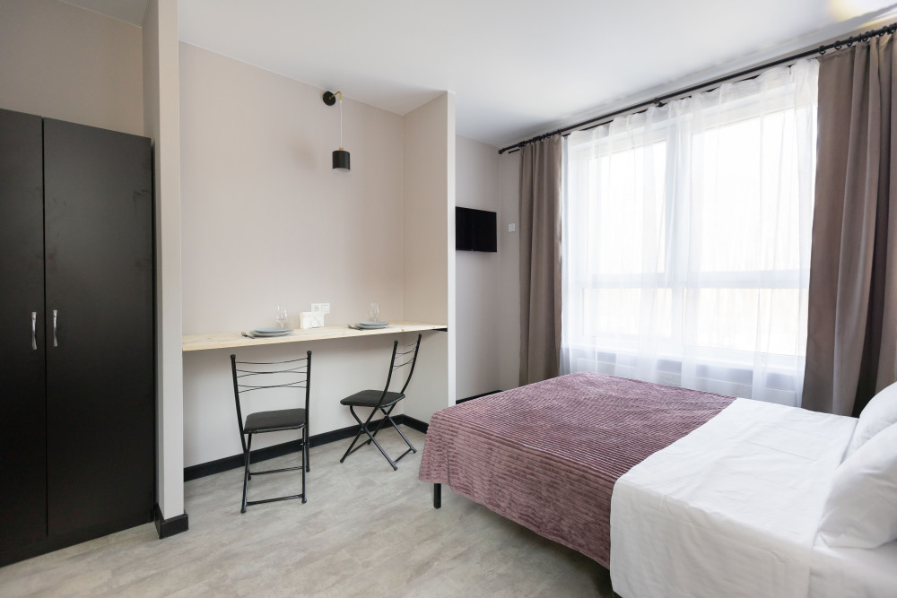 Оснащение: телевизор, кухня, холодильник, электрический чайник, микроволновая печь, фен, плита, стиральная машина.