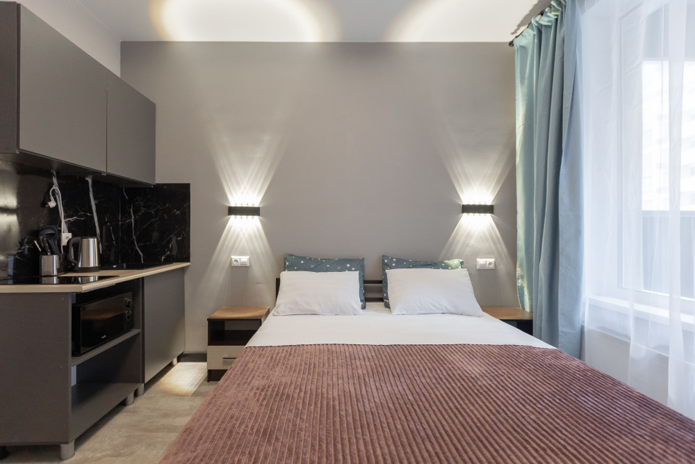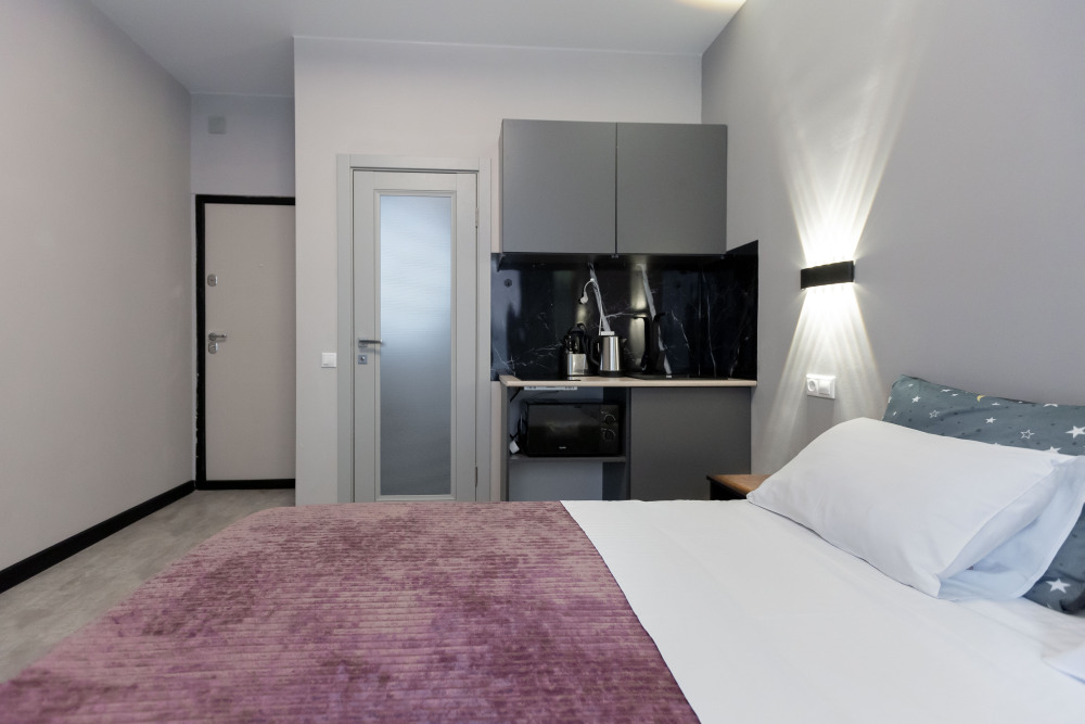 Оснащение: телевизор, кухня, холодильник, электрический чайник, микроволновая печь, фен, плита, стиральная машина.