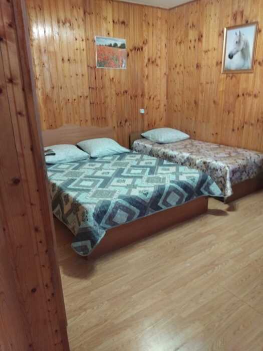 В доме три отдельные комнаты, они все изолированные, у каждой свои ключ, что очень удобно для компании из нескольких семей. В каждой комнате санузел, сплит система, телевизор. Также имеется просторный балкон на этаже. Собственная кухня со всей необходимой техникой и посудой.