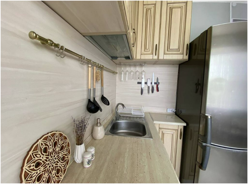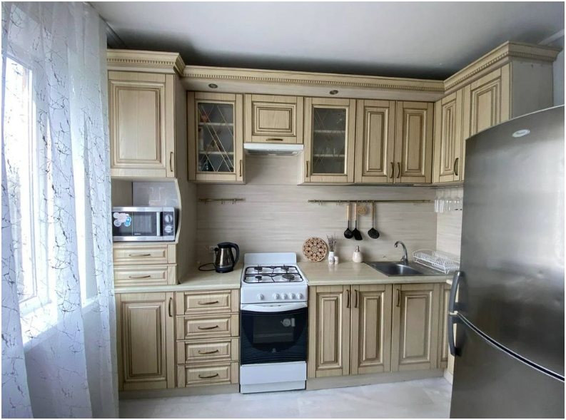 В квартире: интернет, холодильник, ТВ, стиральная машина, микроволновая печь, фен, утюг, постельное белье, полотенца, шампунь, гель, мыло, зонт, электрическая сушилка для обуви, дождевики.