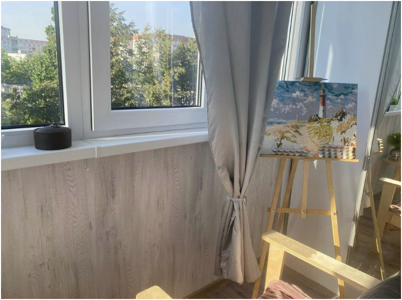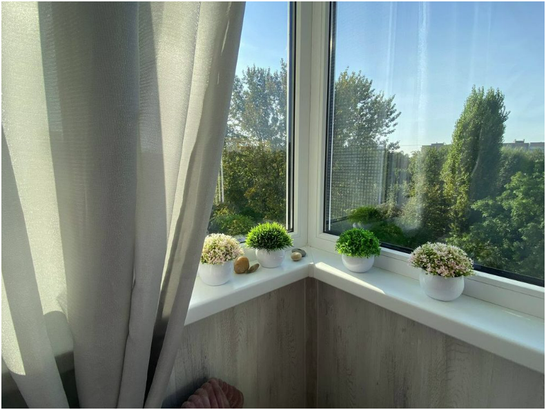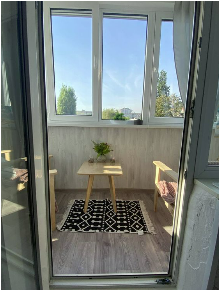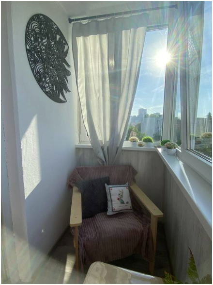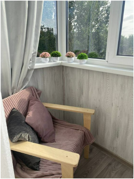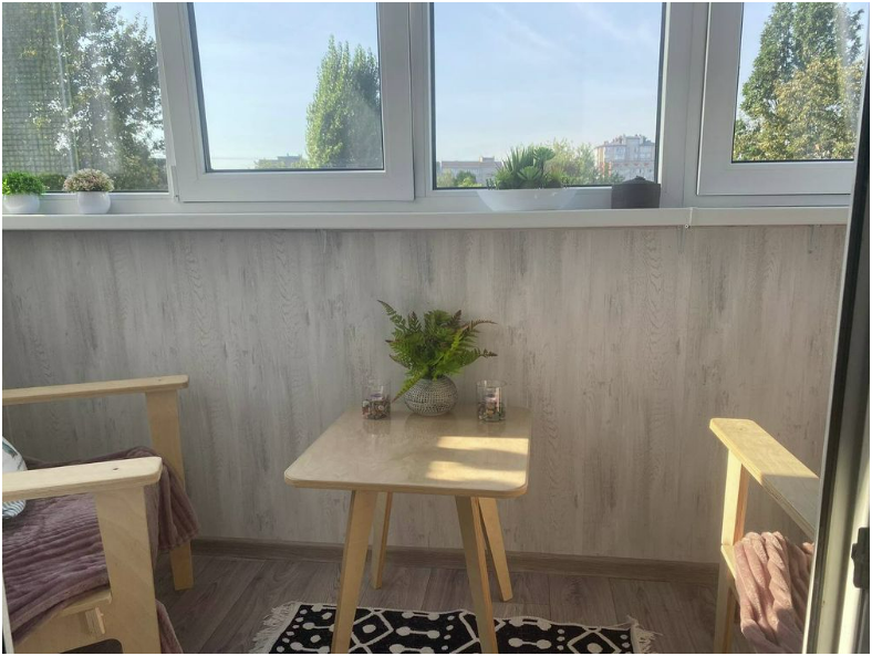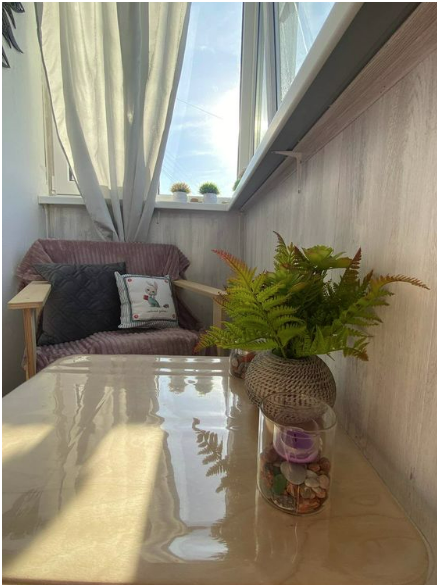 Просторная лоджия для отдыха теплым вечером.