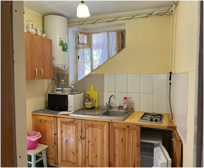 Комната, кухня, душ и туалет, телевизор-смарт, холодильник, СВЧ. Тихий, зеленый двор.