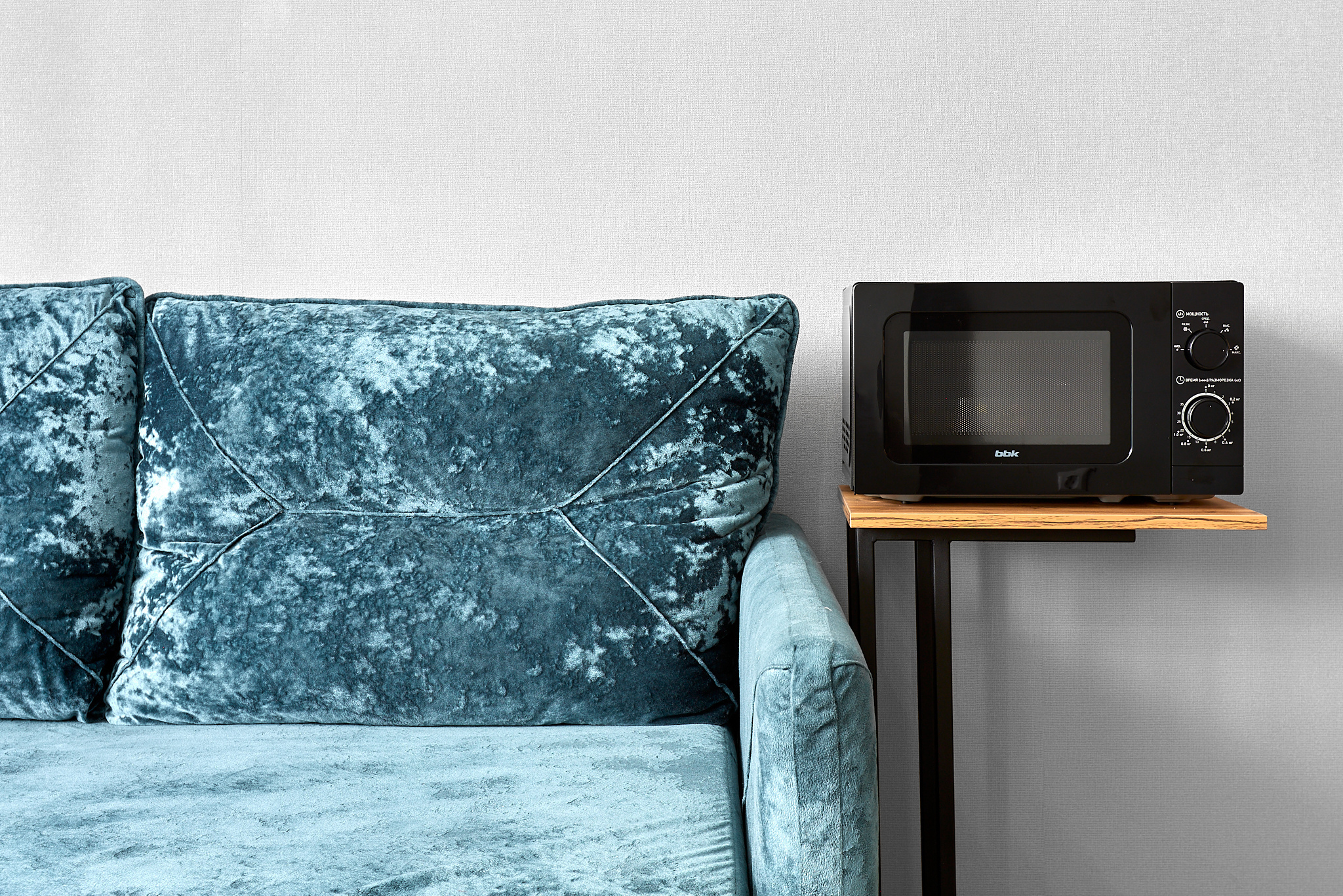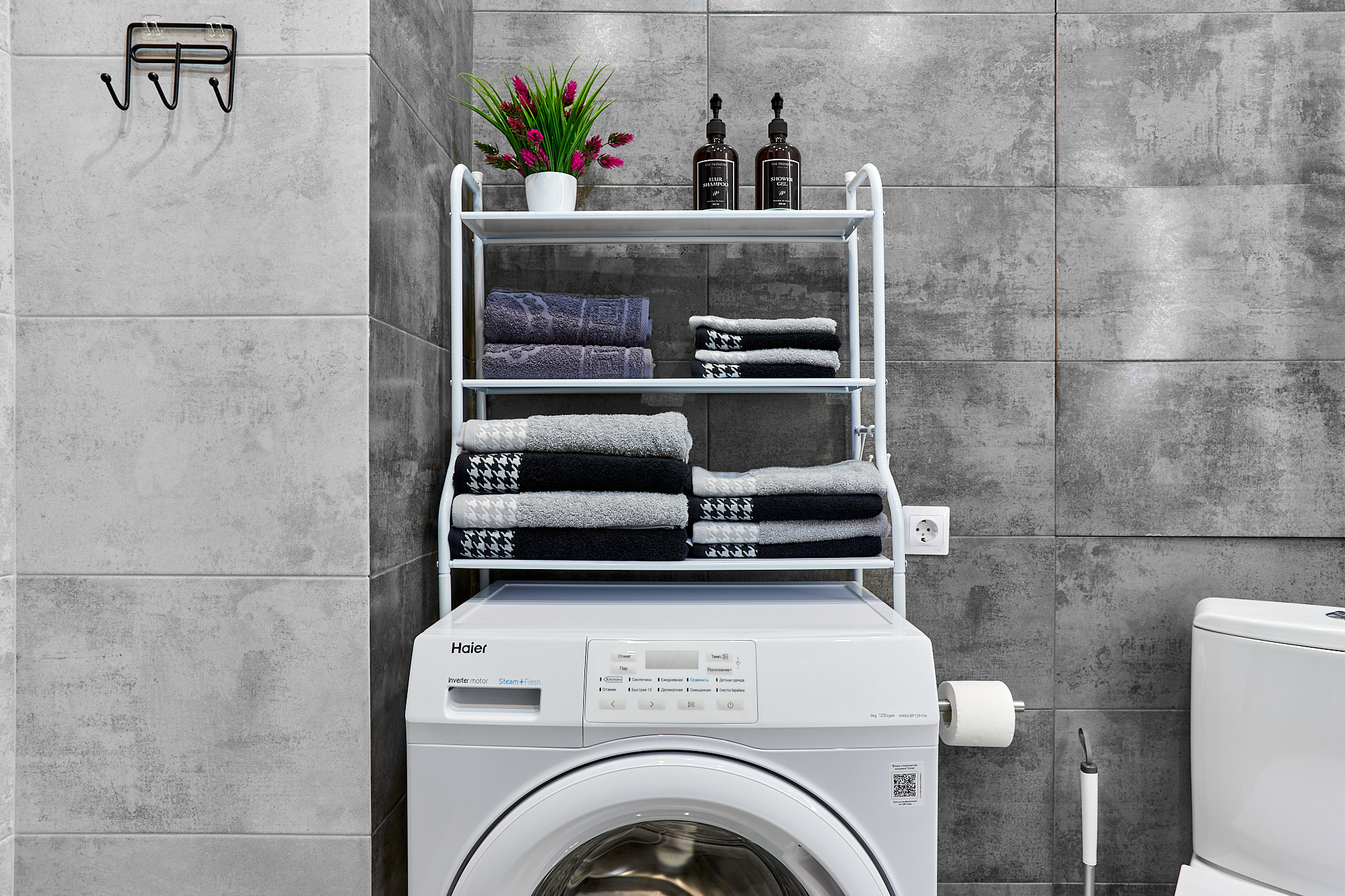 В квартире есть все необходимое для проживания: стиральная машина, сушилка для белья, гладильная доска, утюг, фен. Набор посуды, столовые приборы, сковорода, кастрюли, чайник, микроволновая печь.