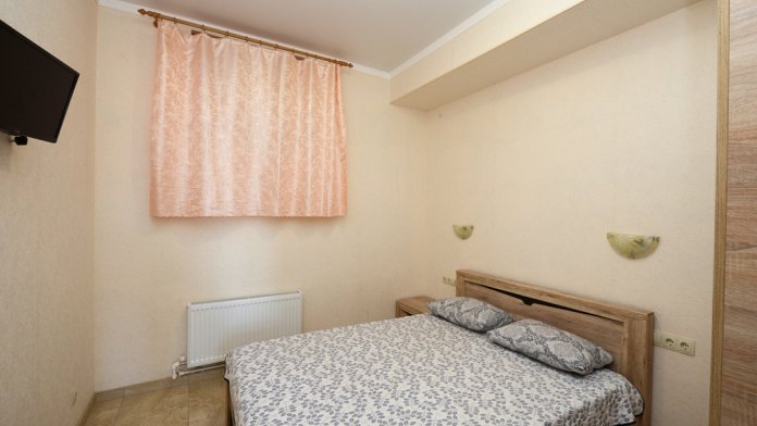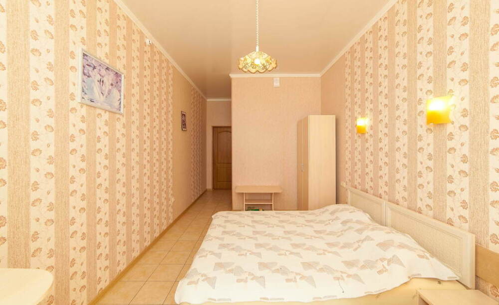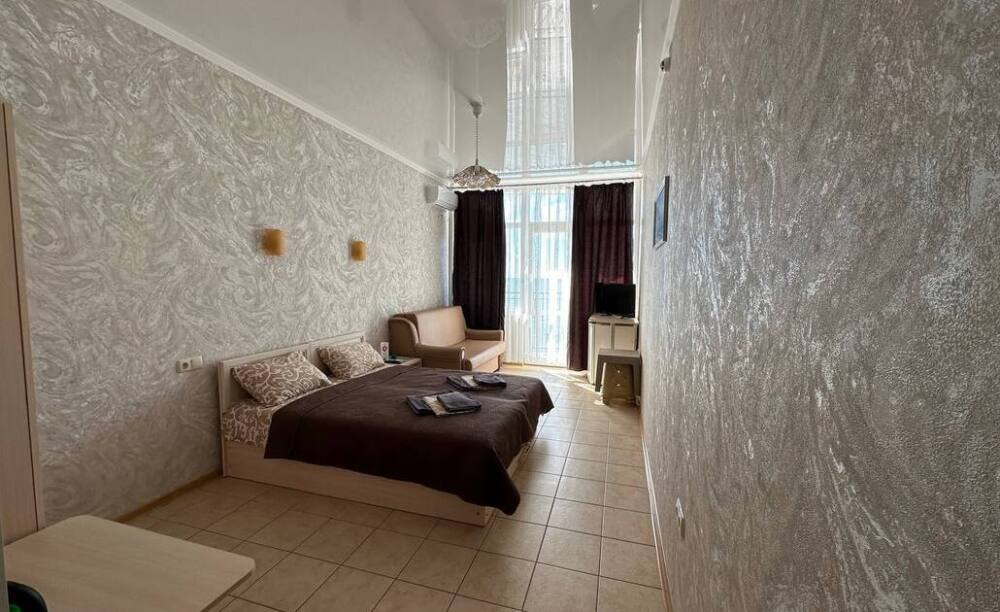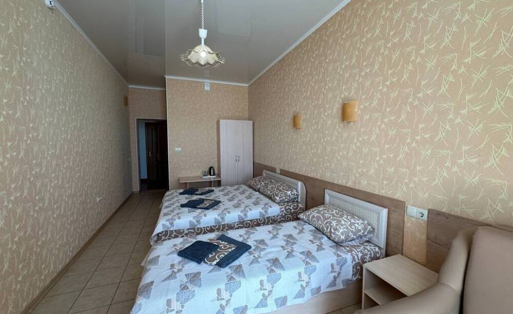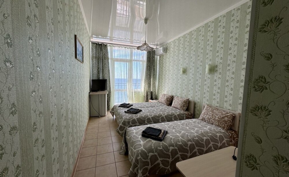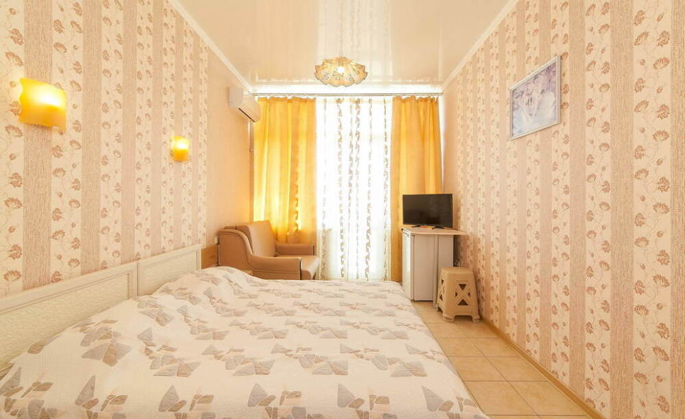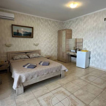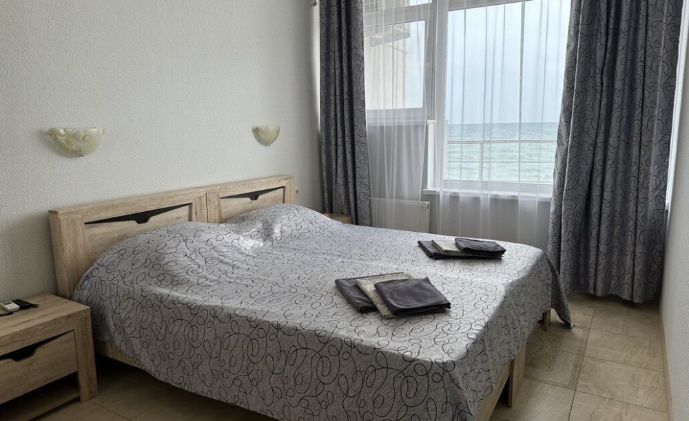 Спальное место в комнате: одна двуспальная кровать (ширина 170 см). В этой комнате есть все для удобного отдыха: кондиционер, плазменный телевизор, холодильник, санузел с душем, фен, шкаф. Прекрасный вид на море с балкона добавляет комфорт этой комнате. Комнаты находятся на 4-5 этажах.