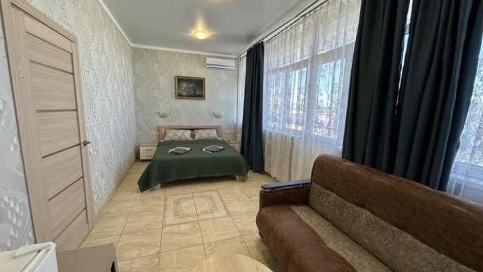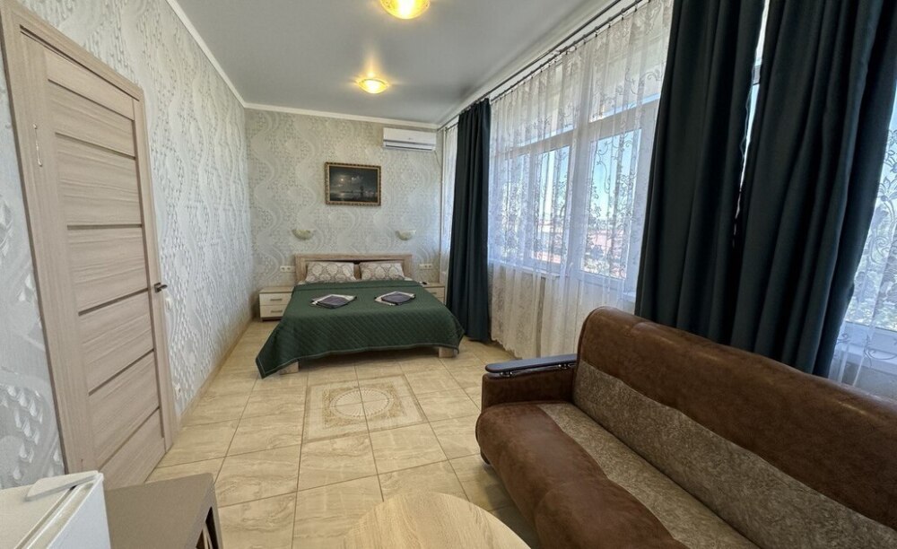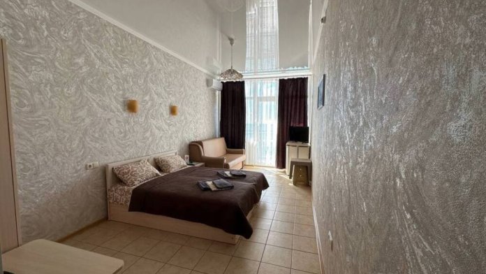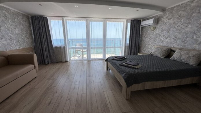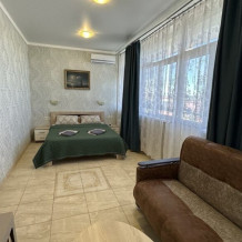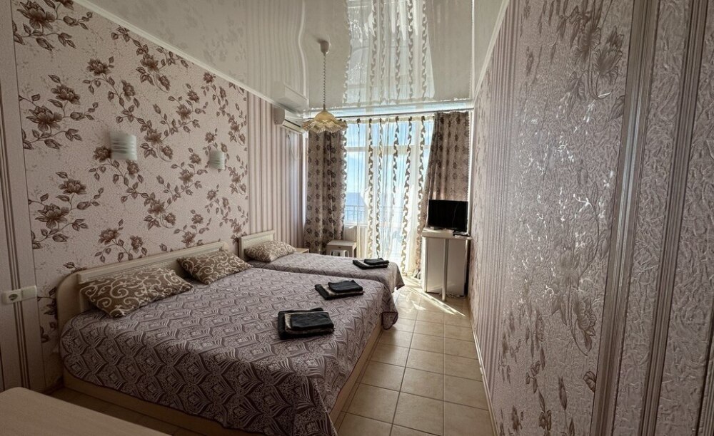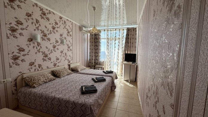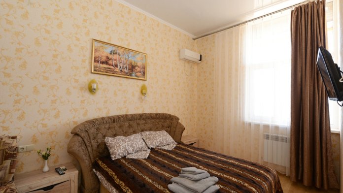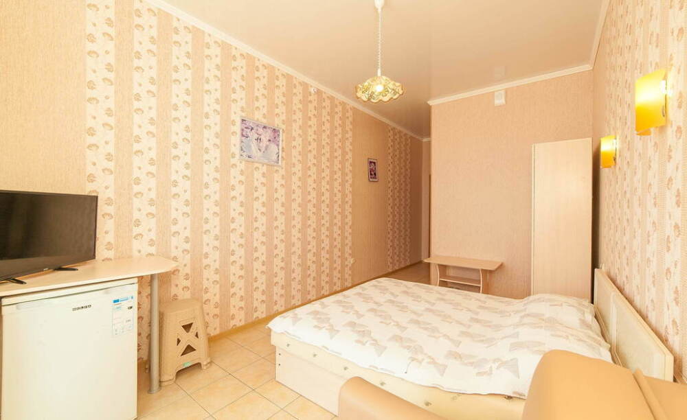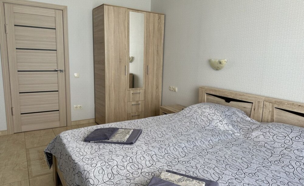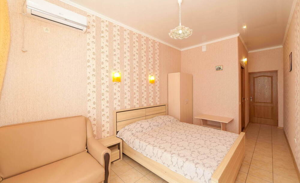 Спальное место в комнате: одна двуспальная кровать (ширина 170 см). В этой комнате есть все для удобного отдыха: кондиционер, плазменный телевизор, холодильник, санузел с душем, фен, шкаф. Прекрасный вид на море с балкона добавляет комфорт этой комнате. Комнаты находятся на 4-5 этажах.