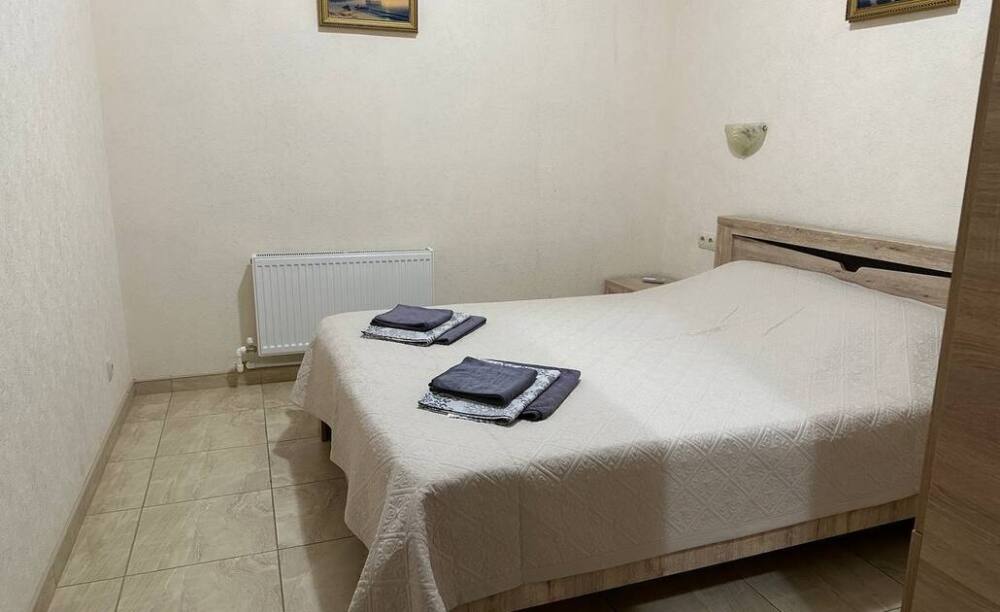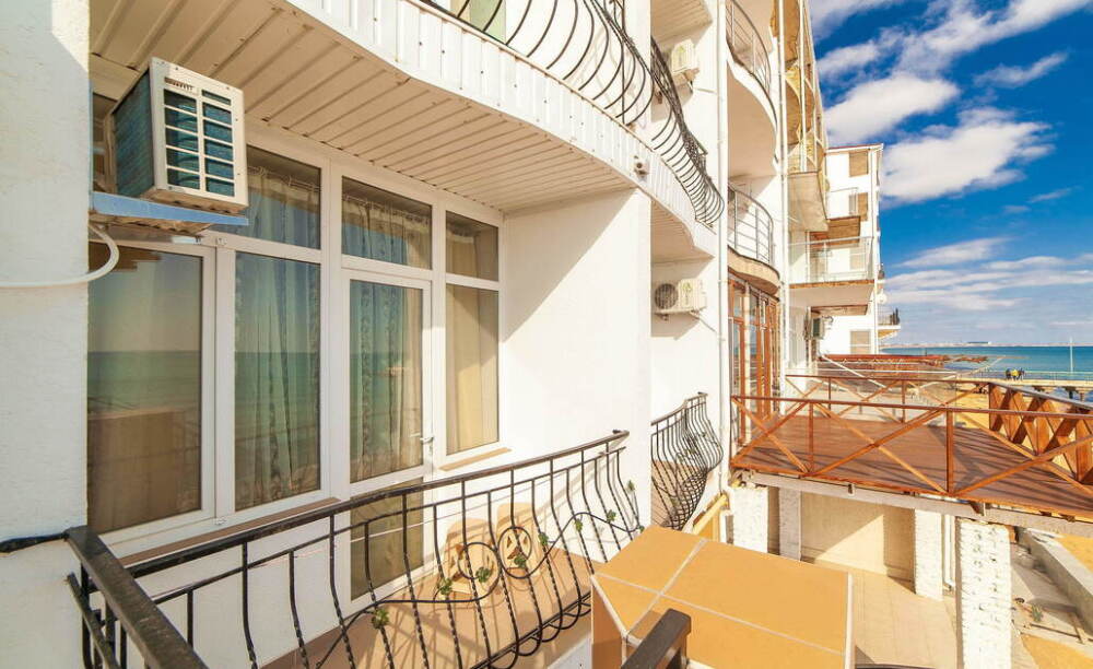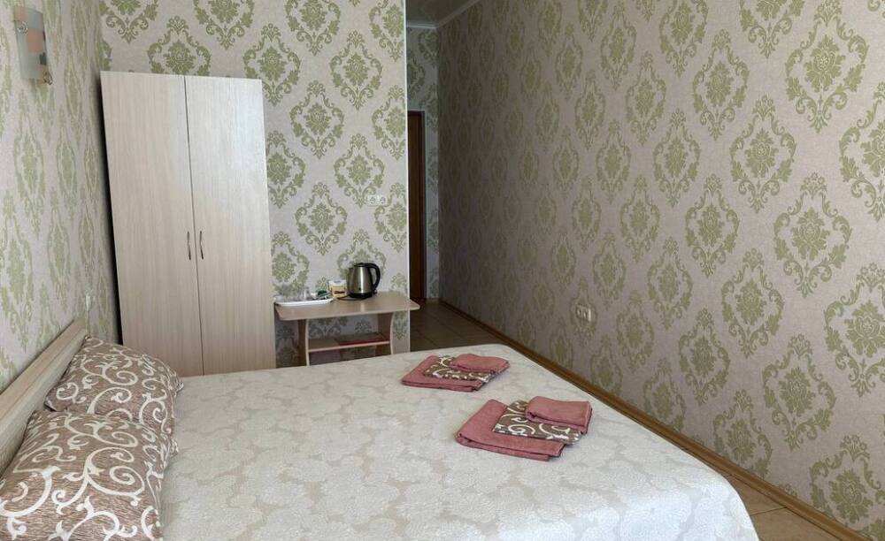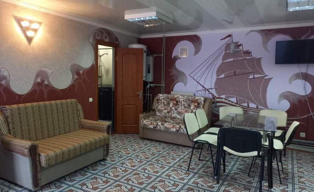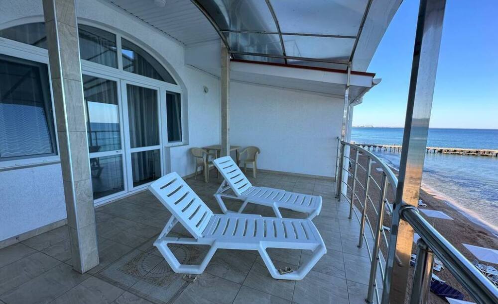 Спальные места в комнатах: 2 двуспальные кровати, 2 двуспальных дивана, так же есть возможность поставить доп. места, которые оплачиваются отдельно. Две раздельные комнаты с кондиционерами, плазменными телевизорами в каждой комнате, своя кухня, посуда, микроволновая печь, индукционная плита на 2 конфорки, холодильник, электрочайник, санузел с душем, фен, шкаф. Коттедж находится в 20 метрах от моря. На площадке возле коттеджа есть уютное место для отдыха, где стоит столик с креслами, где можно вечером выпить бокал крымского вина под тихую расслабляющую музыку и шум прибоя.