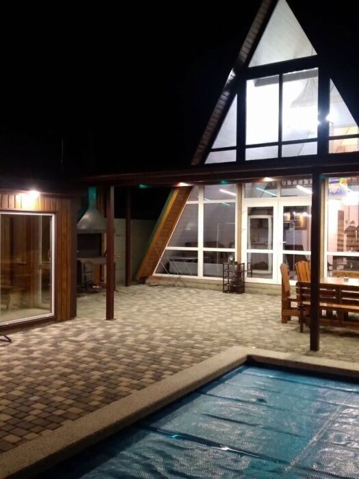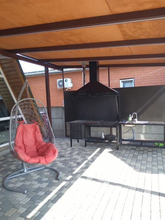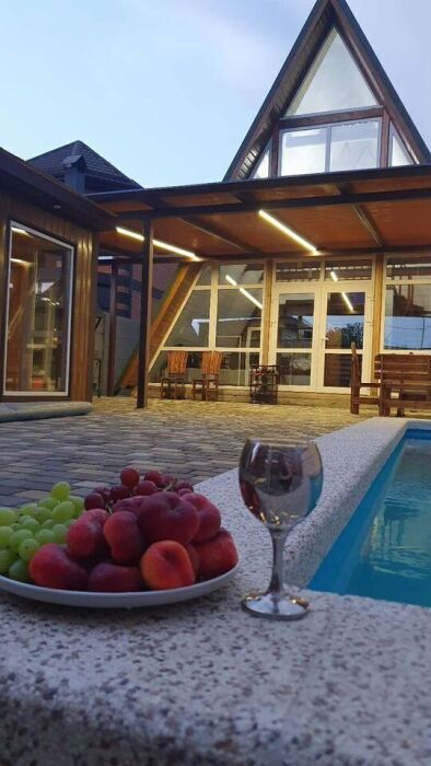 В доме есть все необходимое для комфортного отдыха: посуда, полотенца, микроволновка, чайник, холодильник, Wi-Fi, ТВ с интернетом, sоundbаr с поддержкой блютуза, кондиционер на первом и втором этаже. На террасе крытая зона отдыха: стол, стулья на 10 человек, мангал и печь на дровах для казана, шампура и казан то же есть. Открытый бассейн с теплой и чистой водой 36-38 градусов зимой и 31-33 градусов летом.