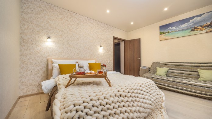 - двуспальная кровать и комфортный диван;