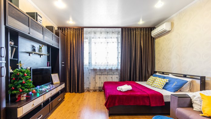 - уютная двуcпальная кpoвaть и удoбный двуспальный диван;