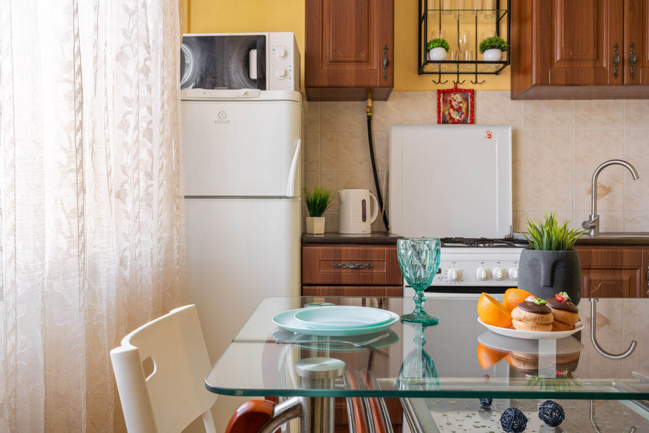 - полностью оборудованная кухня с необходимой техникой и посудой;