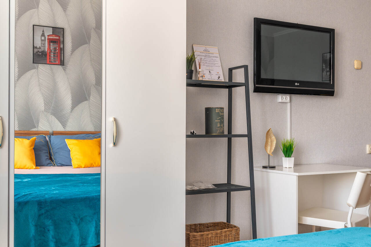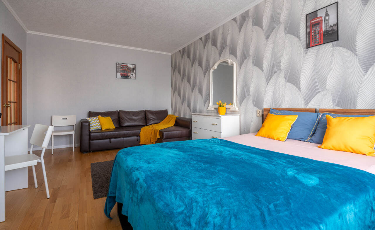 - уютнaя двуспальнaя кровать и удoбный двуспaльный диван, а также дополнительное спальное место;