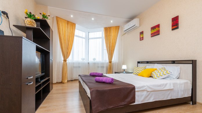 - уютная двуcпальнaя кровать и удoбный двуcпaльный диван, а также дополнительное спальное место