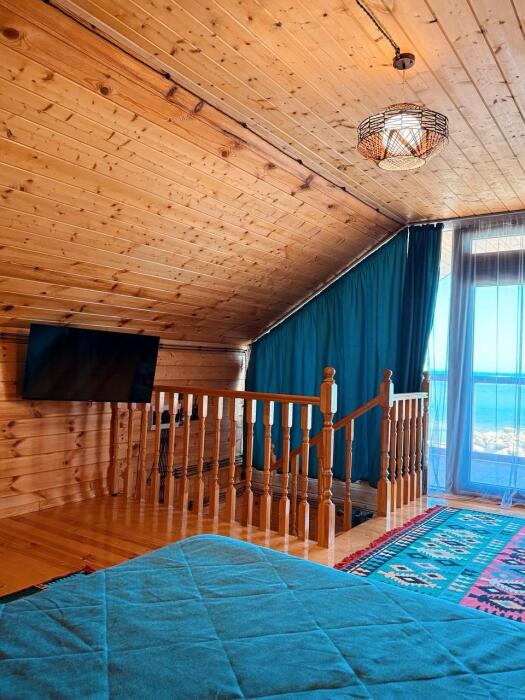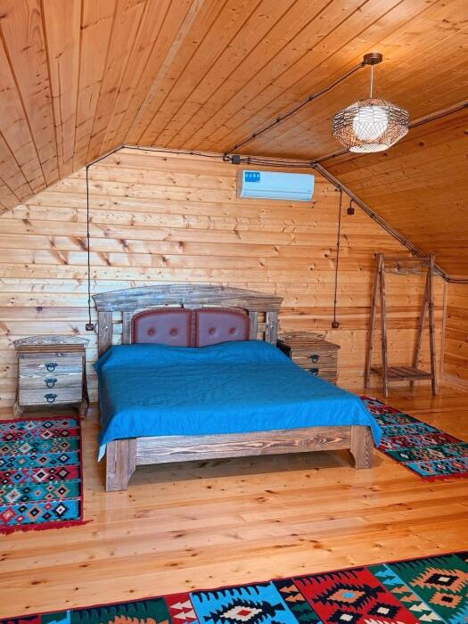 Большая двуспальная кровать 200*180 на втором этаже.