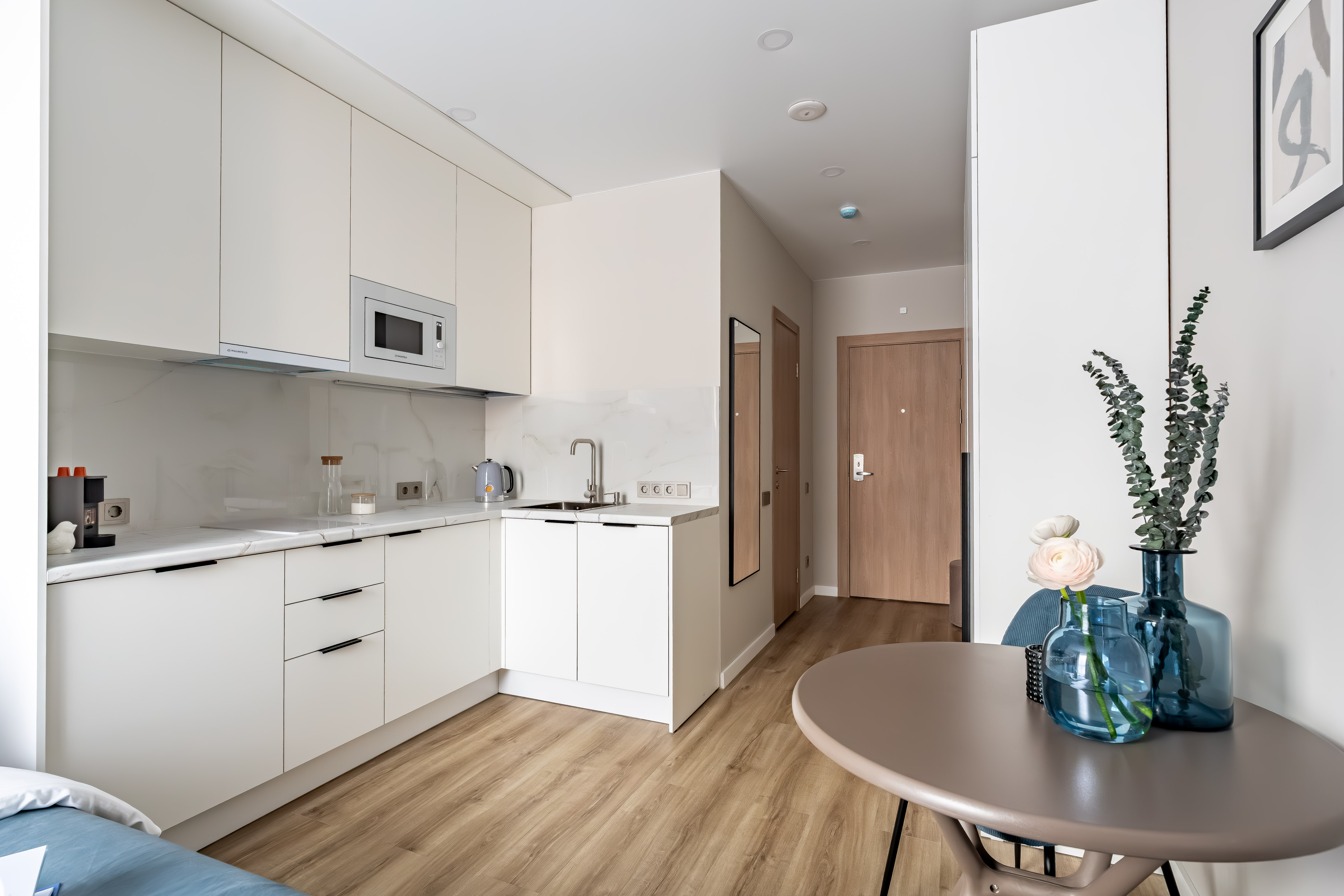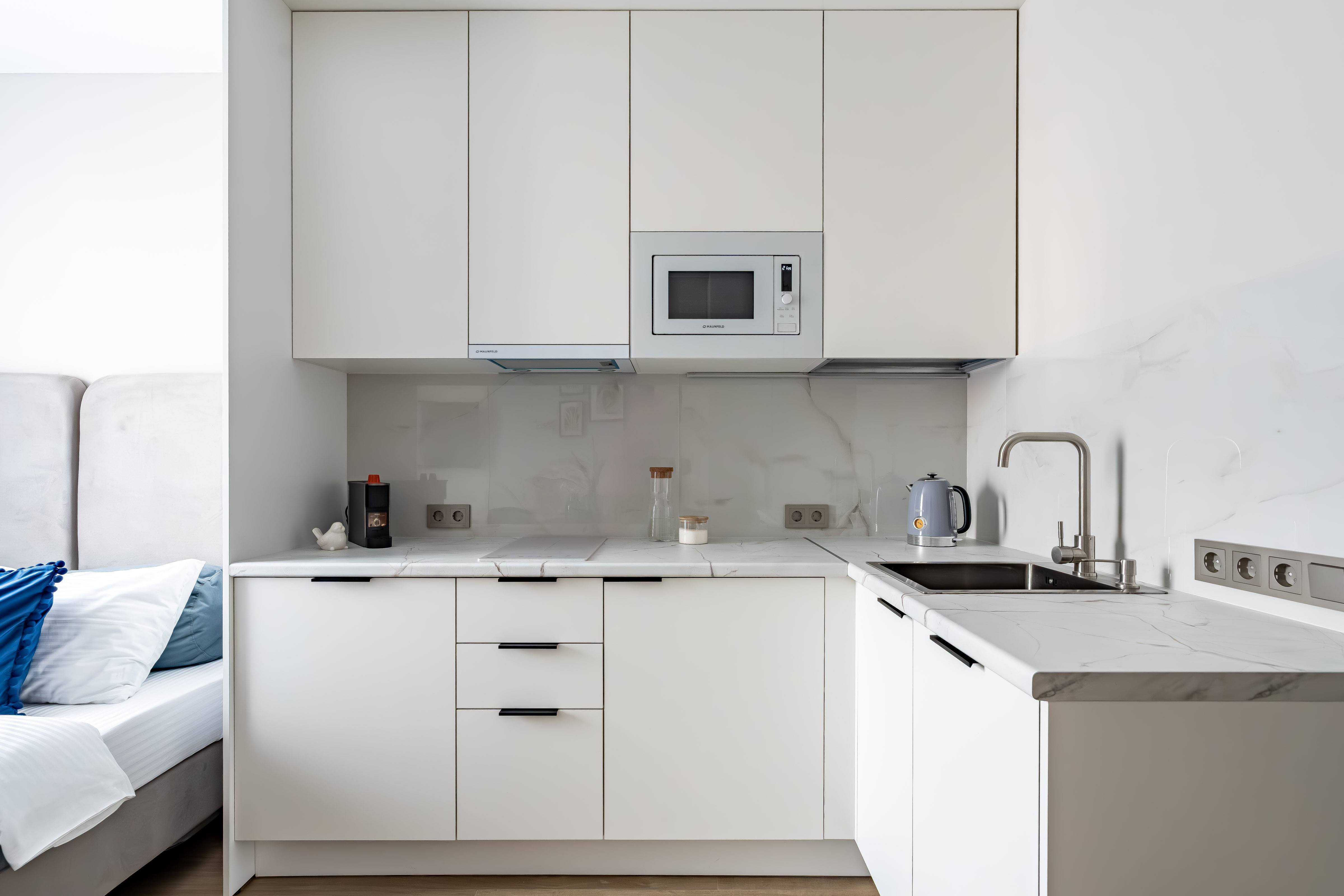 — Кухня со всей кухонной утварью и холодильником, где вы можете приготовить завтрак или разогреть ужин.
