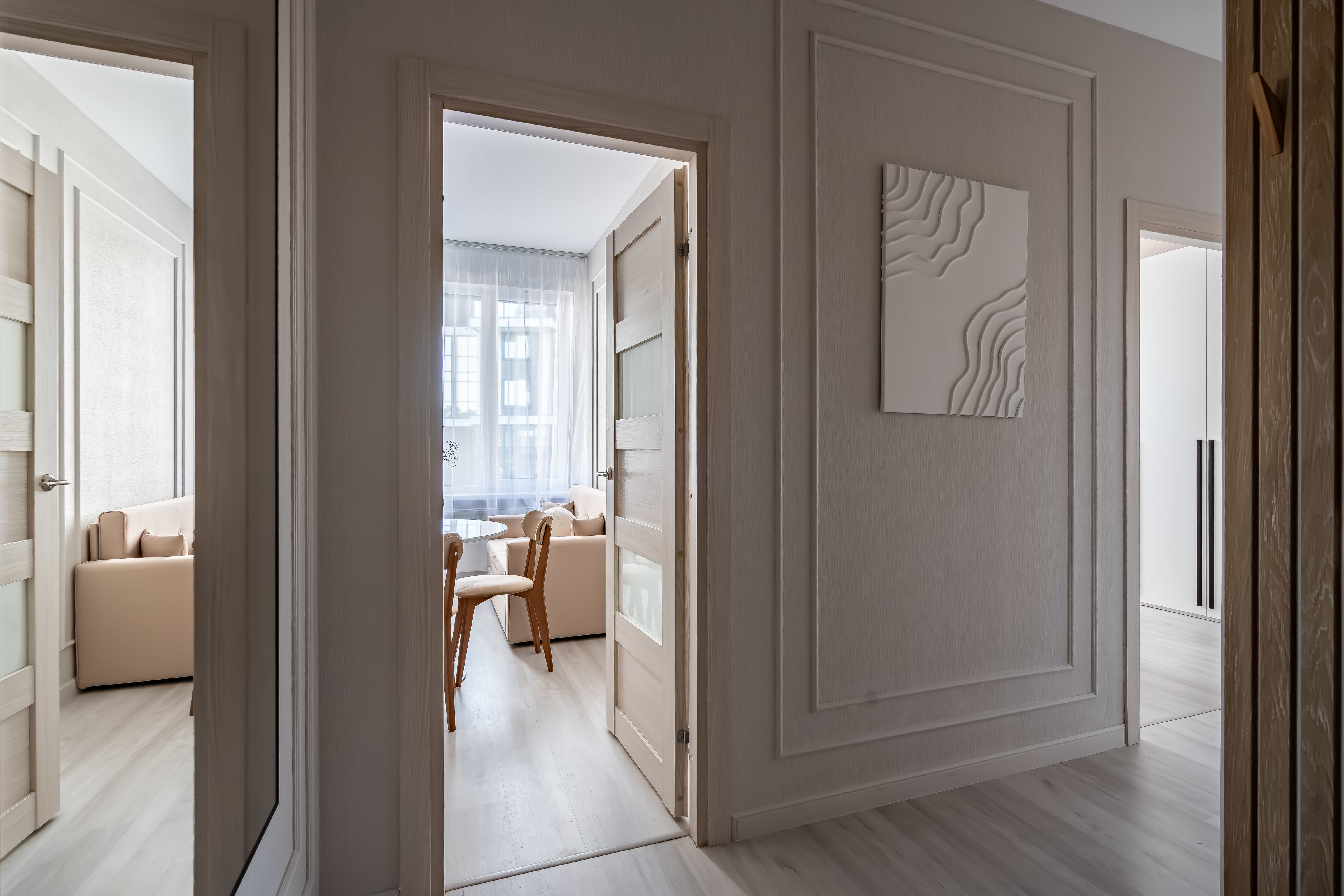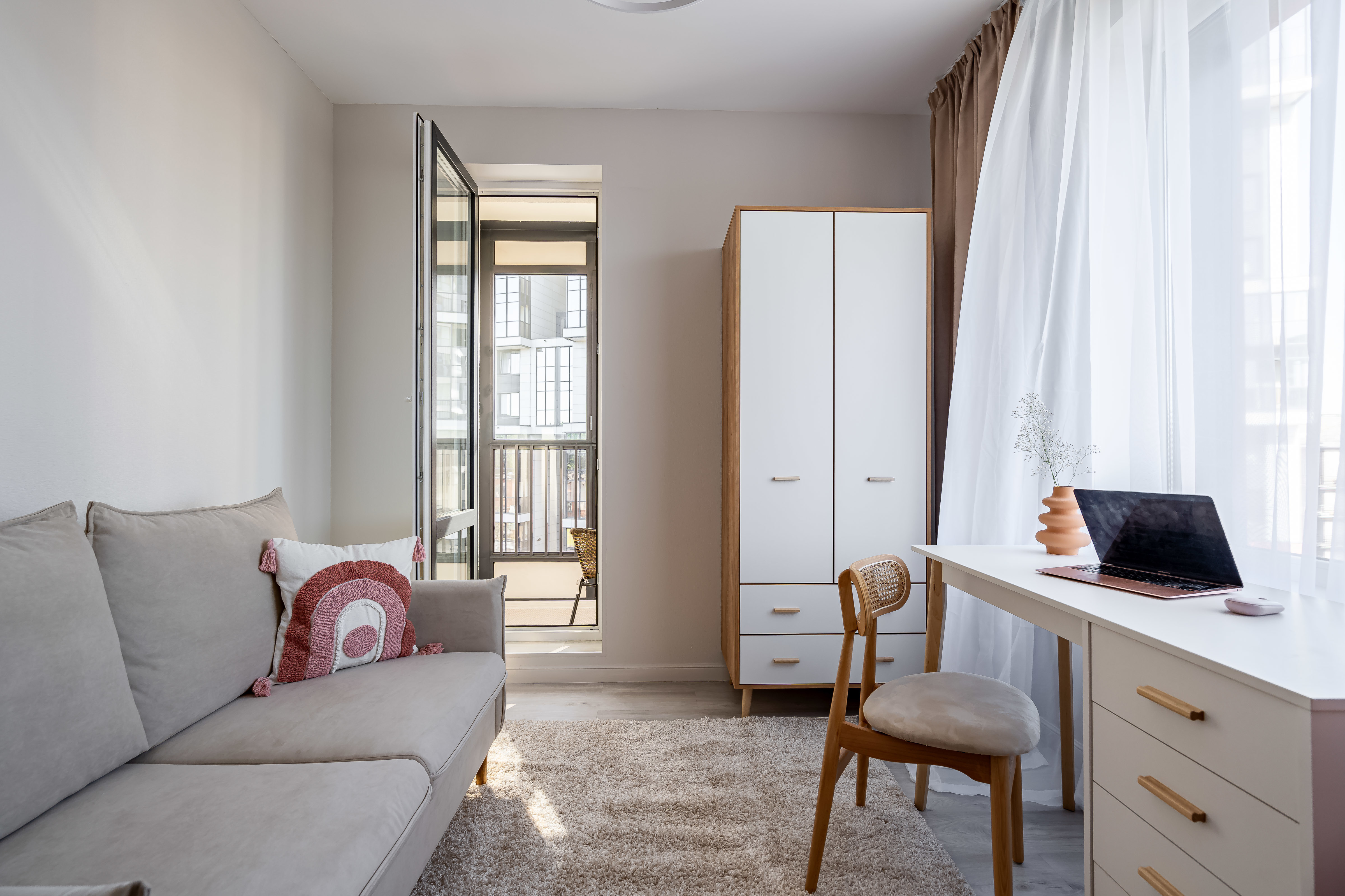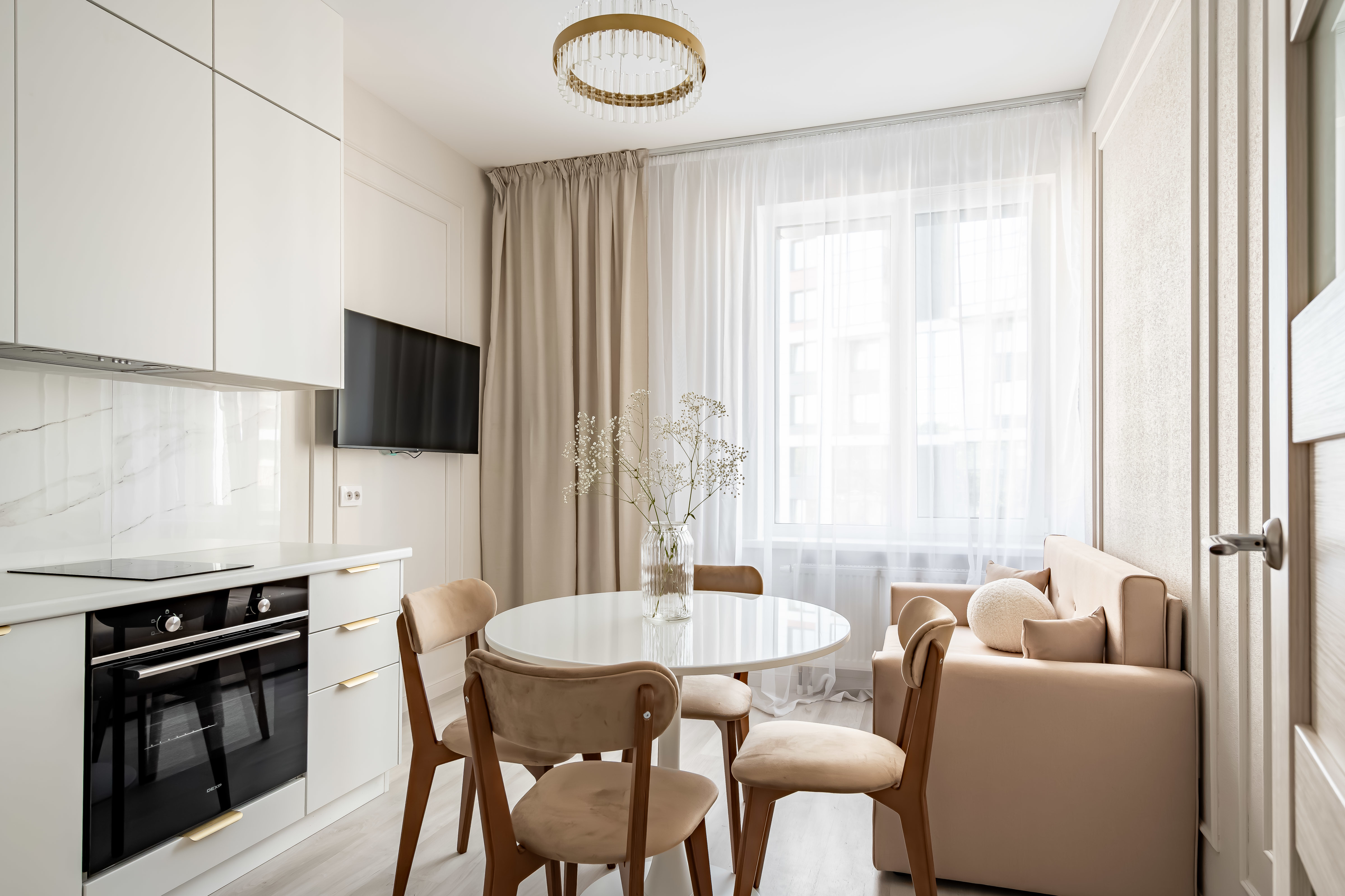 — Спальные места 2+2+2. Удобная кровать в спальне (160 см), раскладной диван (140 см) во второй изолированной спальне с выходом на лоджию, и раскладной диван в кухне-гостиной.
