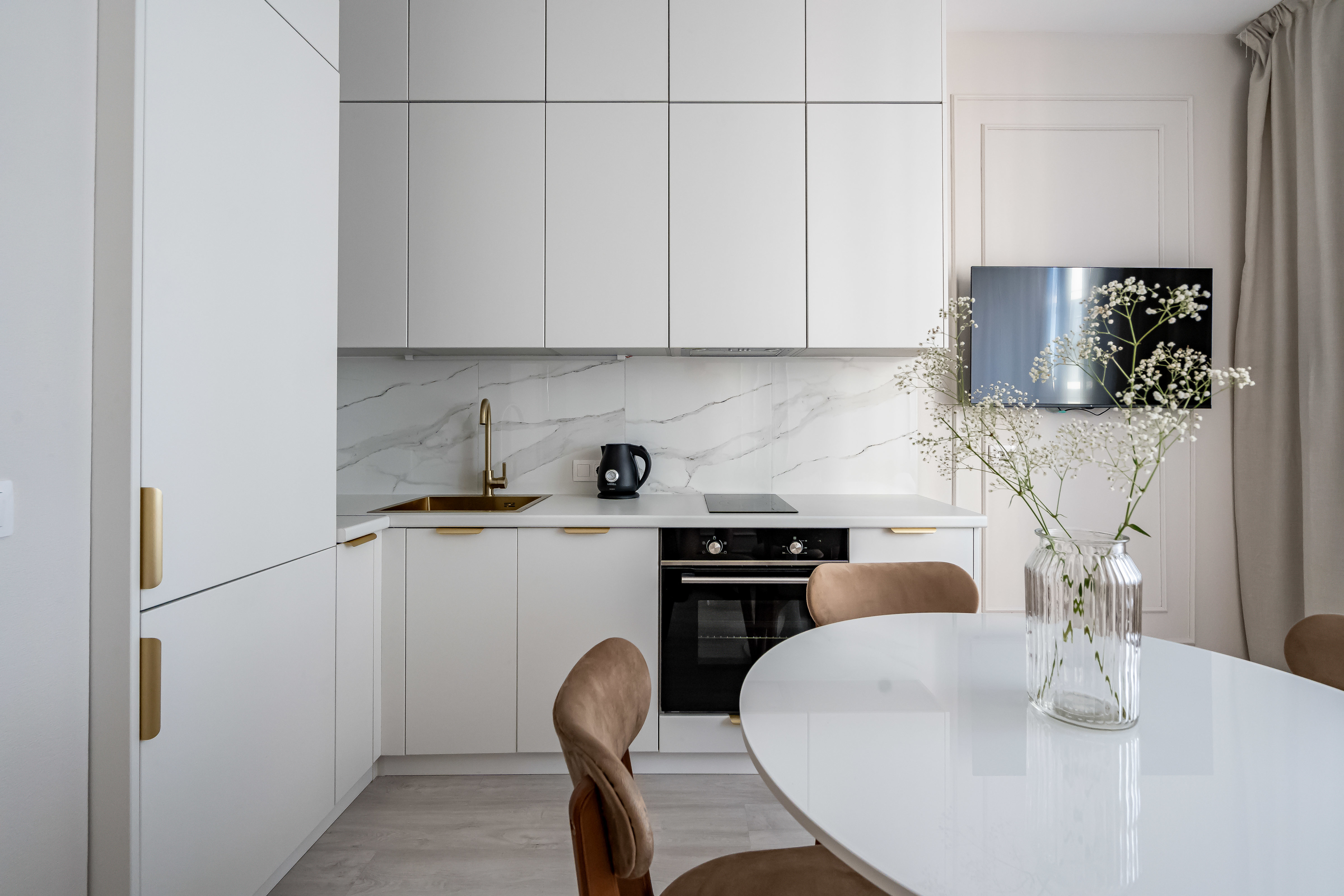 — Посудомоечная машина, стиральная машина, капсульная кофемашина, тостер, СВЧ, духовой шкаф, бойлер, фен, утюг, пылесос.