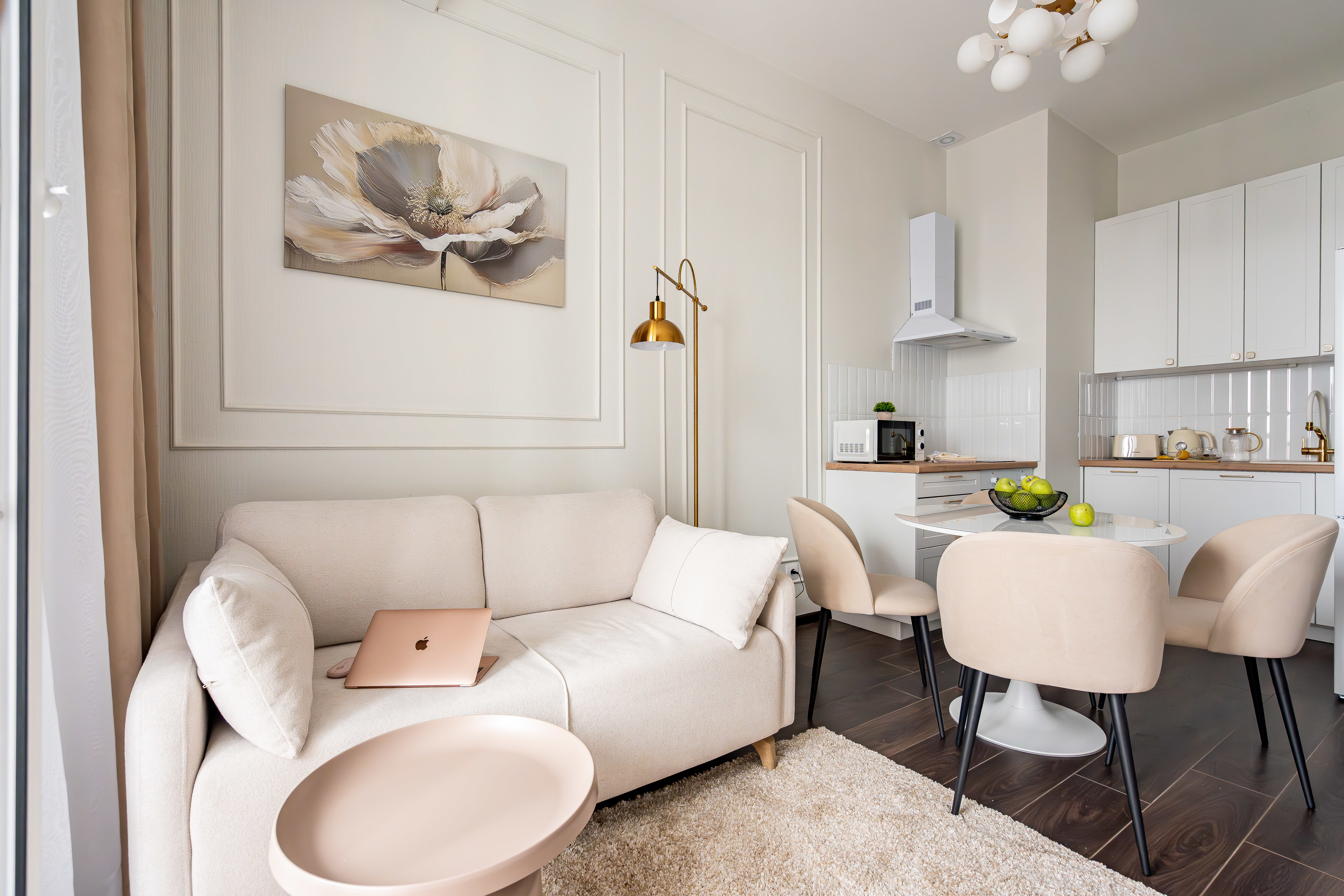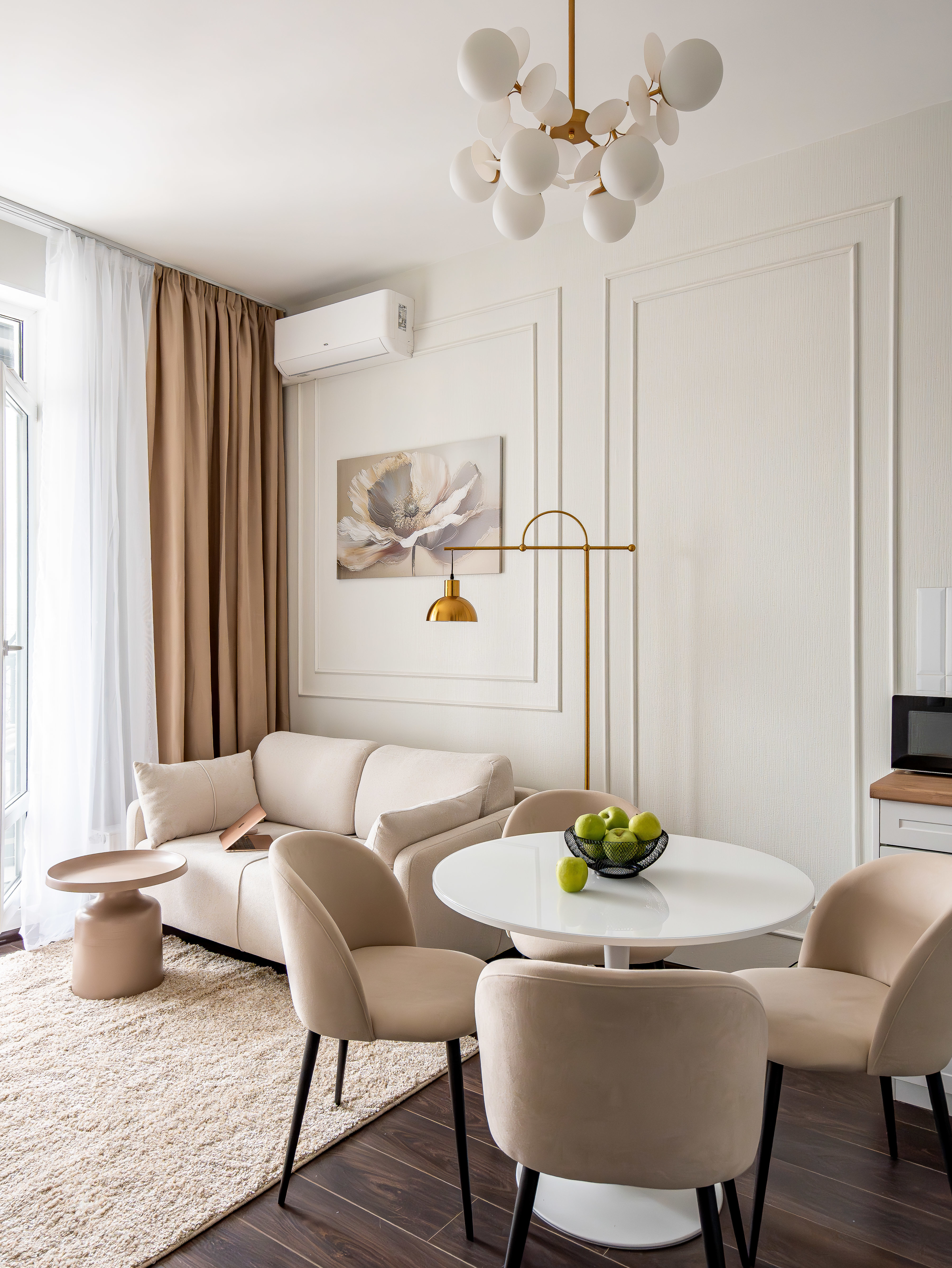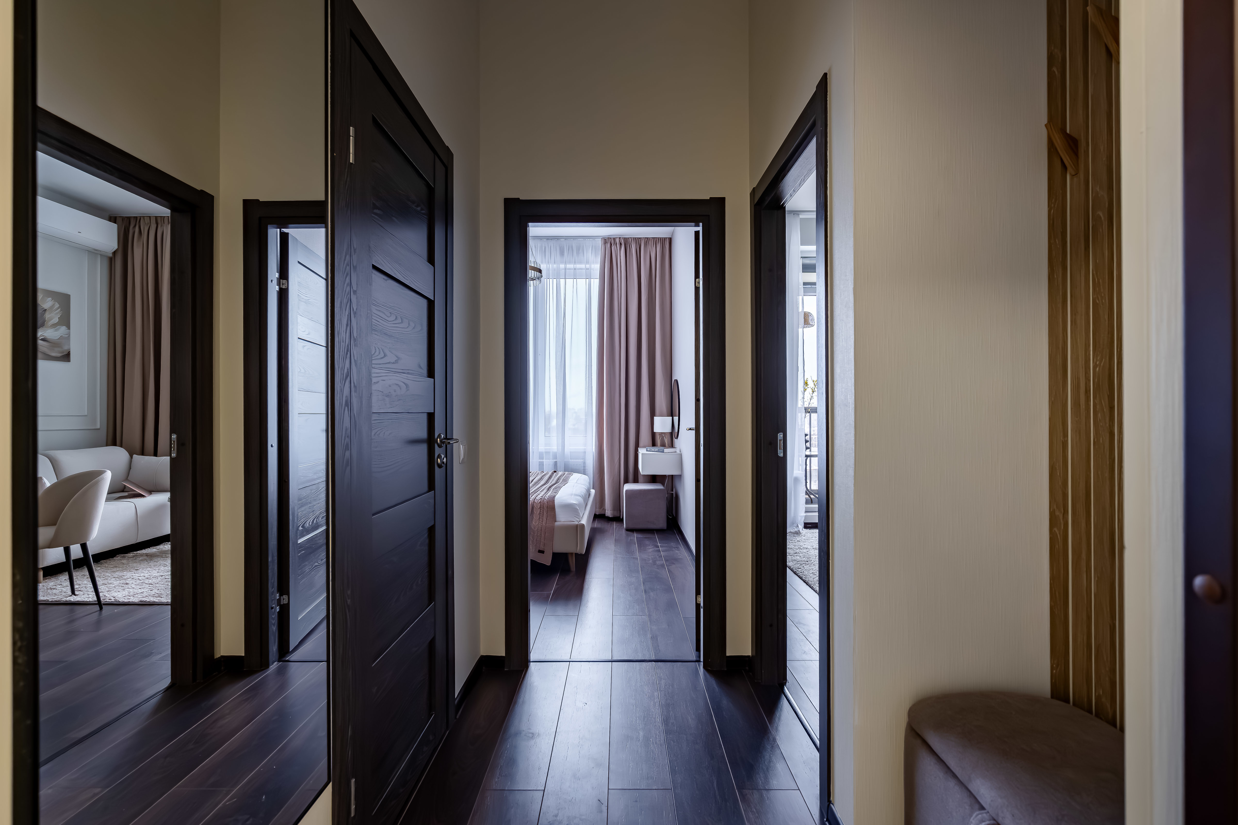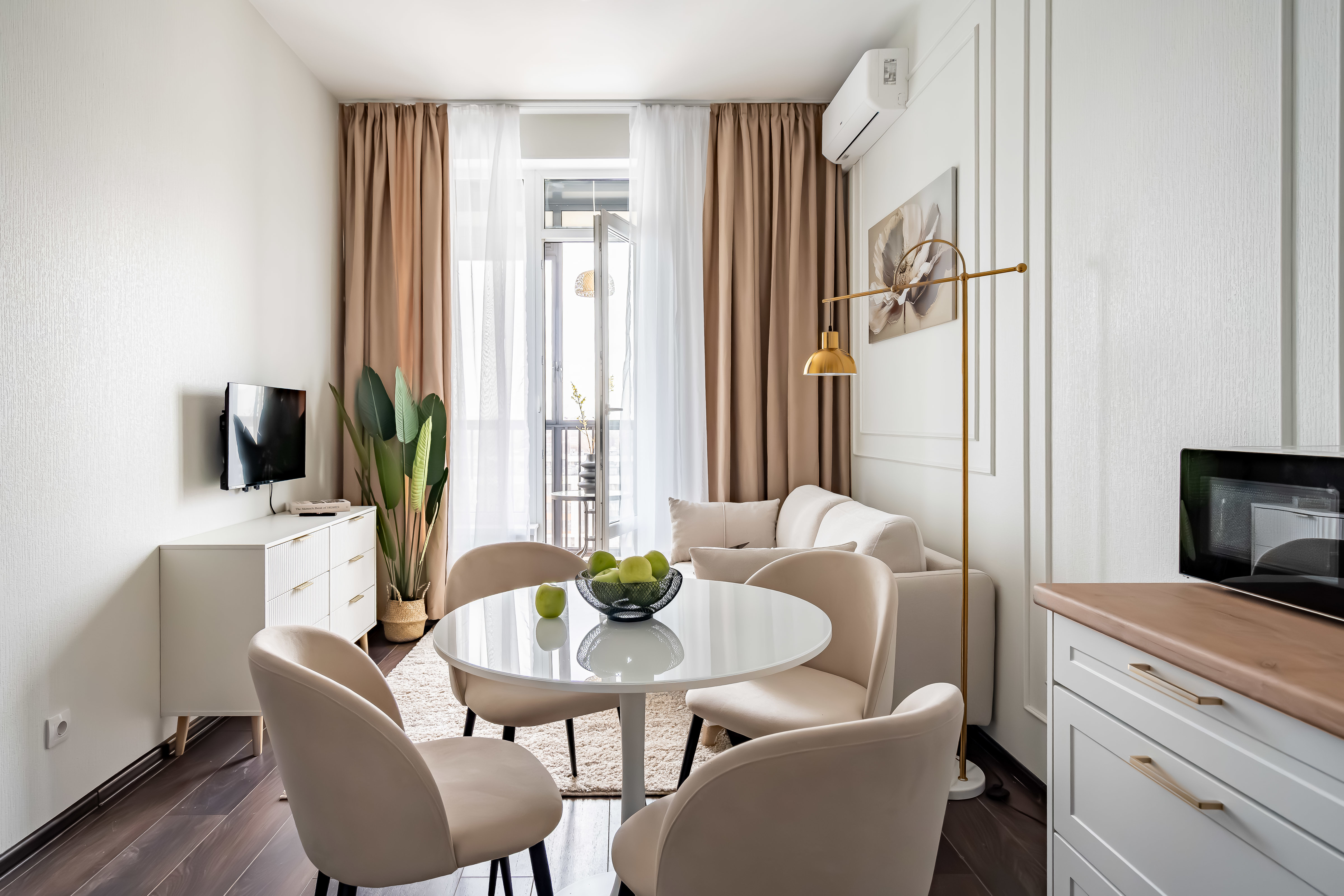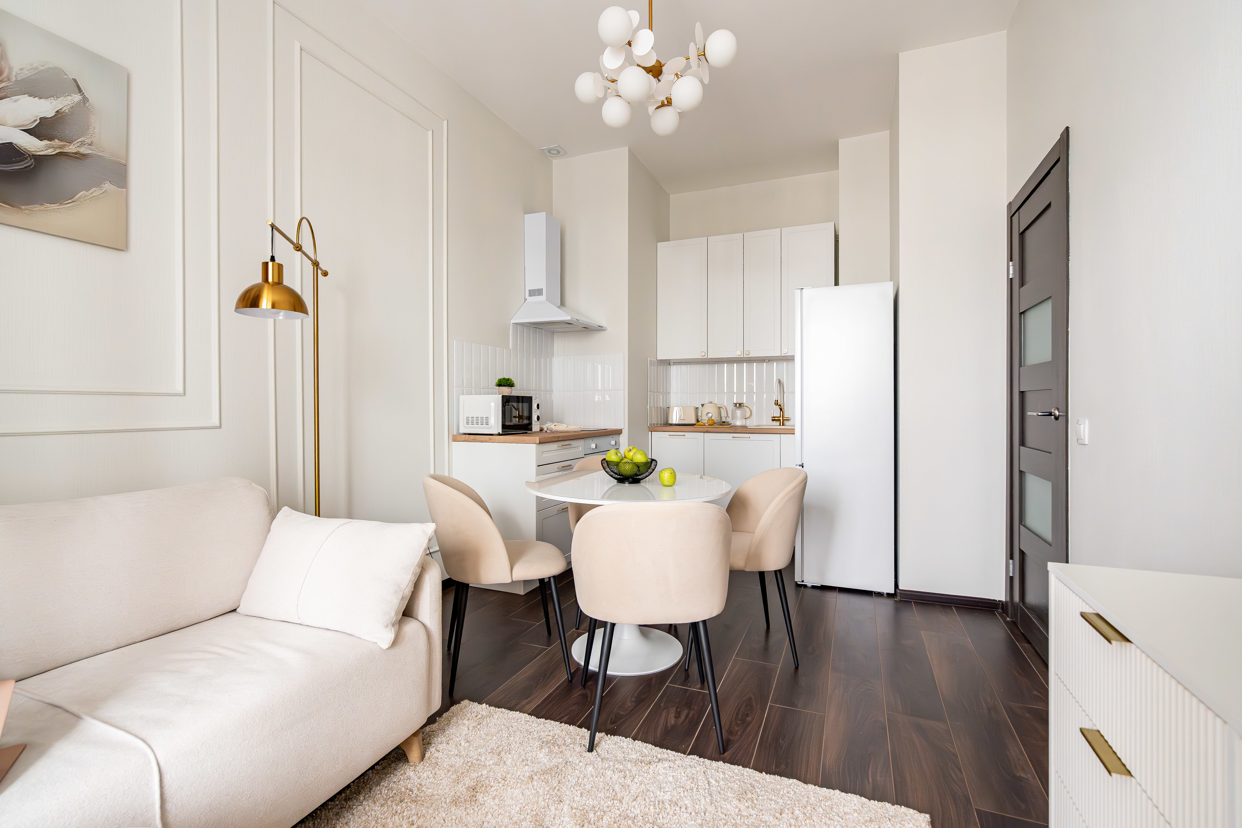 — Спальные места 2+2. Удобная кровать в спальне (160 см) и раскладной диван в гостиной (140 см).