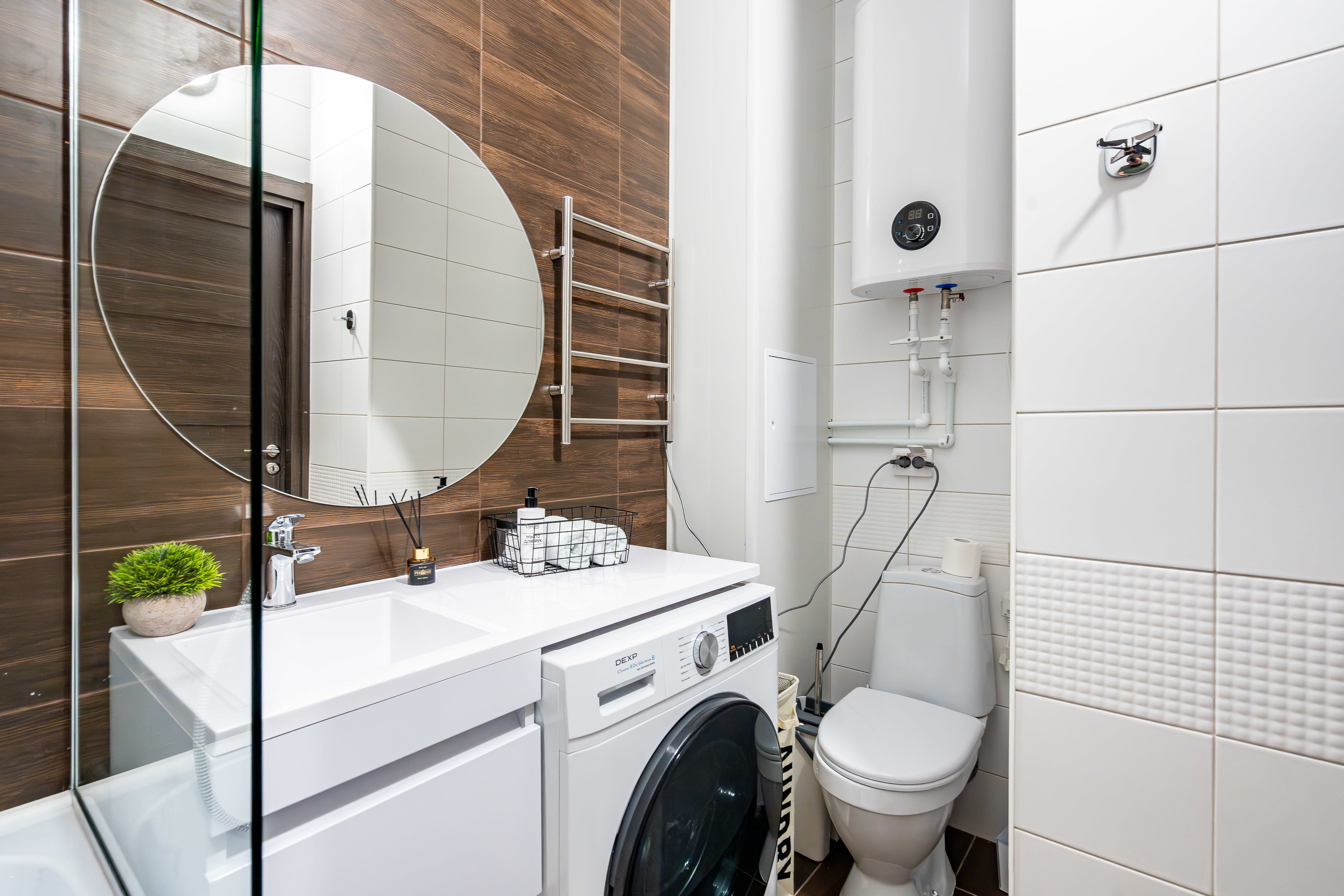 — Кондиционер, посудомоечная машина, стиральная (и сушильная) машина, капсульная кофемашина, тостер, СВЧ, духовой шкаф, бойлер, фен, утюг, пылесос.