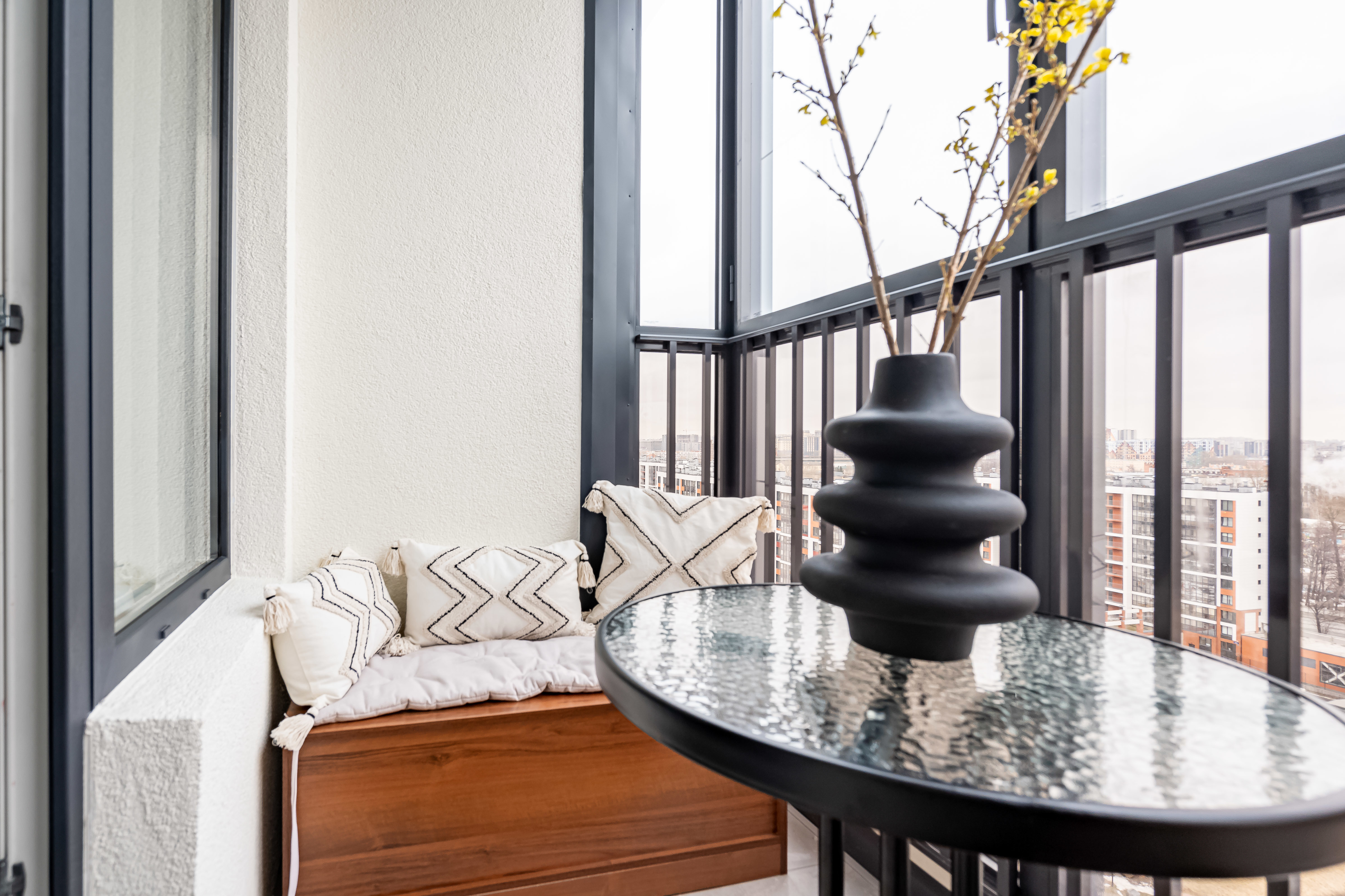 — Лоджия с качелями и панорамным видом на город, парк им. Бабушкина и колесо обозрения