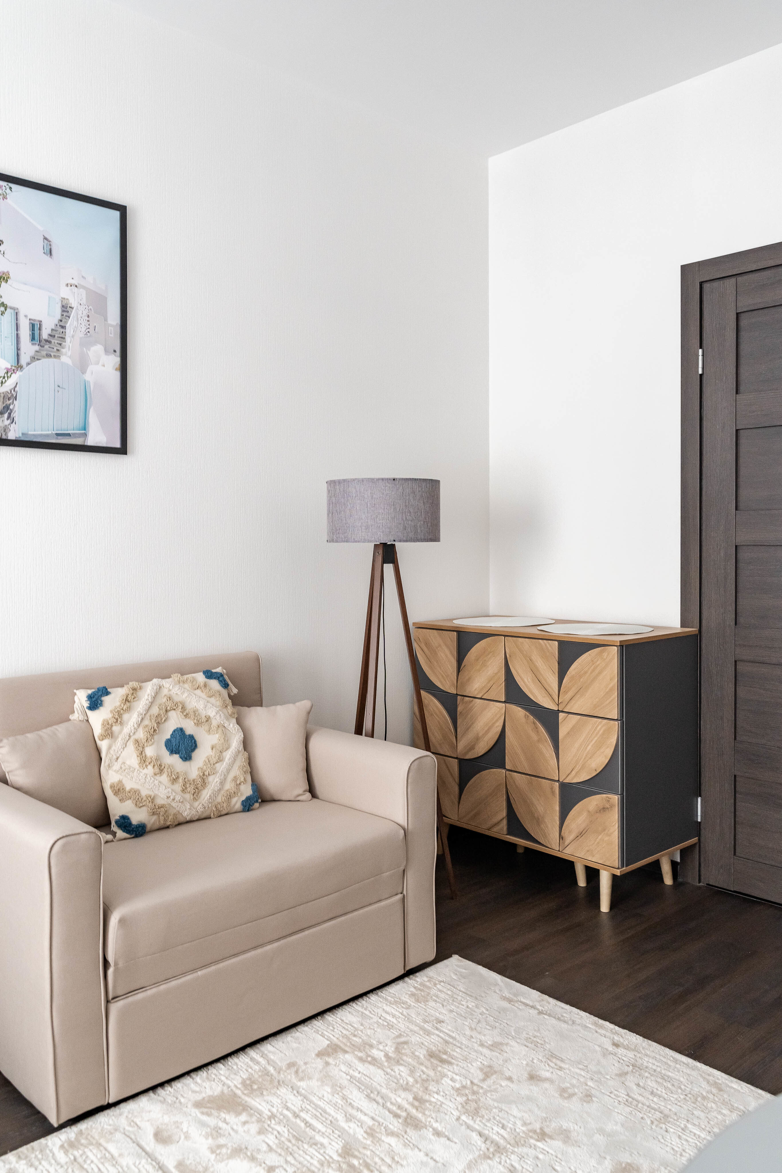 – Спальные места 2+1. Удобная кровать (140 см) и раскладное кресло.