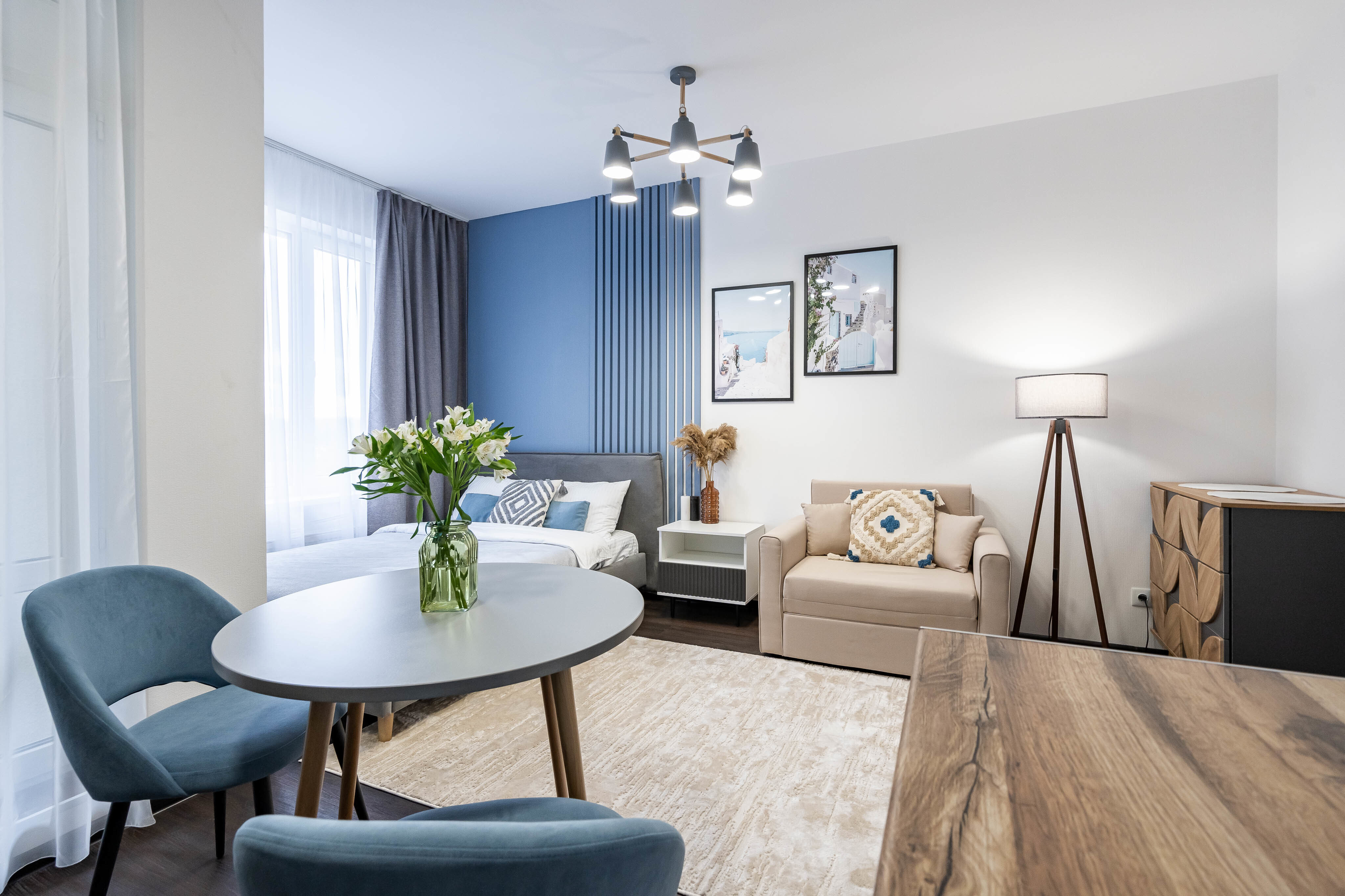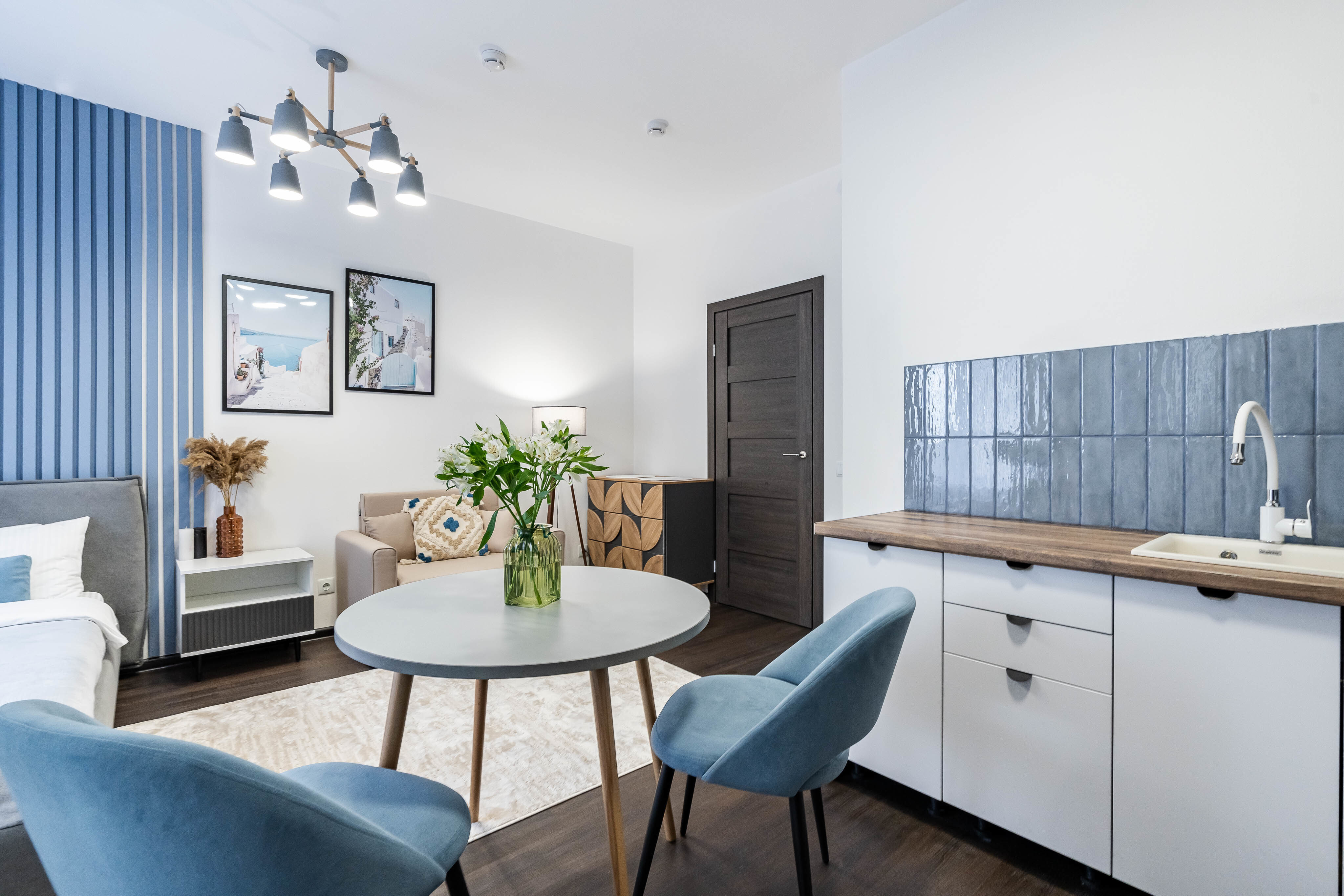 Сдается уютная квартира голубого расслабляющего цвета, которая перенесет вас на морское побережье и позволит отдохнуть после долгих прогулок по нашему красивому городу. Дополнительное спальное место (кресло раскладывается). Посудомоечная машина и духовой шкаф в вашем распоряжении. Всего 10 минут на машине - 20 минут на автобусе - 30 минут пешком до исторического центра города (Невский проспект, площадь Восстания)