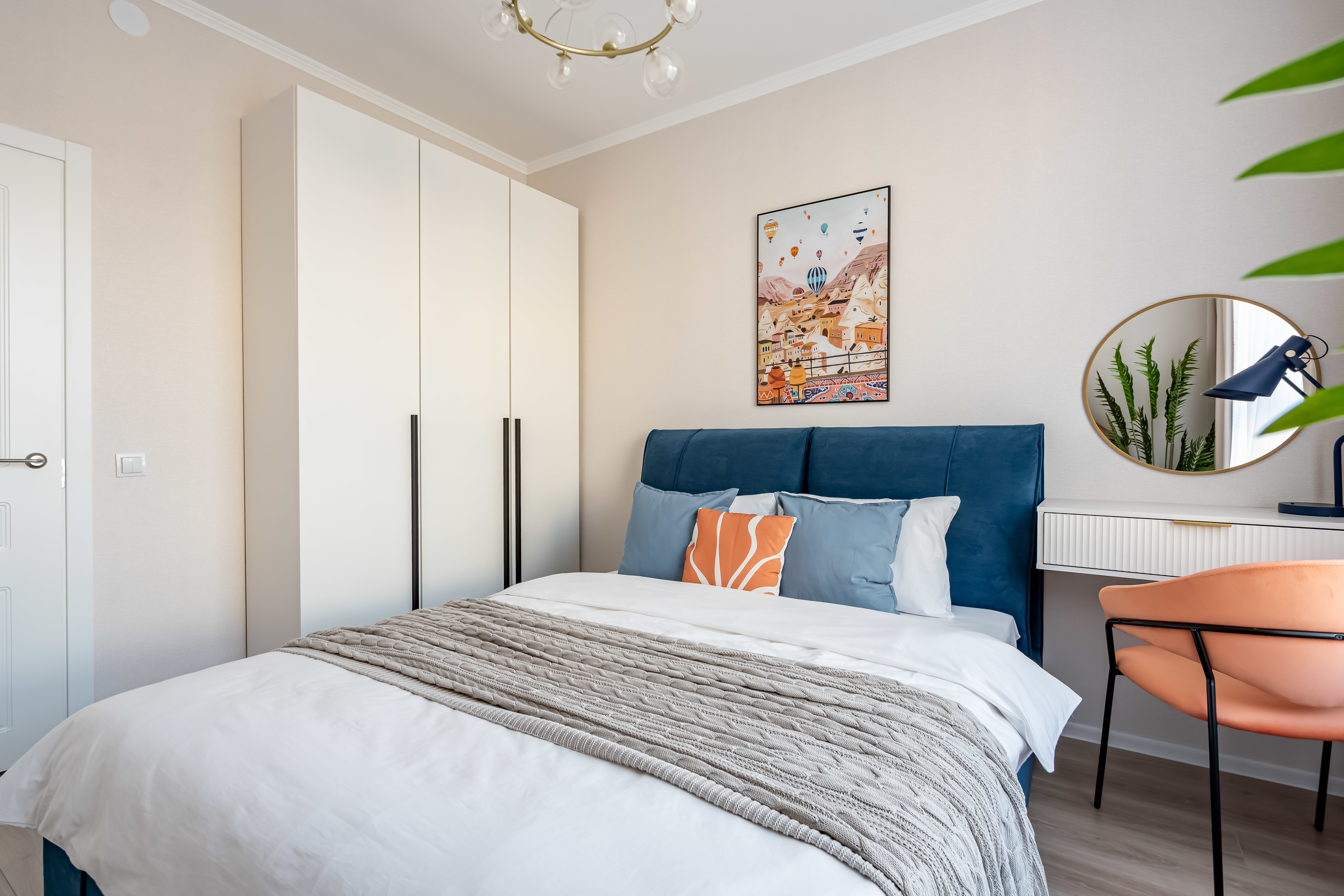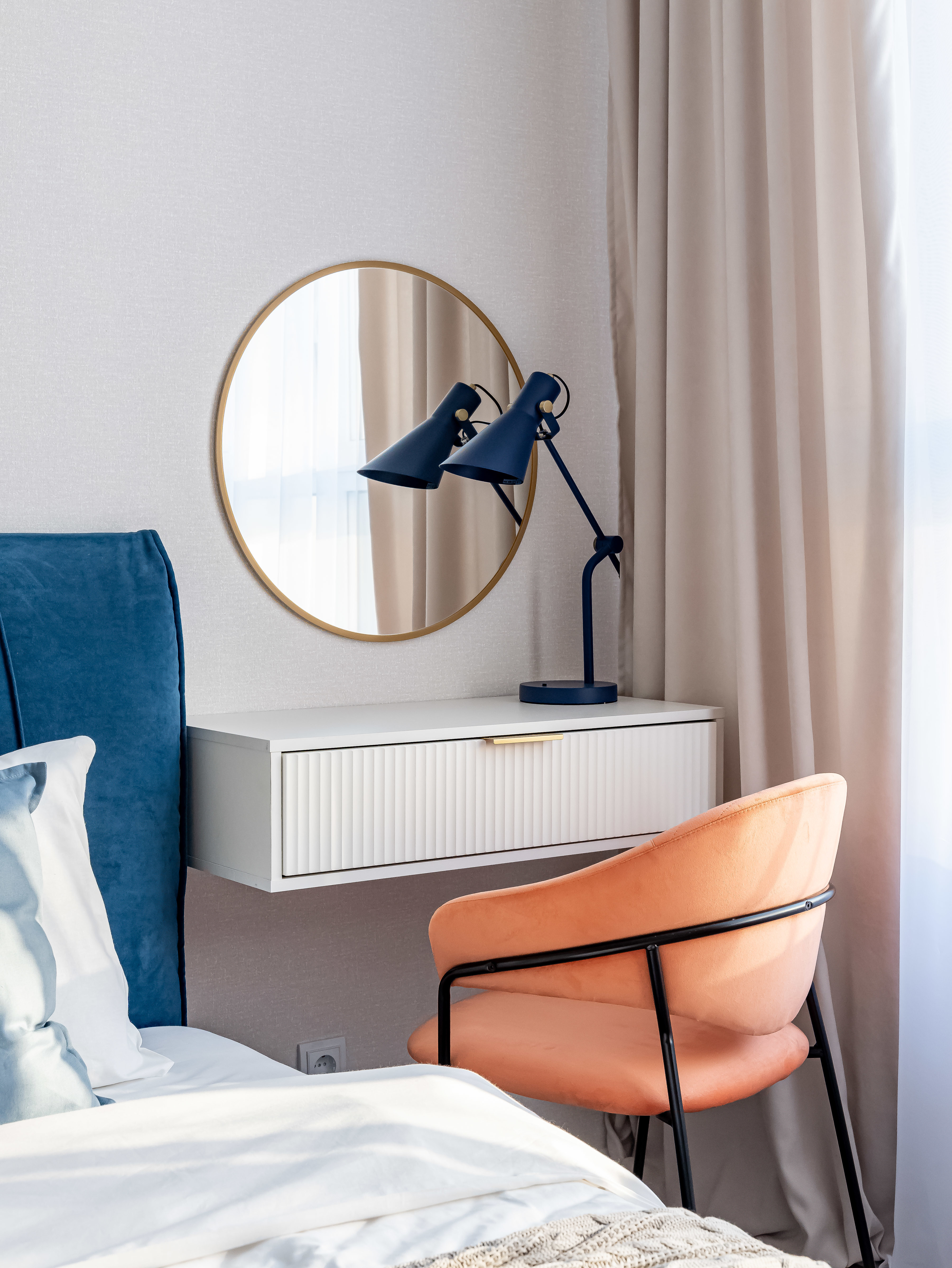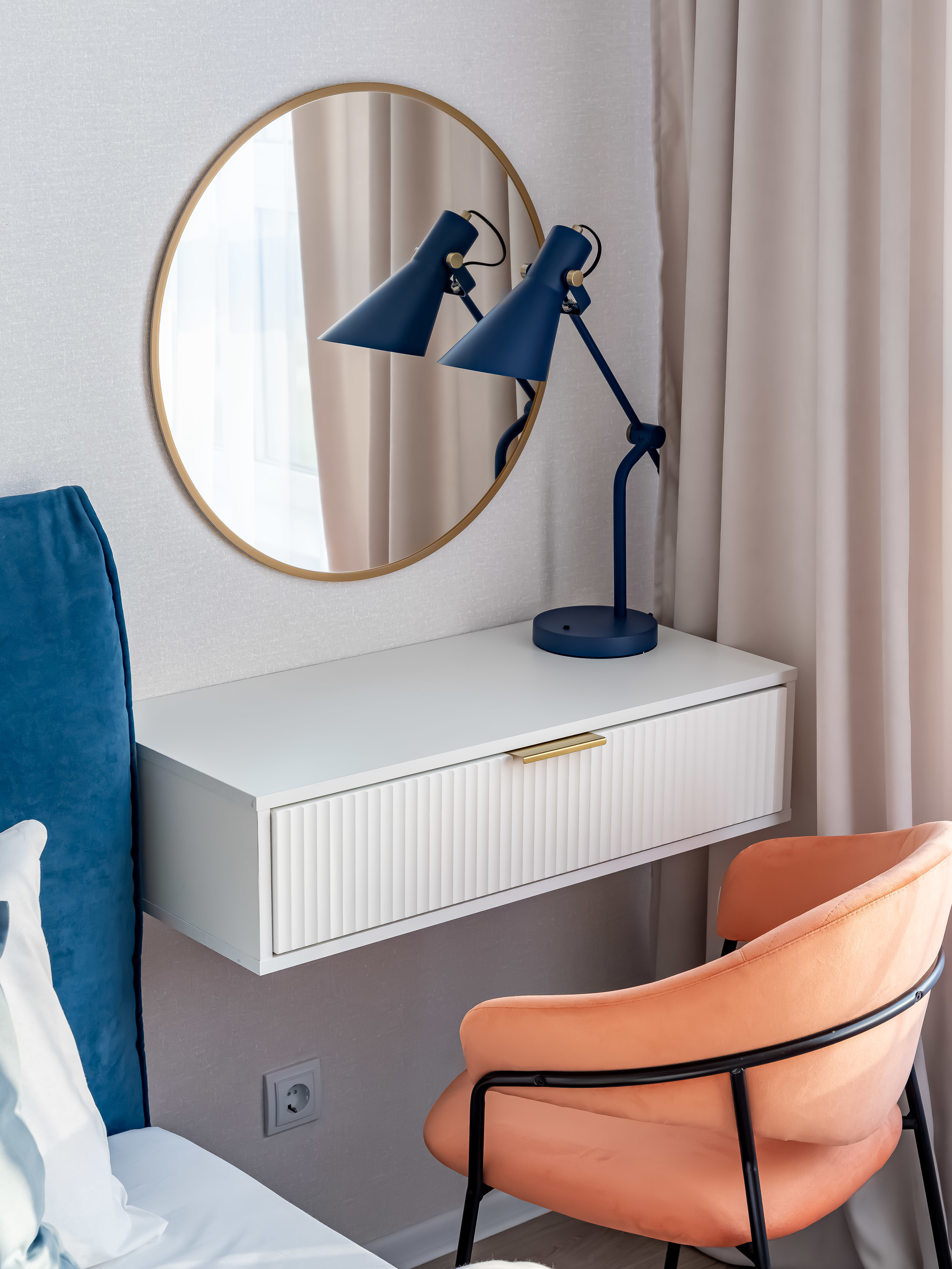 - Консольный столик с зеркалом в спальне