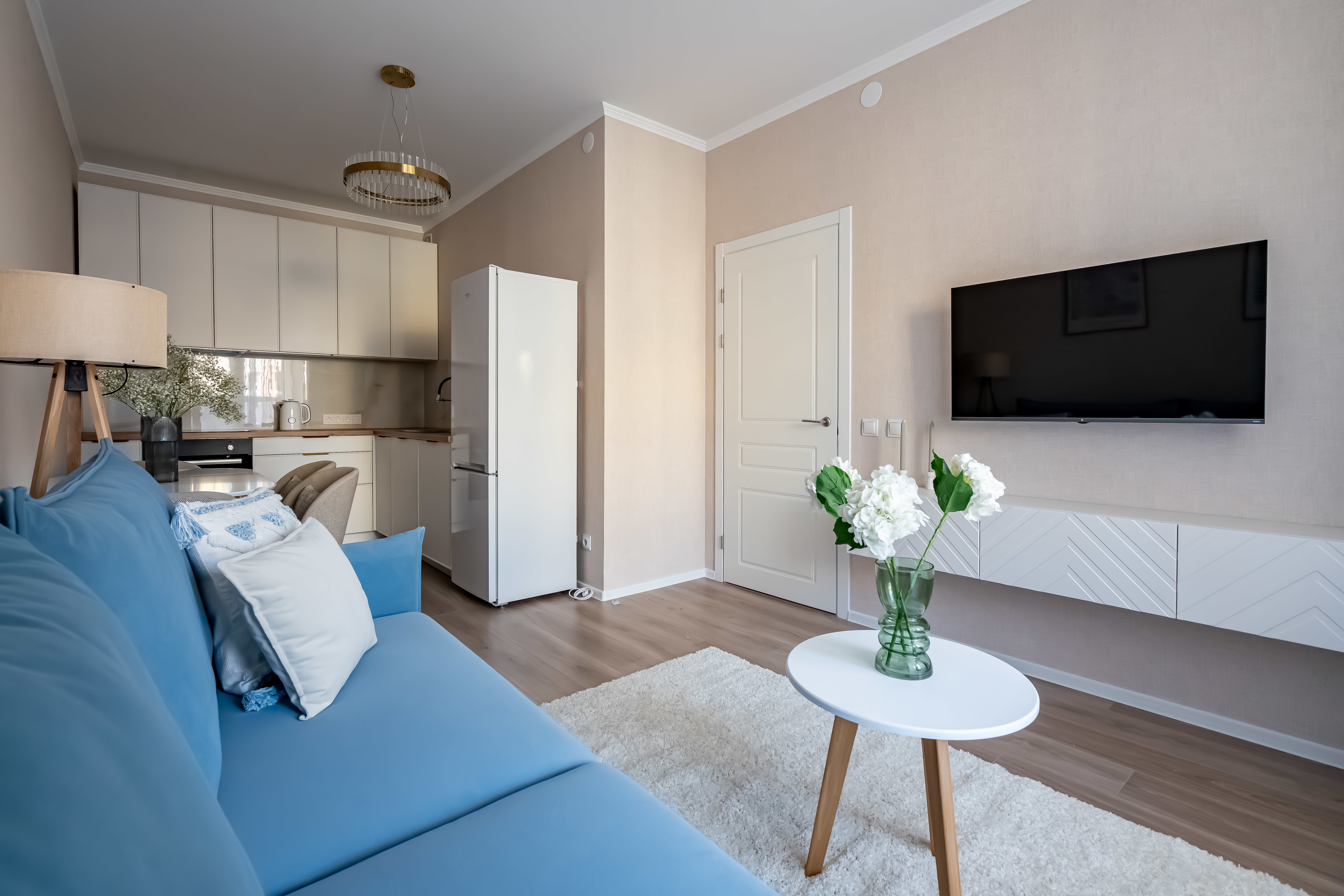 - Раскладной диван (всего в квартире можно разместиться вчетвером 2+2).