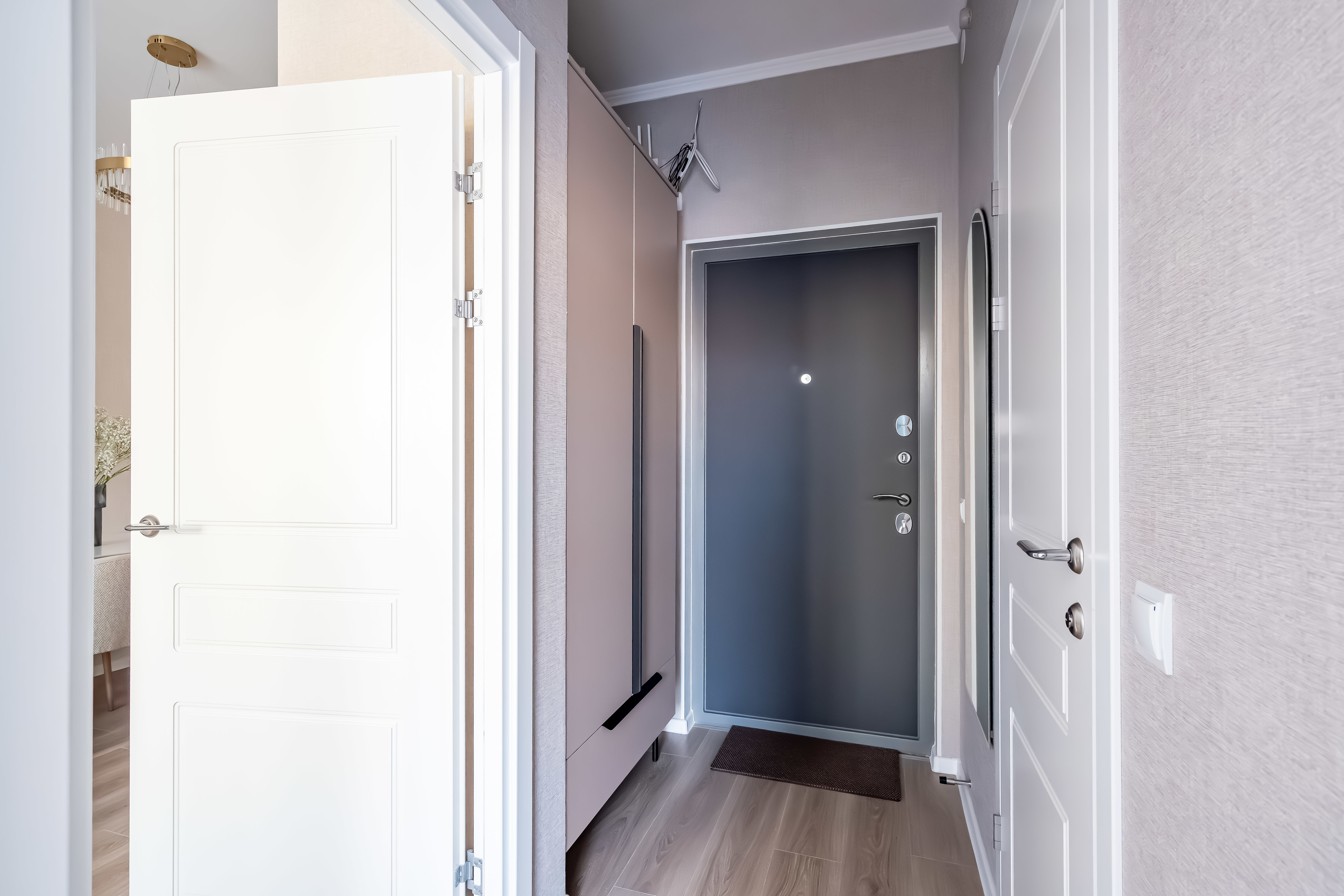 - Много мест хранения (шкаф в коридоре и спальне)