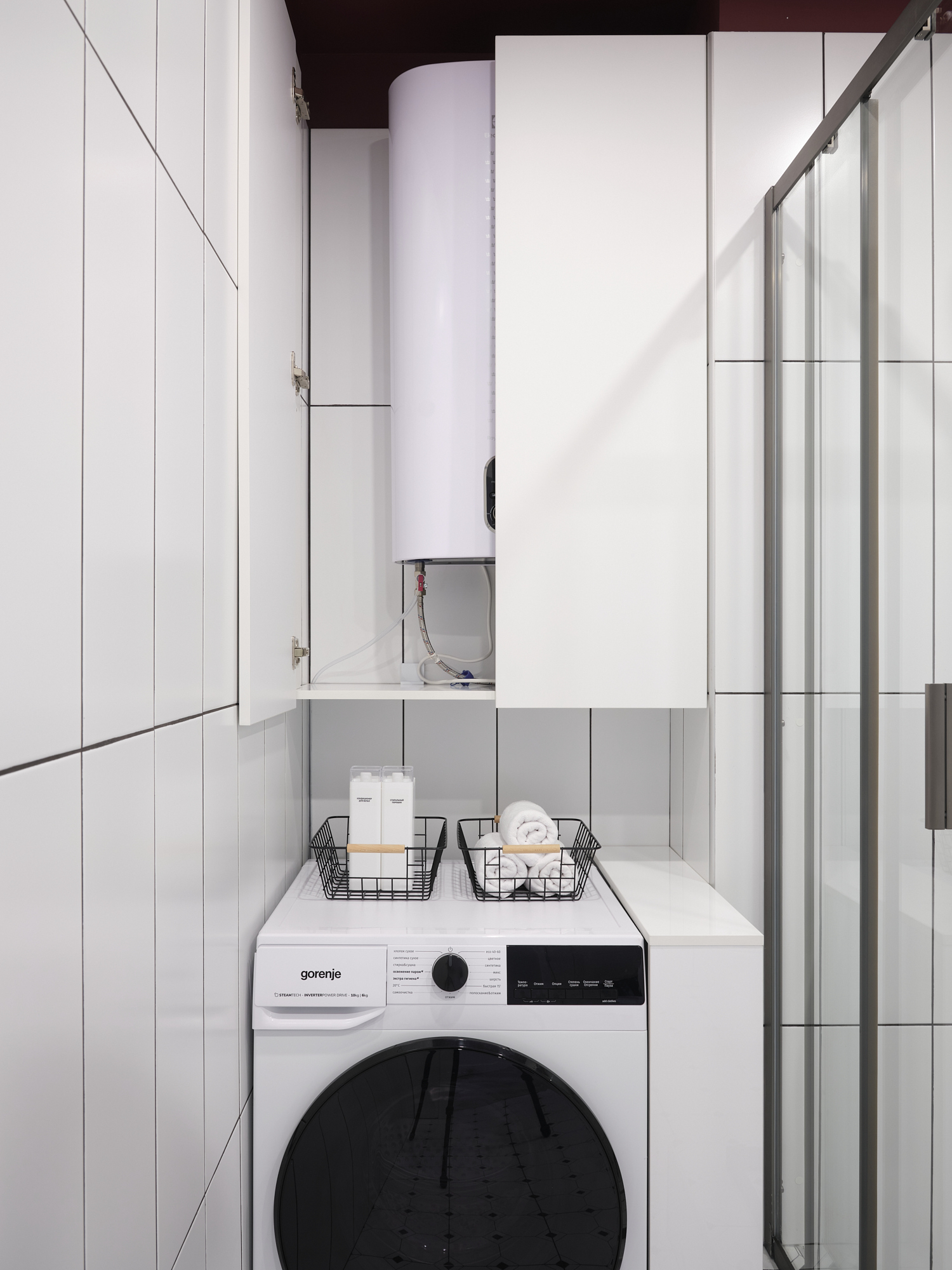 стиральная машина и всё для стирки и глажки;