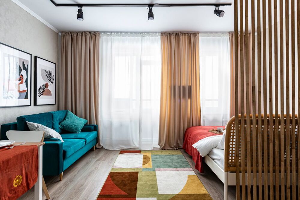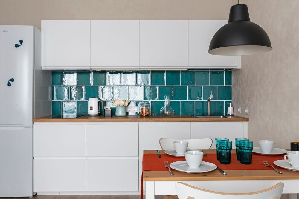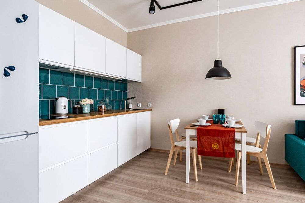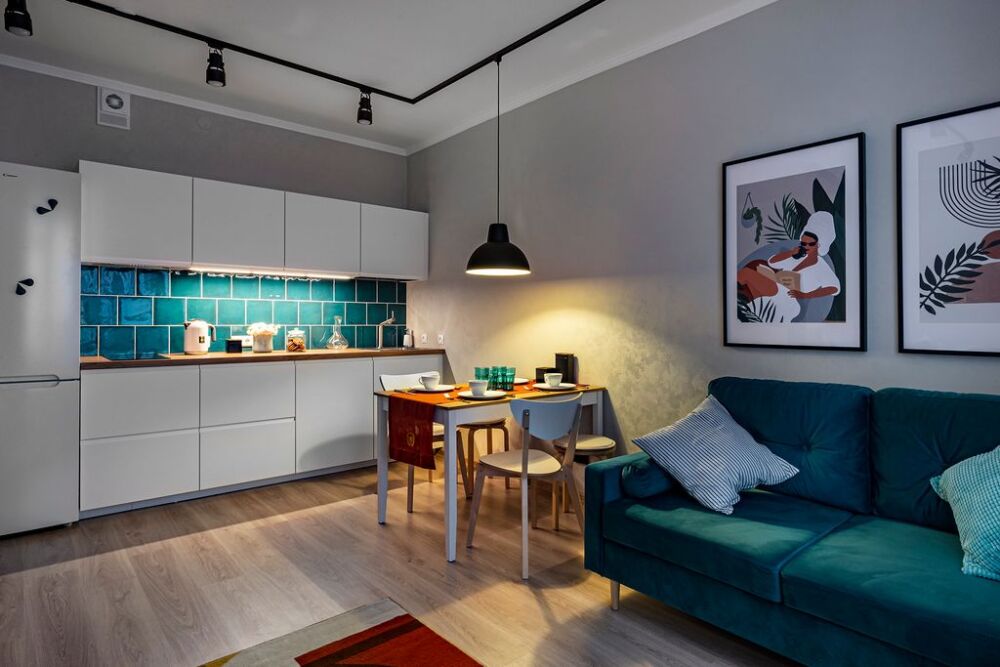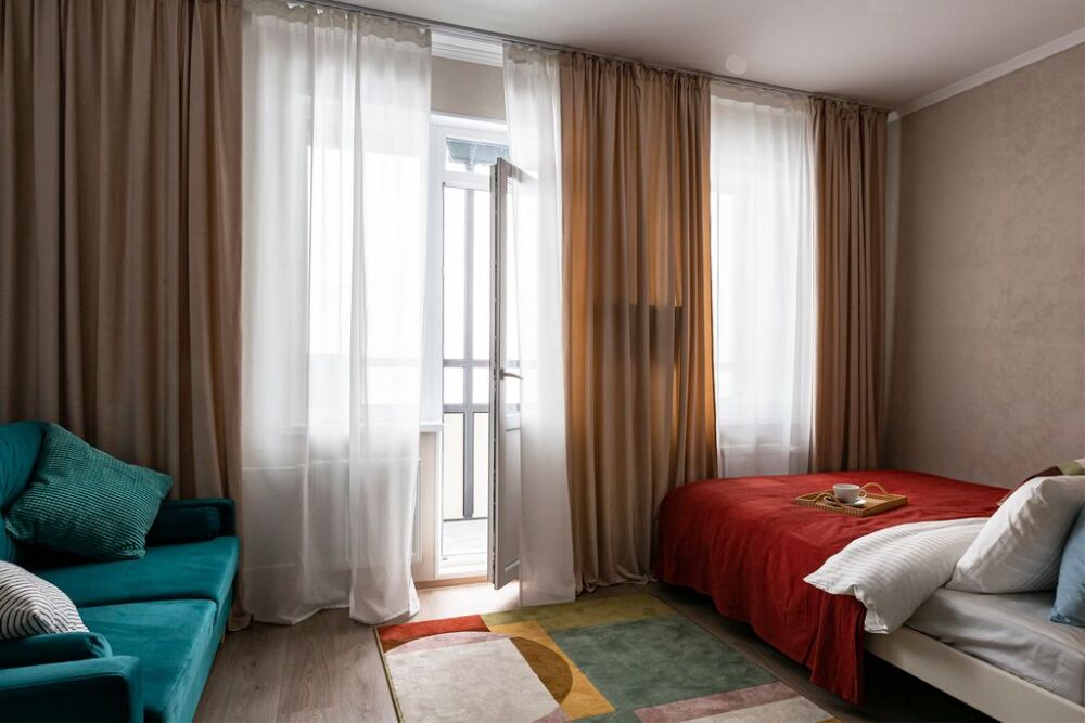 В квартире с комфортом могут разместиться 4 взрослых человека. Предусмотрено 2 спальных места: большая двухспальная кровать, а также диван, который раскладывается при необходимости. Для гостей предусмотрен комплект постельного белья (4 подушки, 2 одеяла), а также полотенца (большое и маленькое для каждого гостя). Кухня оборудована всем необходимым для постоянного проживания: есть кухонная утварь (столовые приборы, тарелки, чашки для чая, стаканы, бокалы для вина, ножи, кастрюли, сковорода, разделочные доски, терка, штопор, ножницы, половник, венчик, лопатка), всегда в распоряжении гостей чай, кофе, сахар, соль. На кухне есть микроволновая печь СВЧ (за кухонным фасадом), капсульная кофемашина, электрический чайник и электрическая плита, а также большой вместительный холодильник с морозильной камерой.