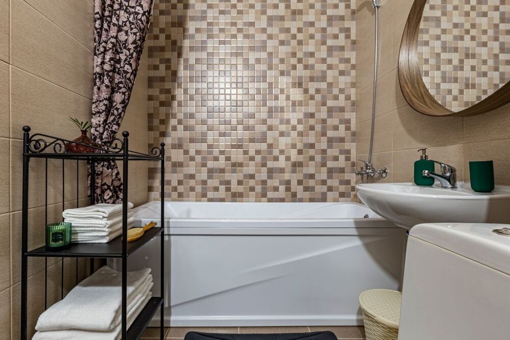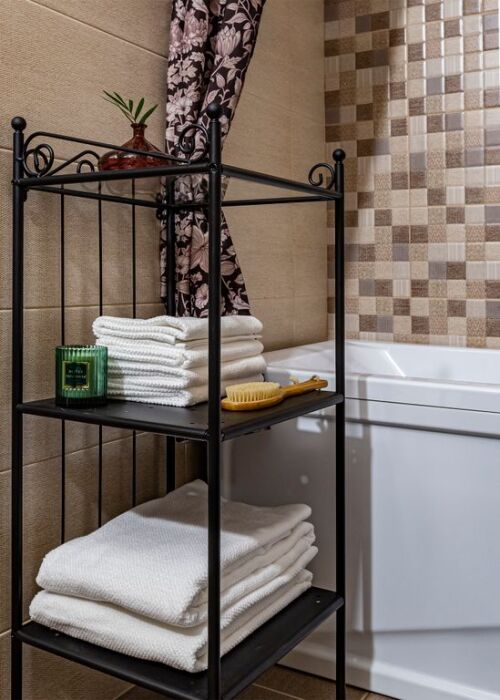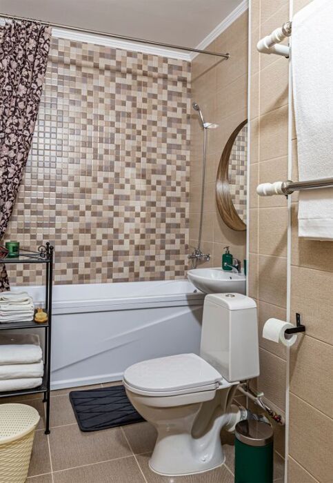 В ванной комнате установлена стиральная машина, а также в распоряжении гостей фен для волос, утюг, сушилка для одежды (раскладная), бытовая химия (средство для мытья посуды, жидкое мыло, стиральный порошок, шампунь, гель для душа, ушные палочки).