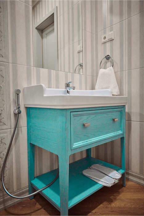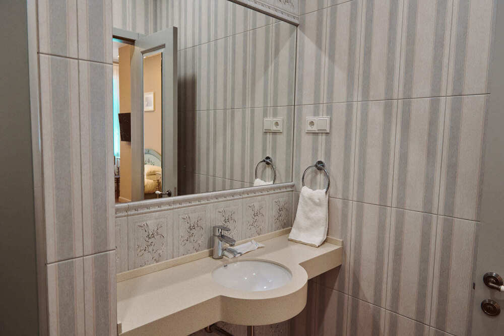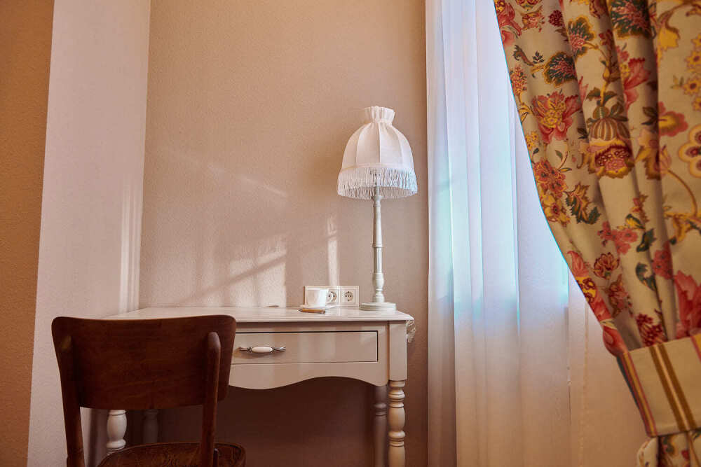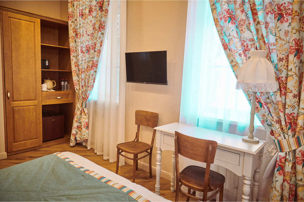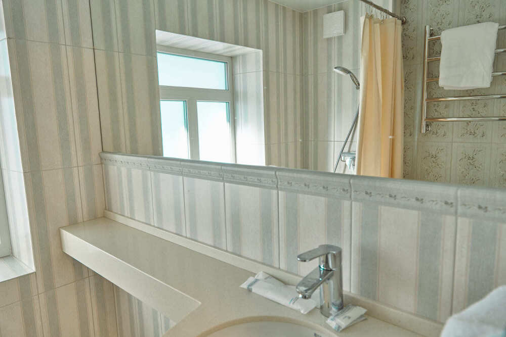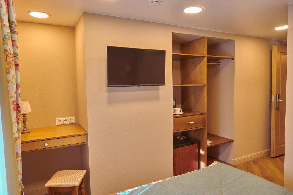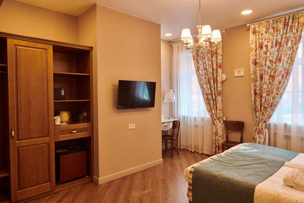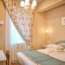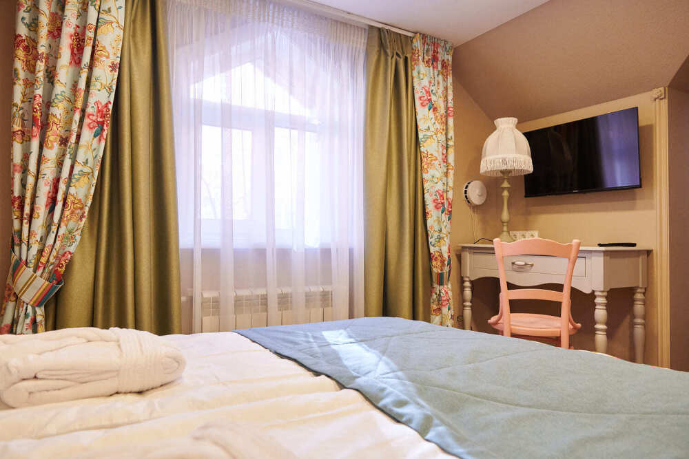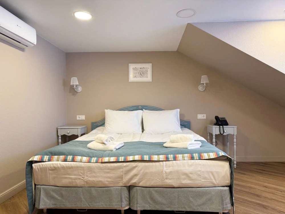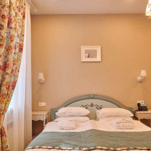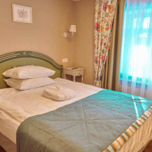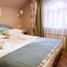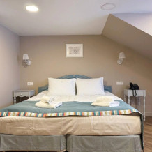 Расположен на 2 (мансардном) этаже. Номер двухместный, но возможно дополнительное спальное место для 3-го человека на уютном диване. В номере находятся: двуспальная кровать king size (180 см) или twin с прикроватными тумбочками, раскладной диван, телевизор, телефон, мини-бар, сейф, кондиционер, электрический чайник и чайный набор. Просторная душевая комната с белоснежными халатами, мягкими полотенцами, тапочками, феном, индивидуальными гигиеническими принадлежностями. Для более комфортного отдыха предлагаем бесплатный Wi-Fi.