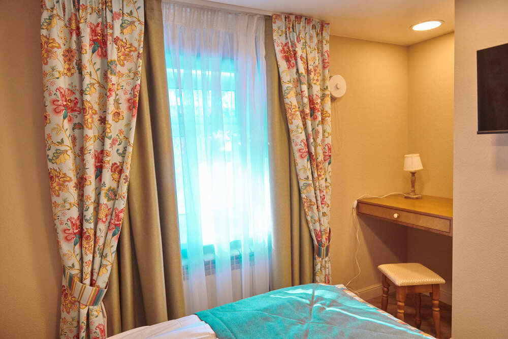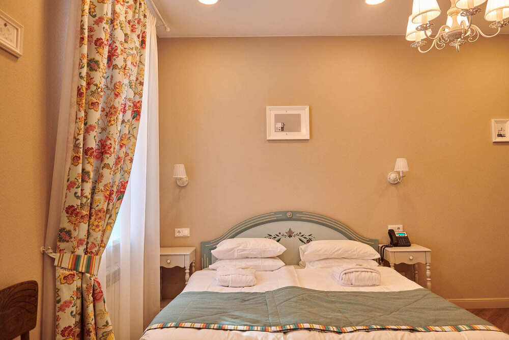 Уютный номер для одного гостя, возможно размещение двоих. В номере: двуспальная кровать Queen size (160 см) с прикроватными тумбочками, рабочий стол, телевизор, кондиционер, телефон, мини-холодильник, сейф, электрический чайник и чайный набор. В душевой комнате с окном: мягкие полотенца, халаты, тапочки, фен и средства личной гигиены.
