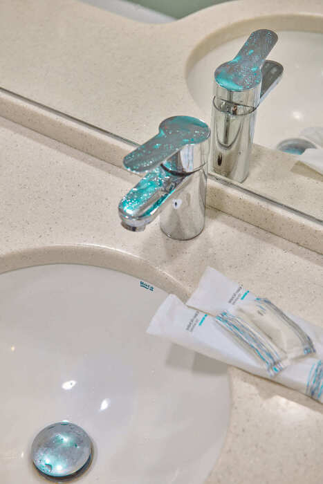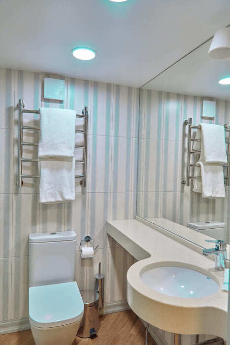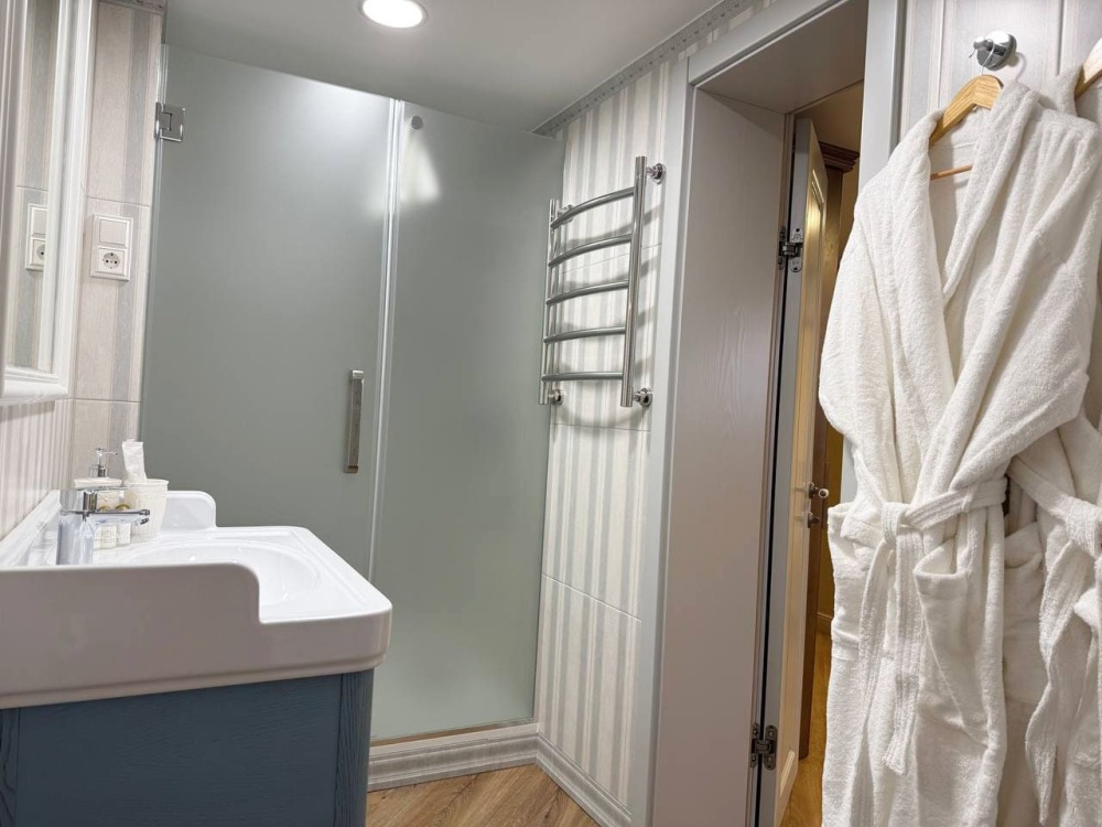 В номере: рабочий стол, телевизор, кондиционер, телефон, мини-холодильник, сейф, электрический чайник и чайный набор. В душевой комнате: мягкие полотенца, халаты, тапочки, фен и средства личной гигиены.