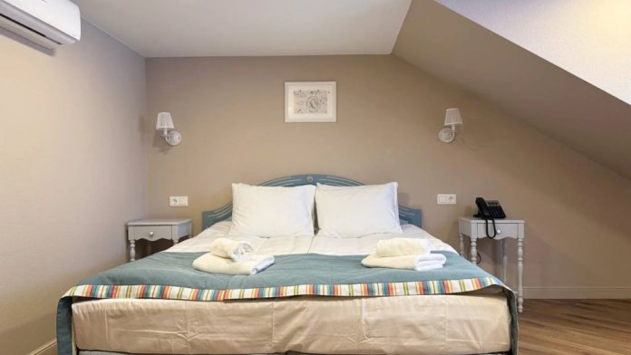 Отель предлагает своим гостям 10 номеров со всеми удобствами. В каждом номере отдельная ванная комната с с/у, горячая, холодная вода. В номерах имеются: телевизор, холодильник, сейф, Wi-Fi интернет, кондиционер, городской телефон, чайный набор, средства гигиены (мыло, зубная паста, щетка, шампунь, набор полотенец, одноразовые тапочки ) и халат.