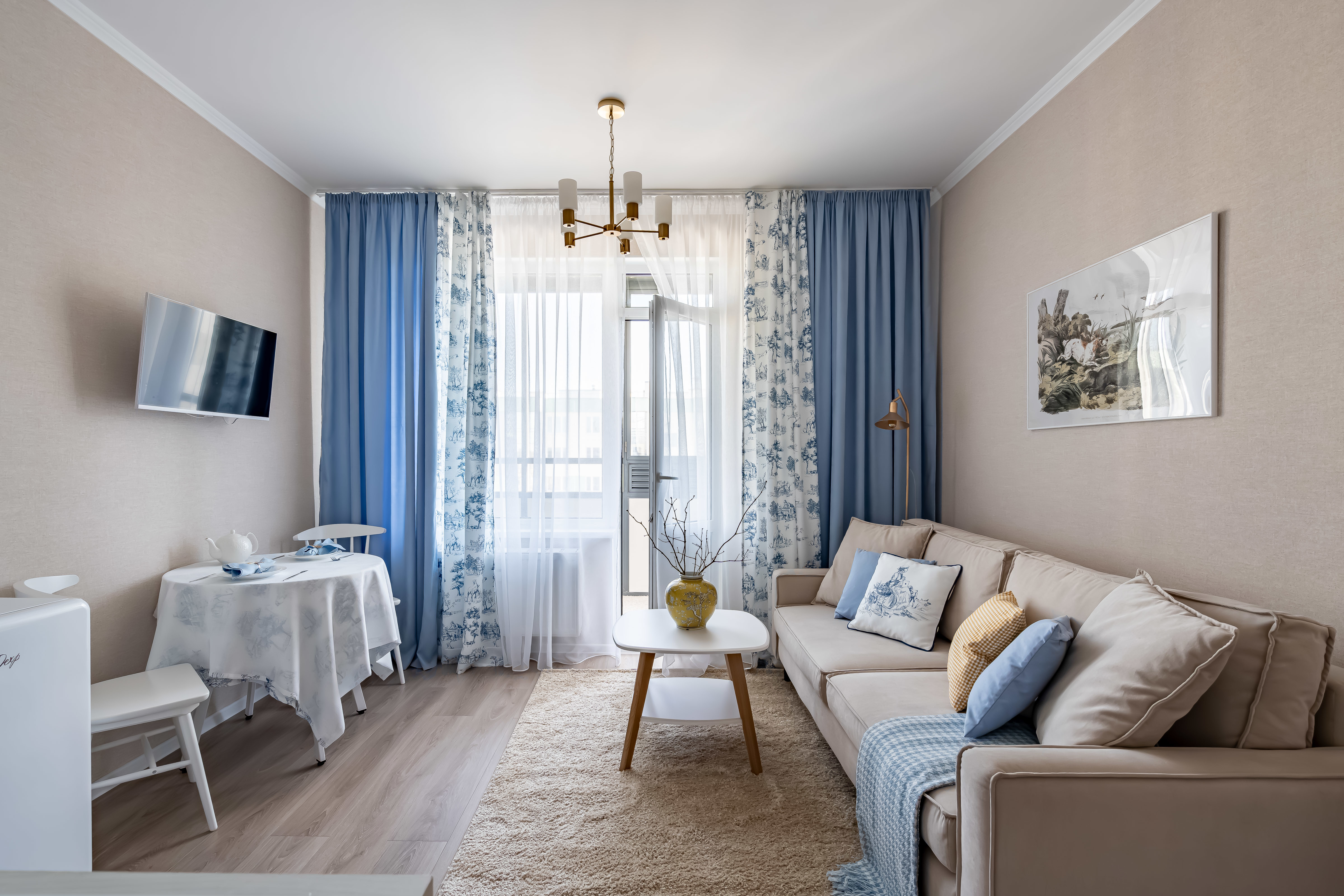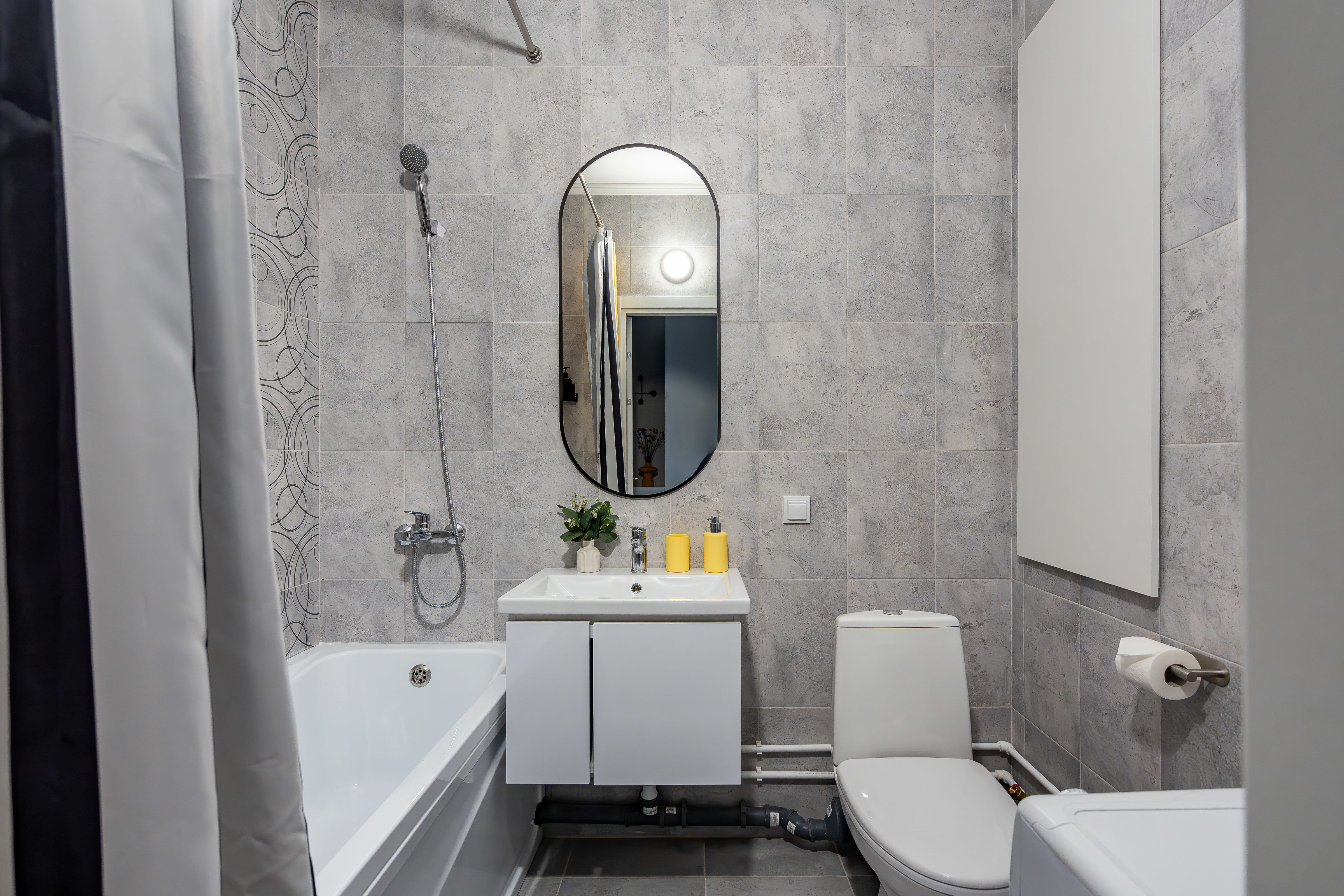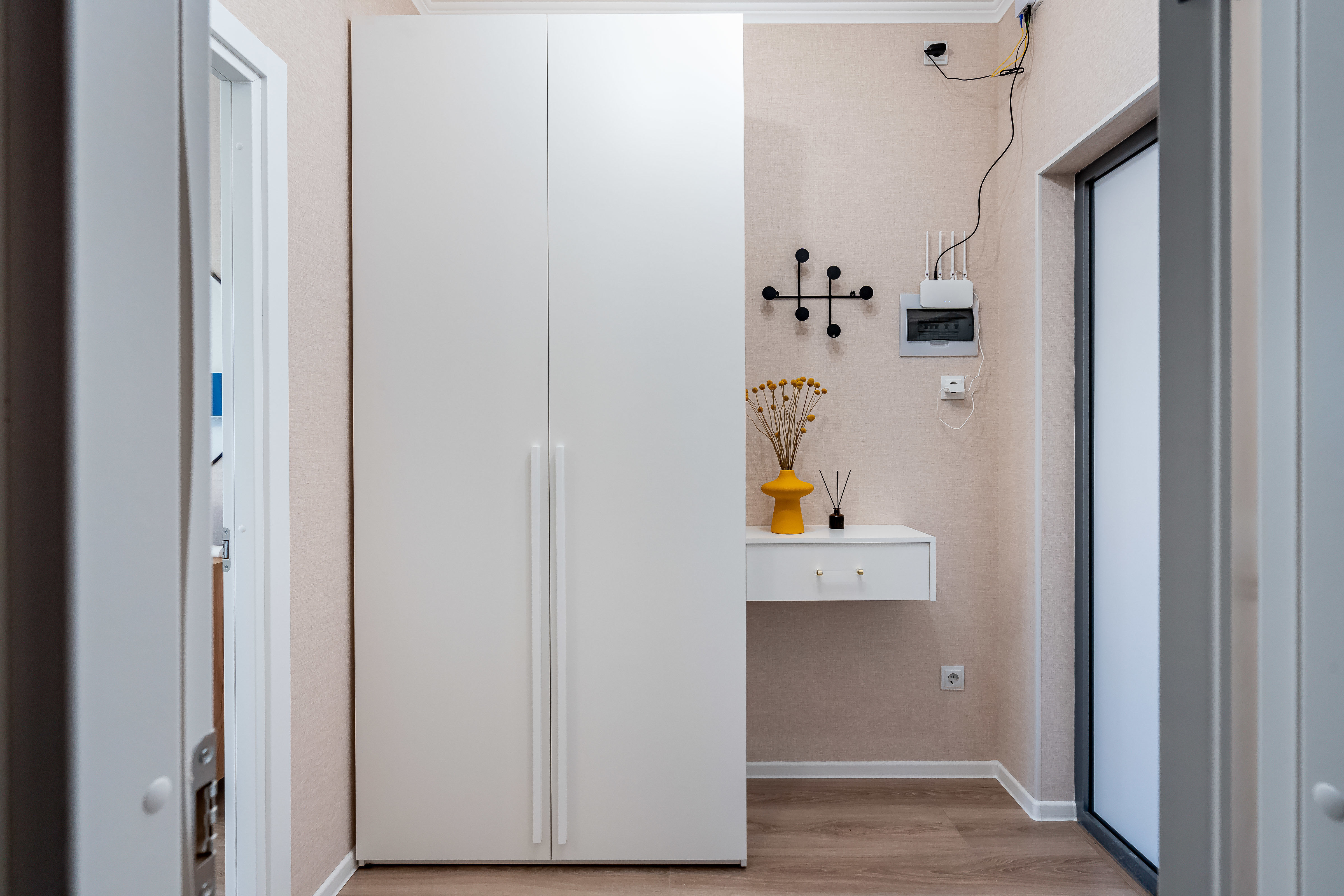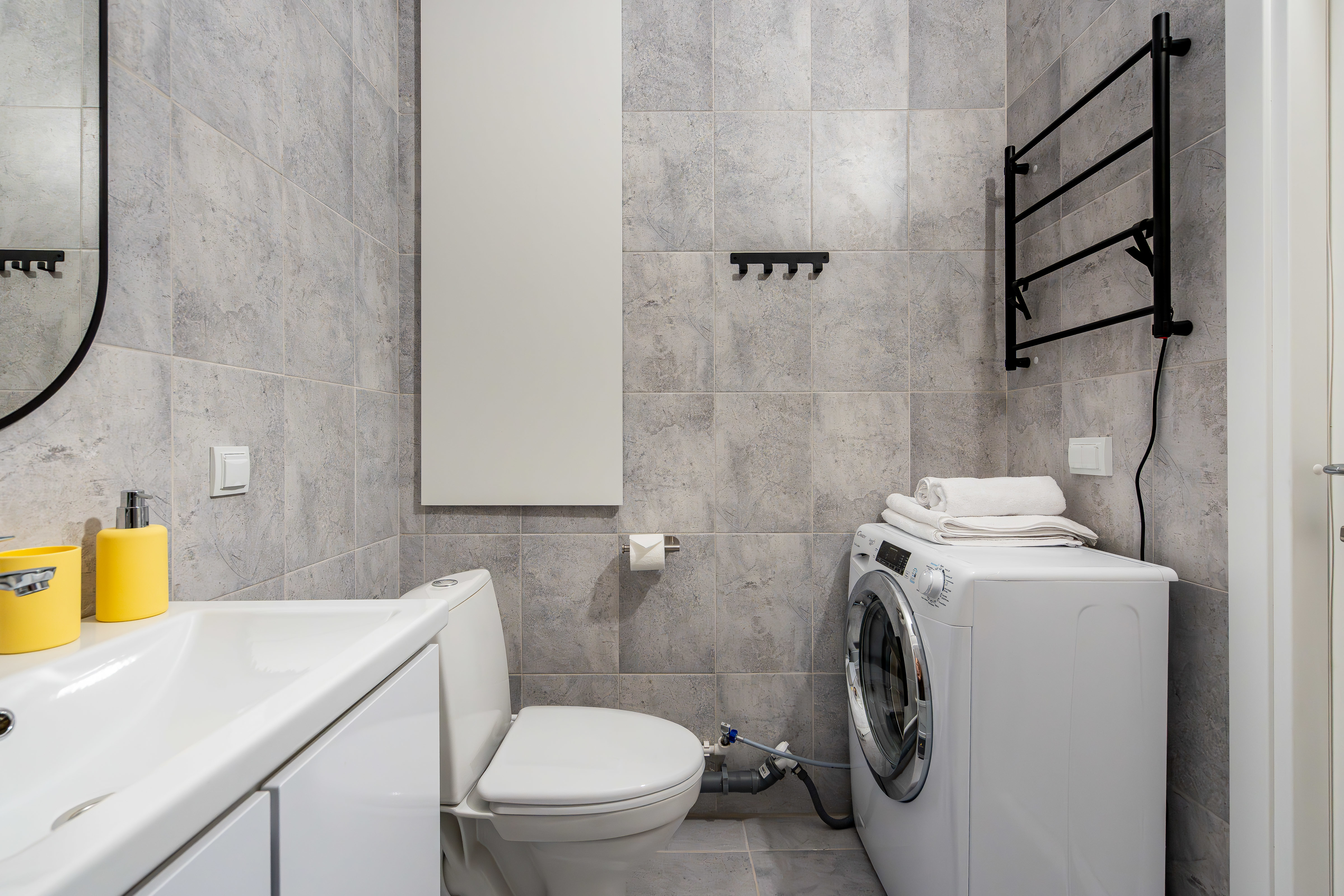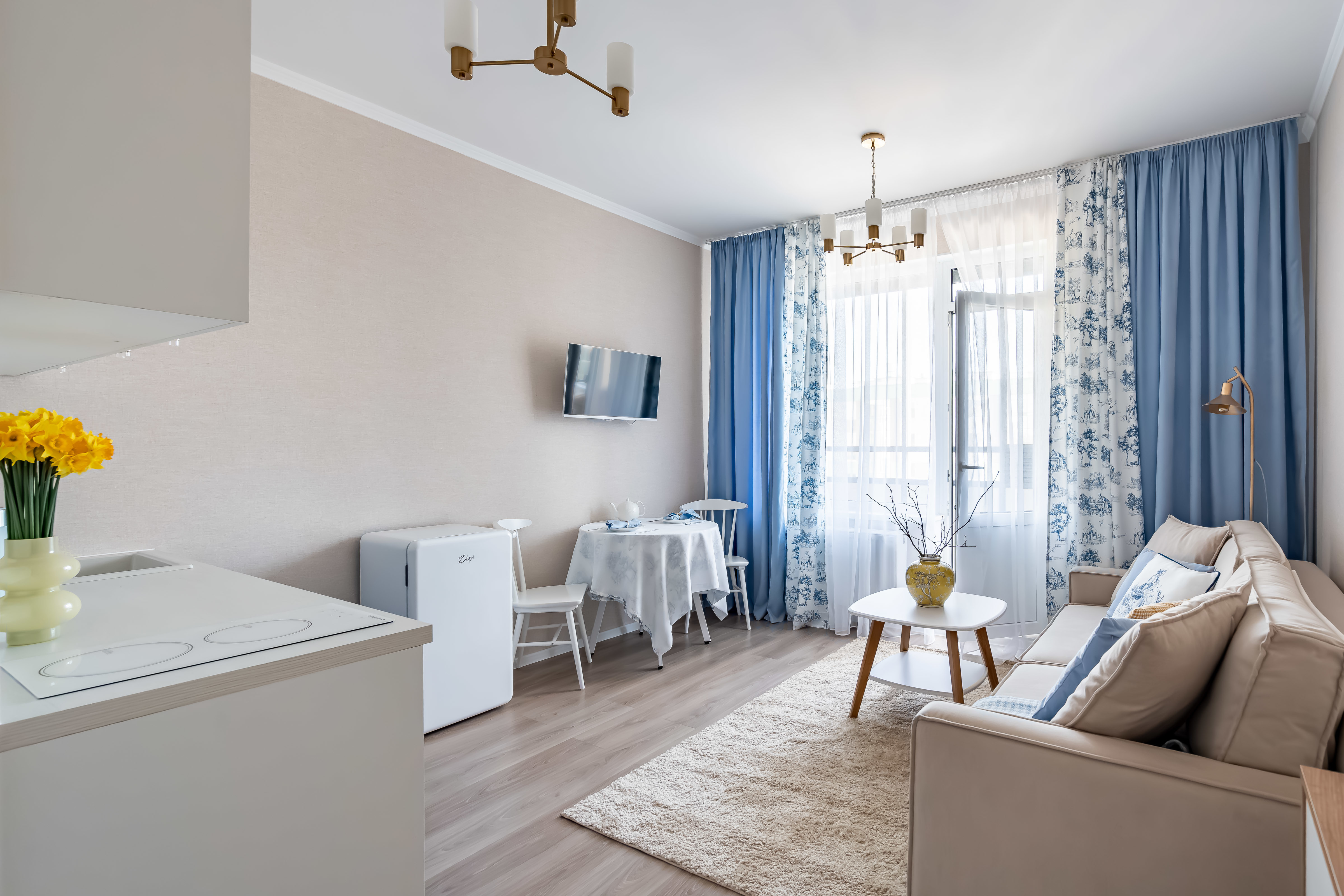В студии есть Wi-Fi (интернет), а также Smart-телевизор. В коридоре большой и вместительный шкаф-купе. В ванной комнате установлена стиральная машина, а также в распоряжении гостей фен для волос, утюг, сушилка для одежды (раскладная), бытовая химия.