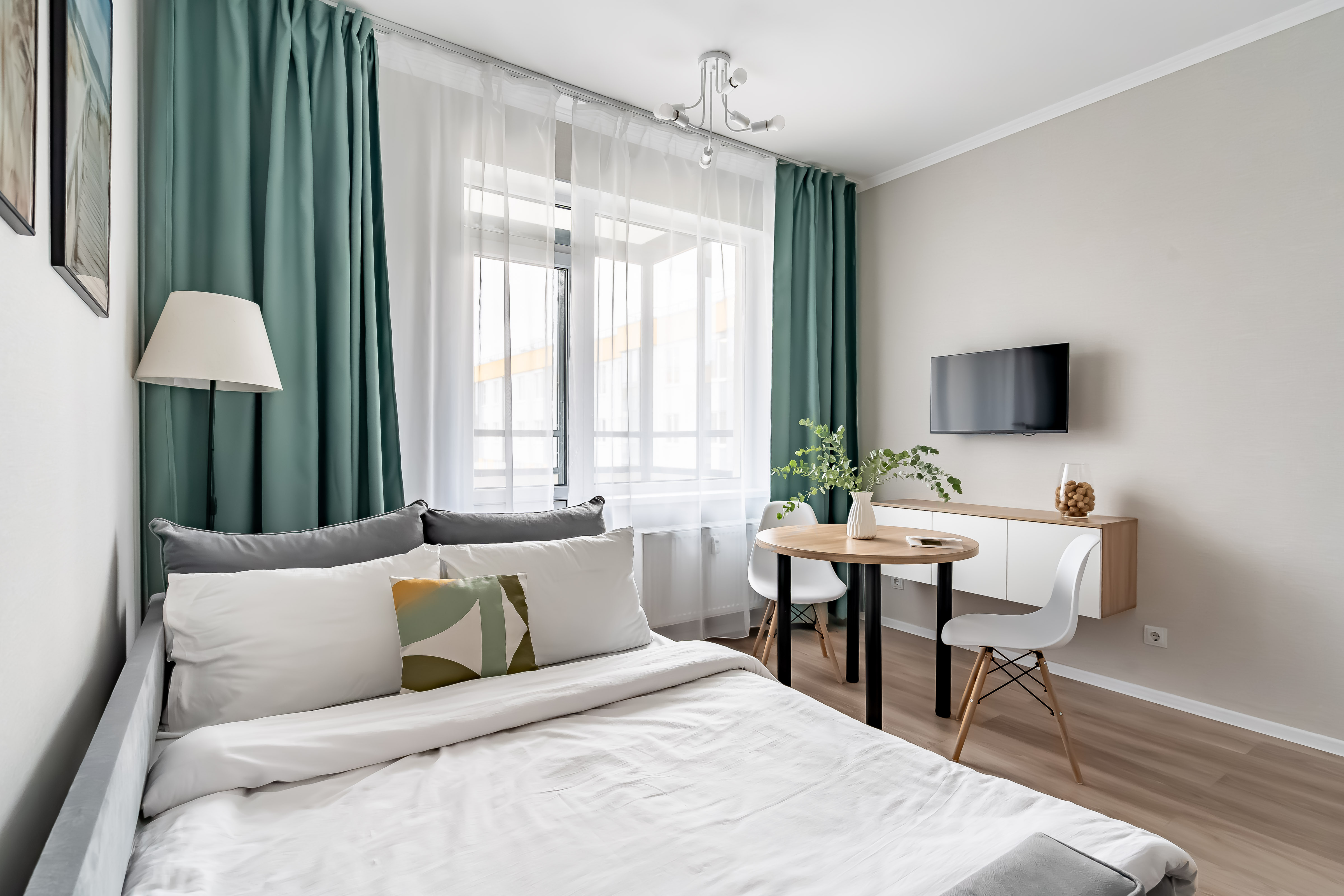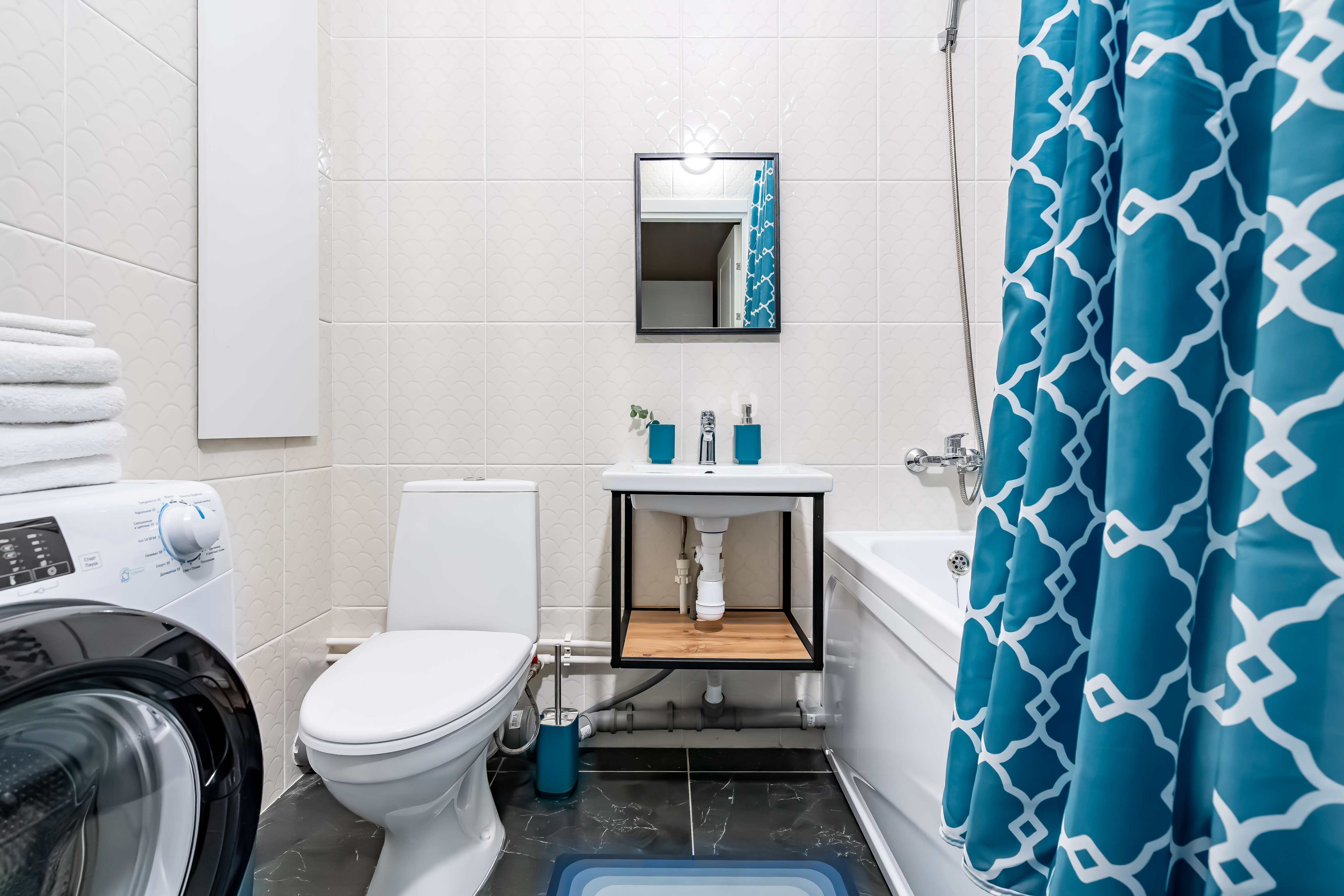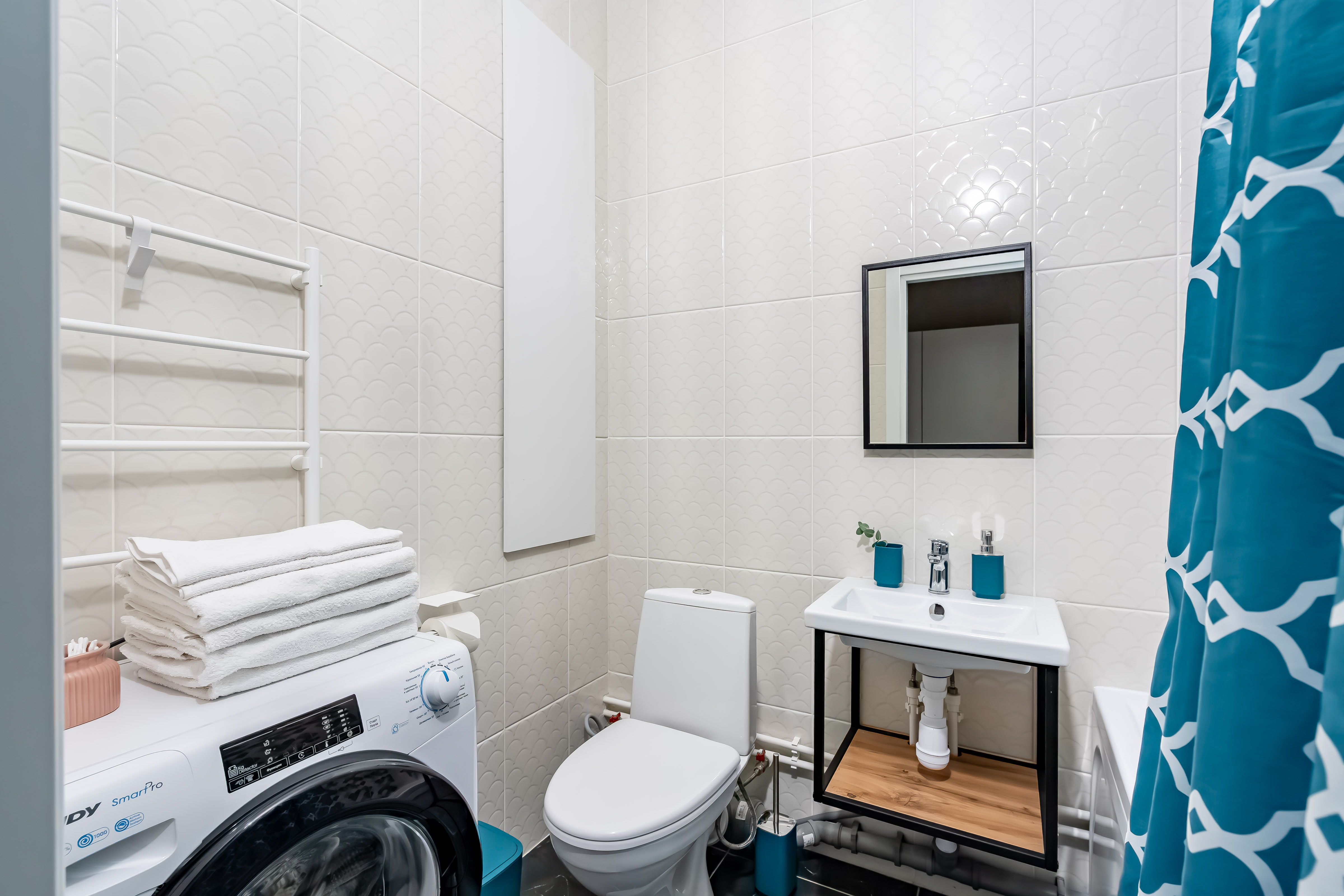 В студии есть Wi-Fi (интернет), а также Smart-телевизор. В коридоре большой и вместительный шкаф-купе. В ванной комнате установлена стиральная машина, а также в распоряжении гостей фен для волос, утюг, сушилка для одежды (раскладная), бытовая химия.