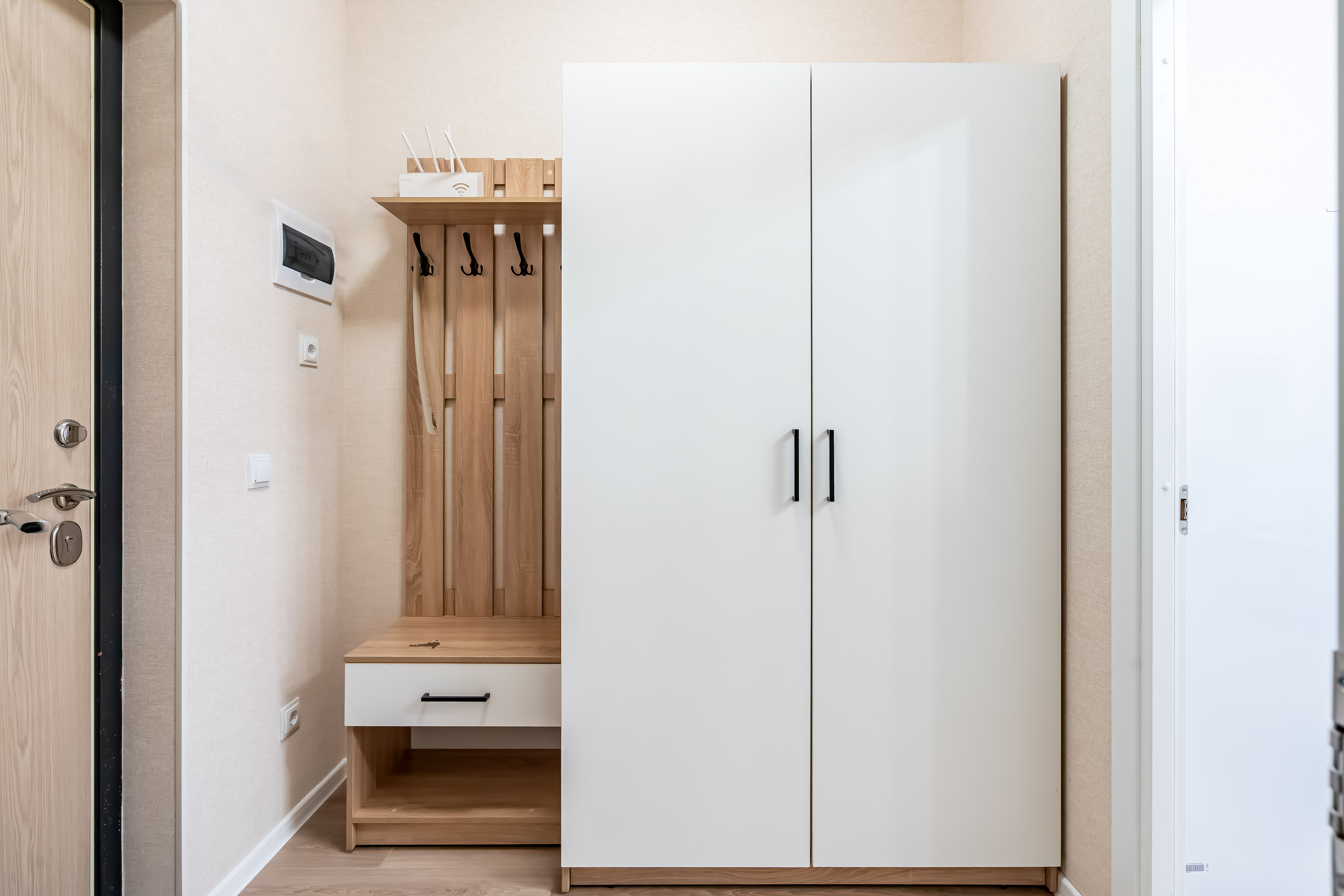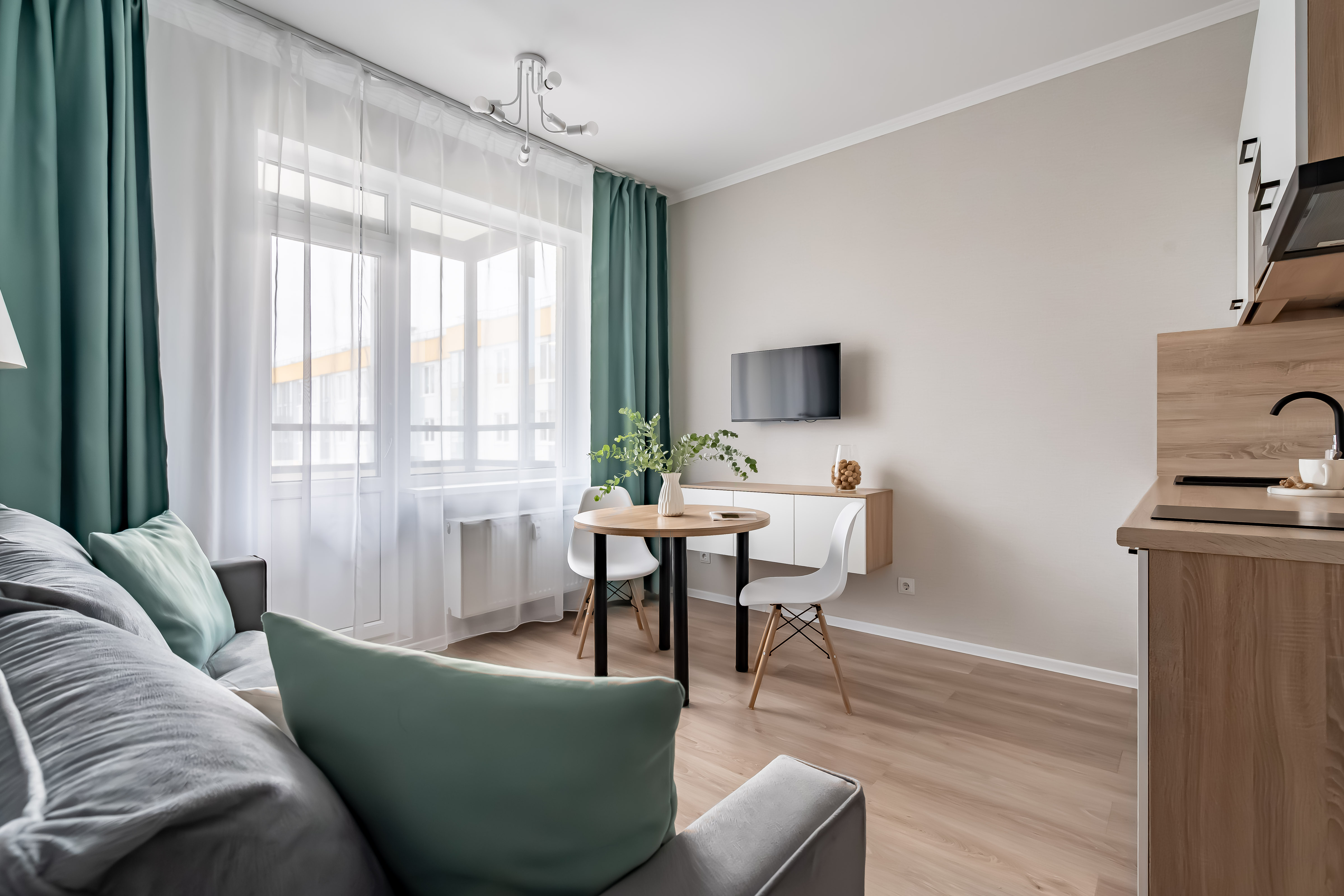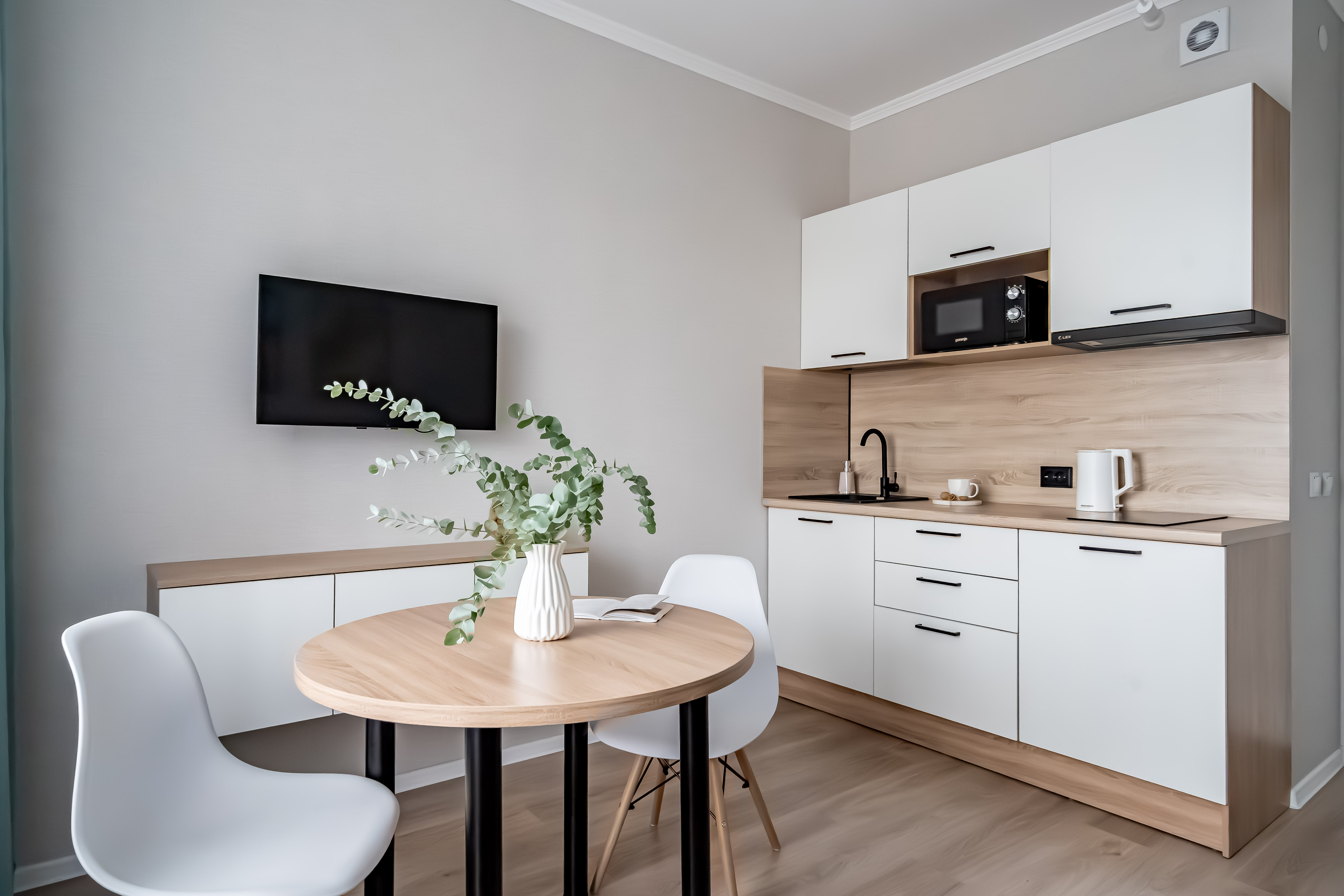 В студии есть Wi-Fi (интернет), а также Smart-телевизор. В коридоре большой и вместительный шкаф-купе. В ванной комнате установлена стиральная машина, а также в распоряжении гостей фен для волос, утюг, сушилка для одежды (раскладная), бытовая химия.