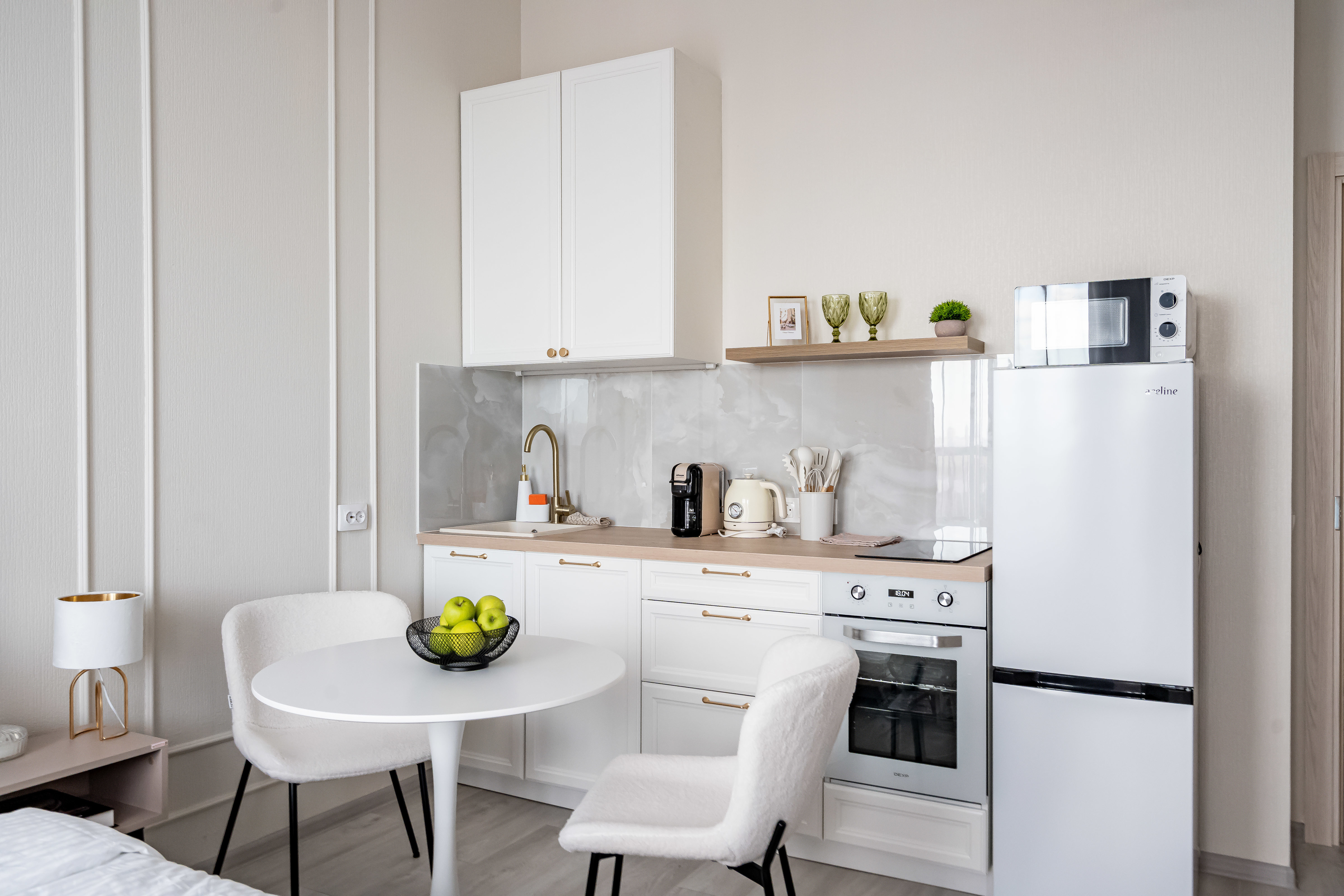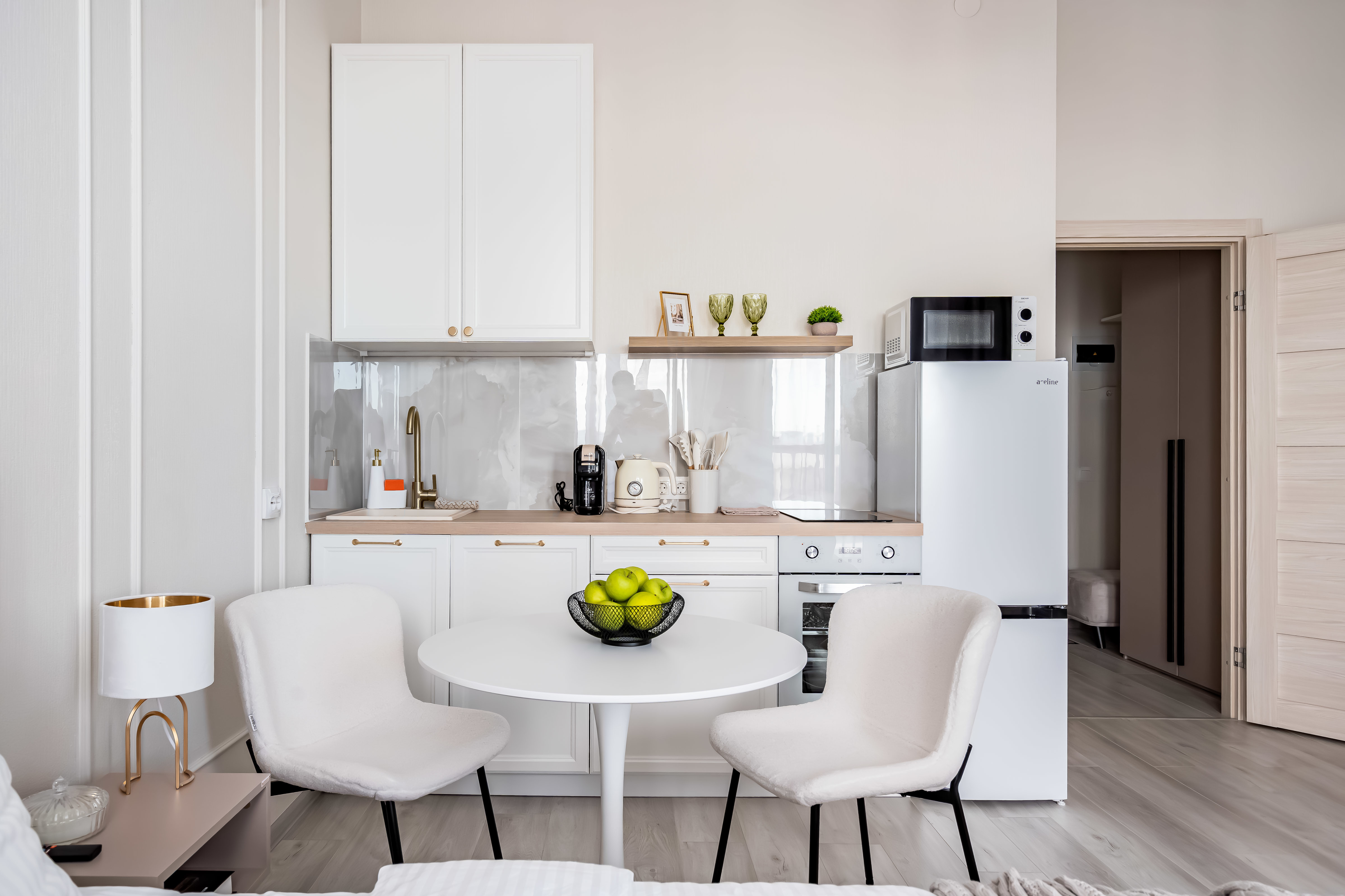 — Кондиционер, посудомоечная машина, стиральная (и сушильная) машина, капсульная кофемашина, тостер, СВЧ, духовой шкаф, бойлер, фен, утюг, пылесос.