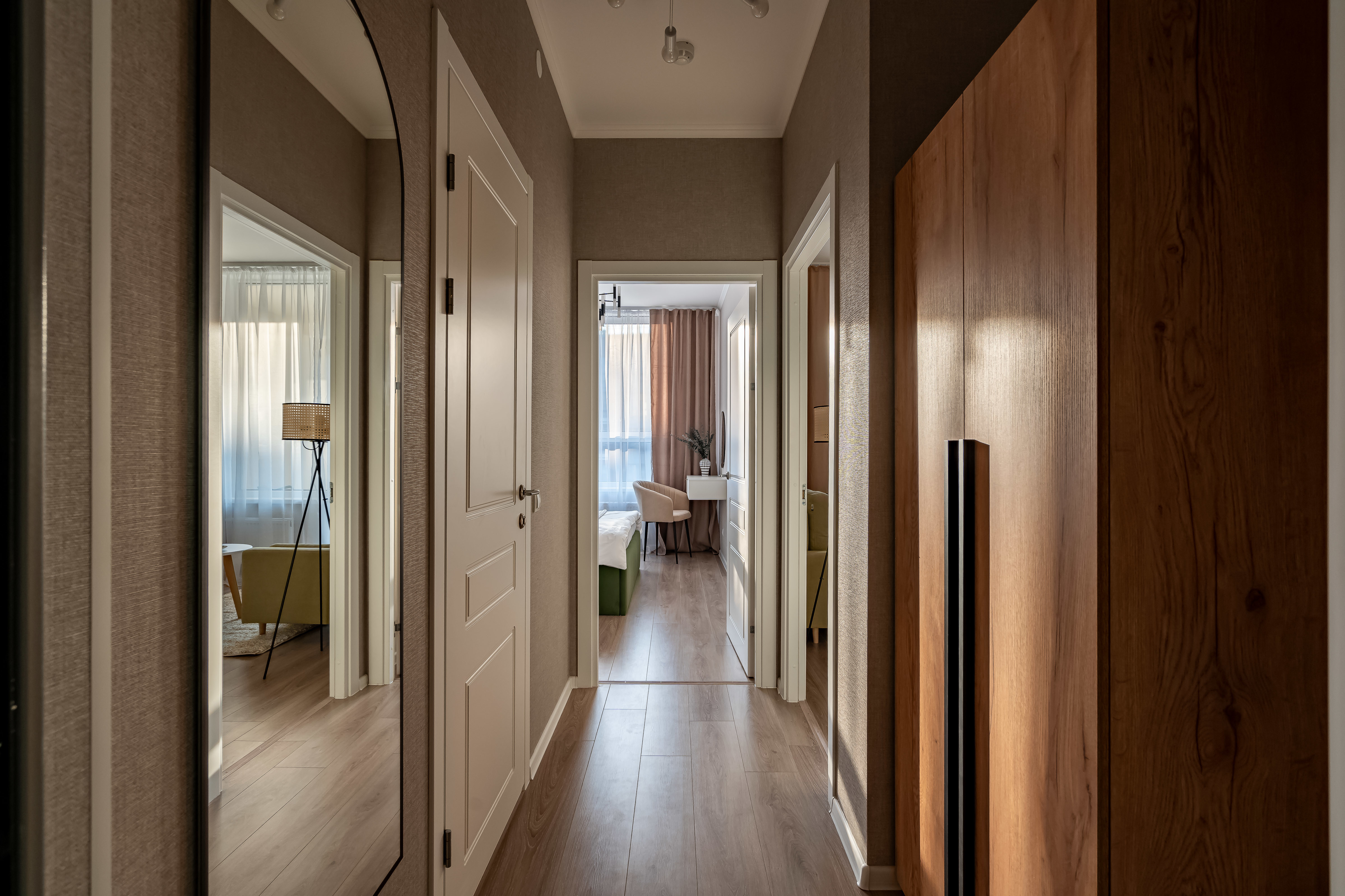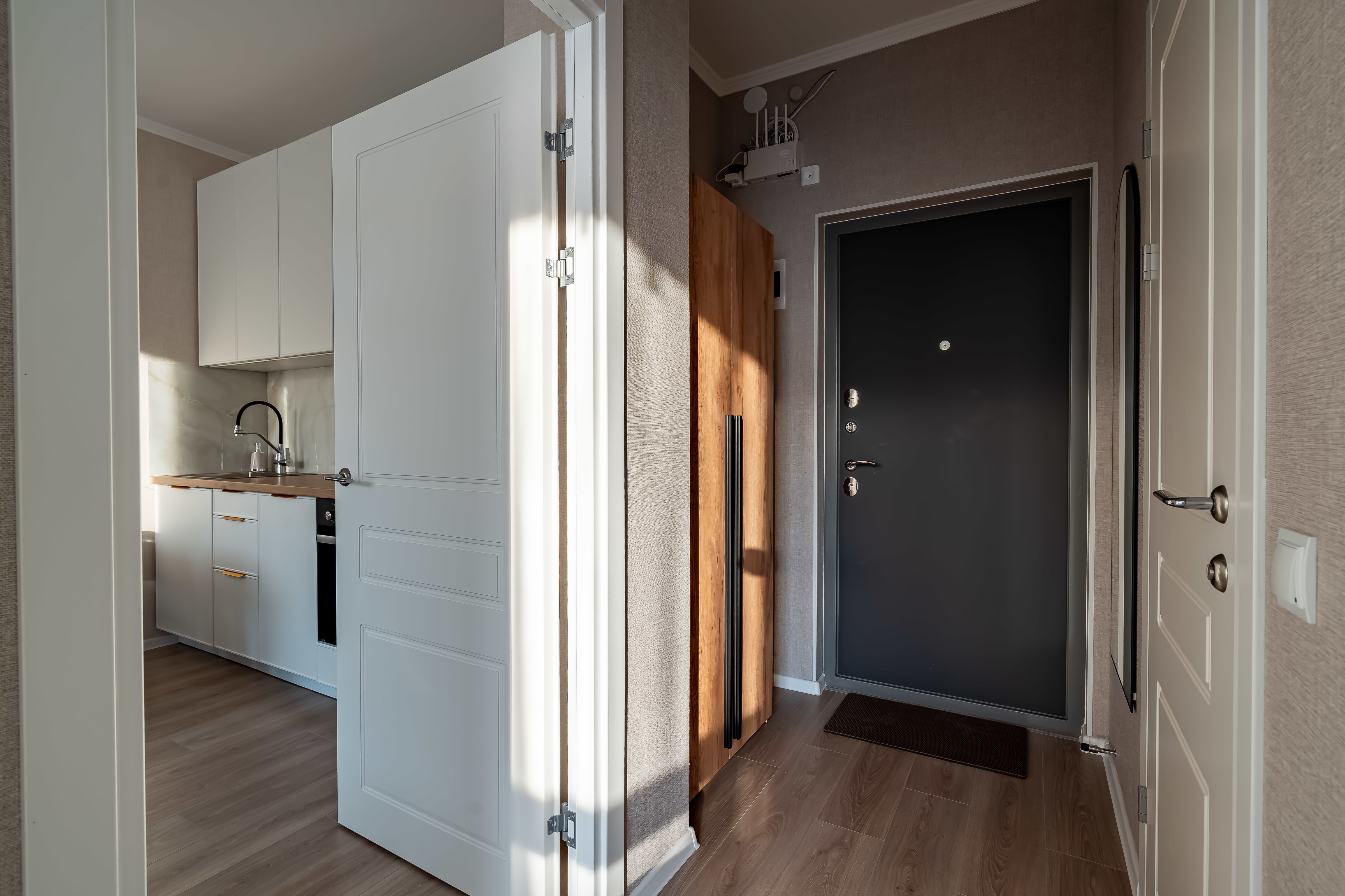 - Много мест хранения (шкаф в коридоре и спальне).