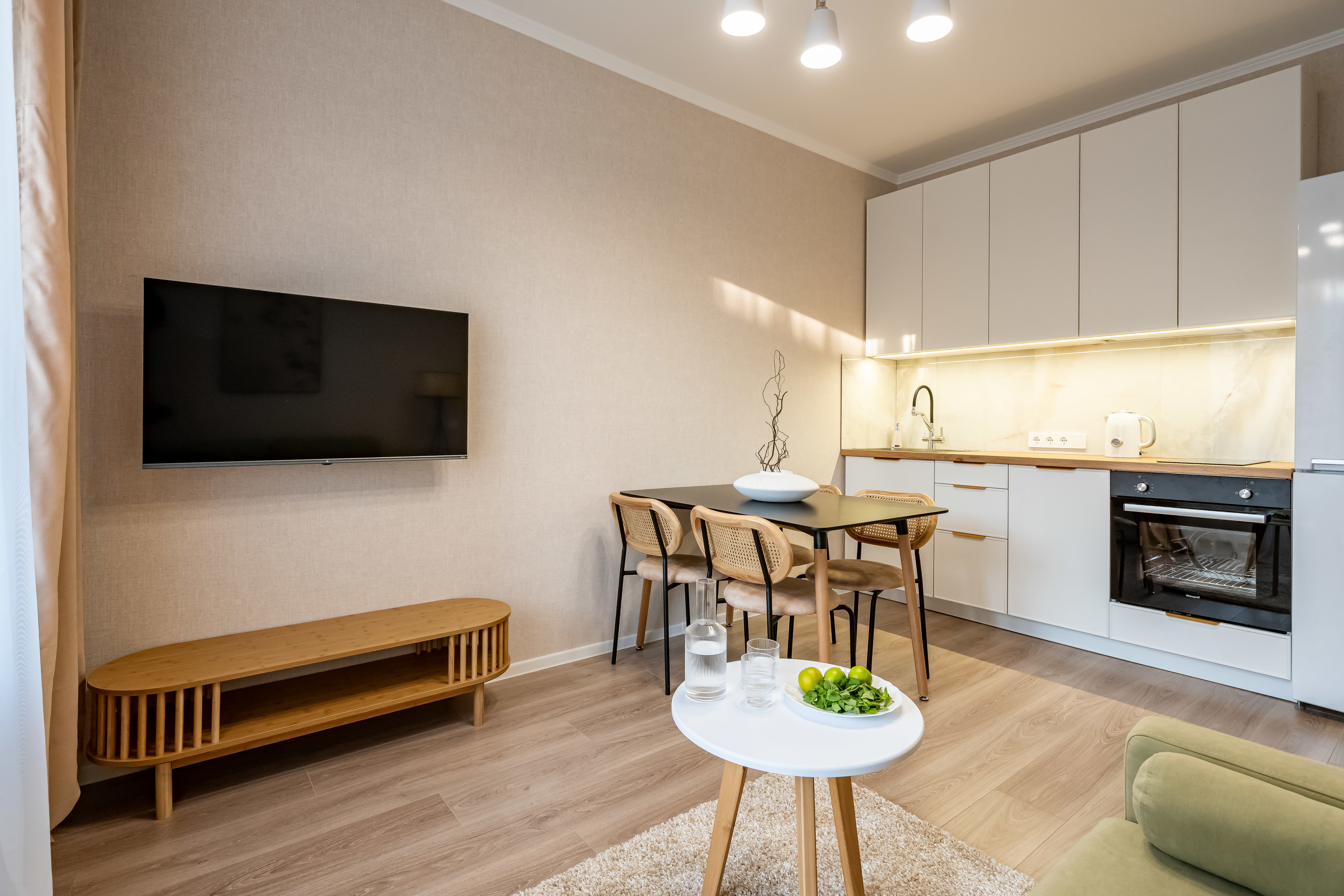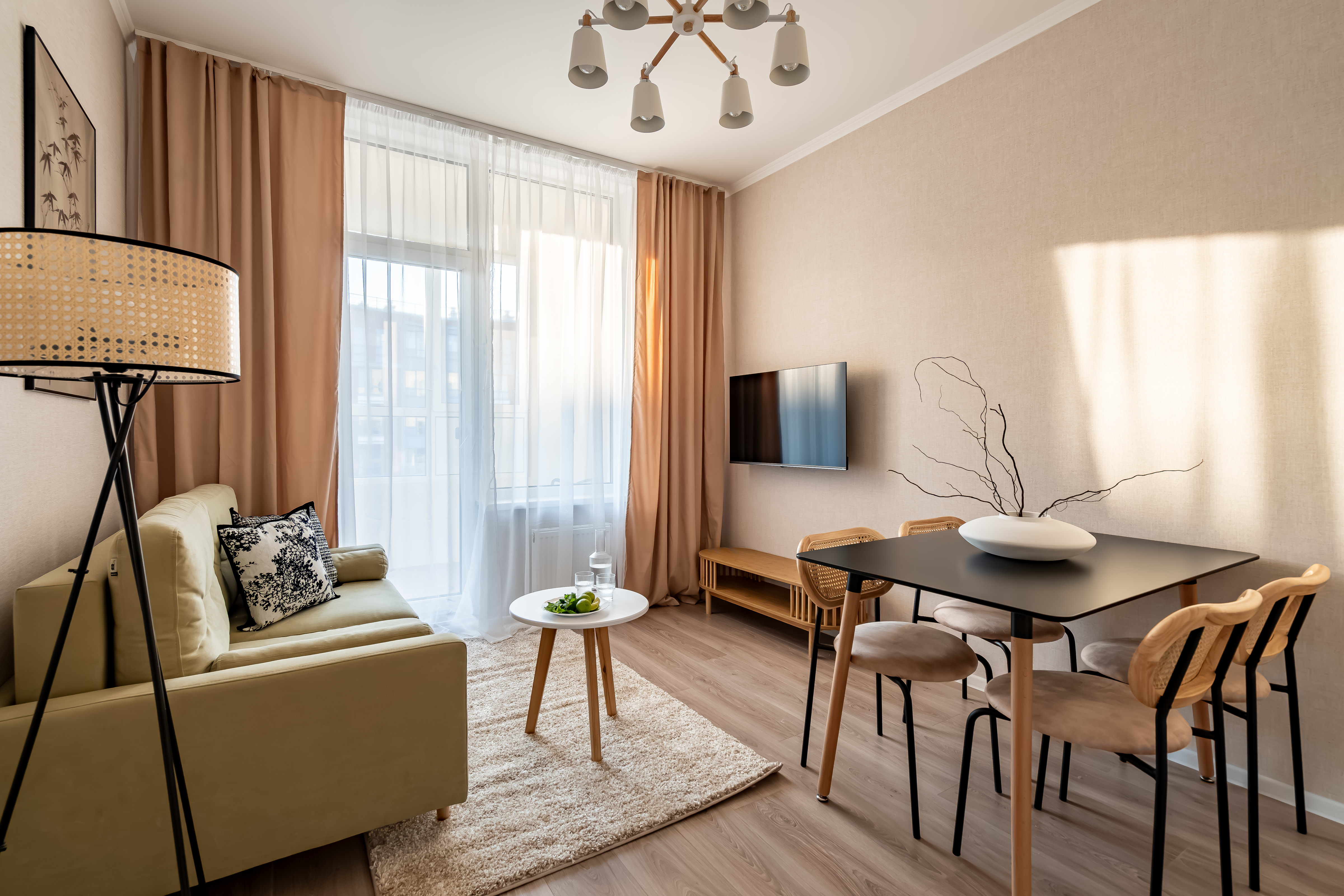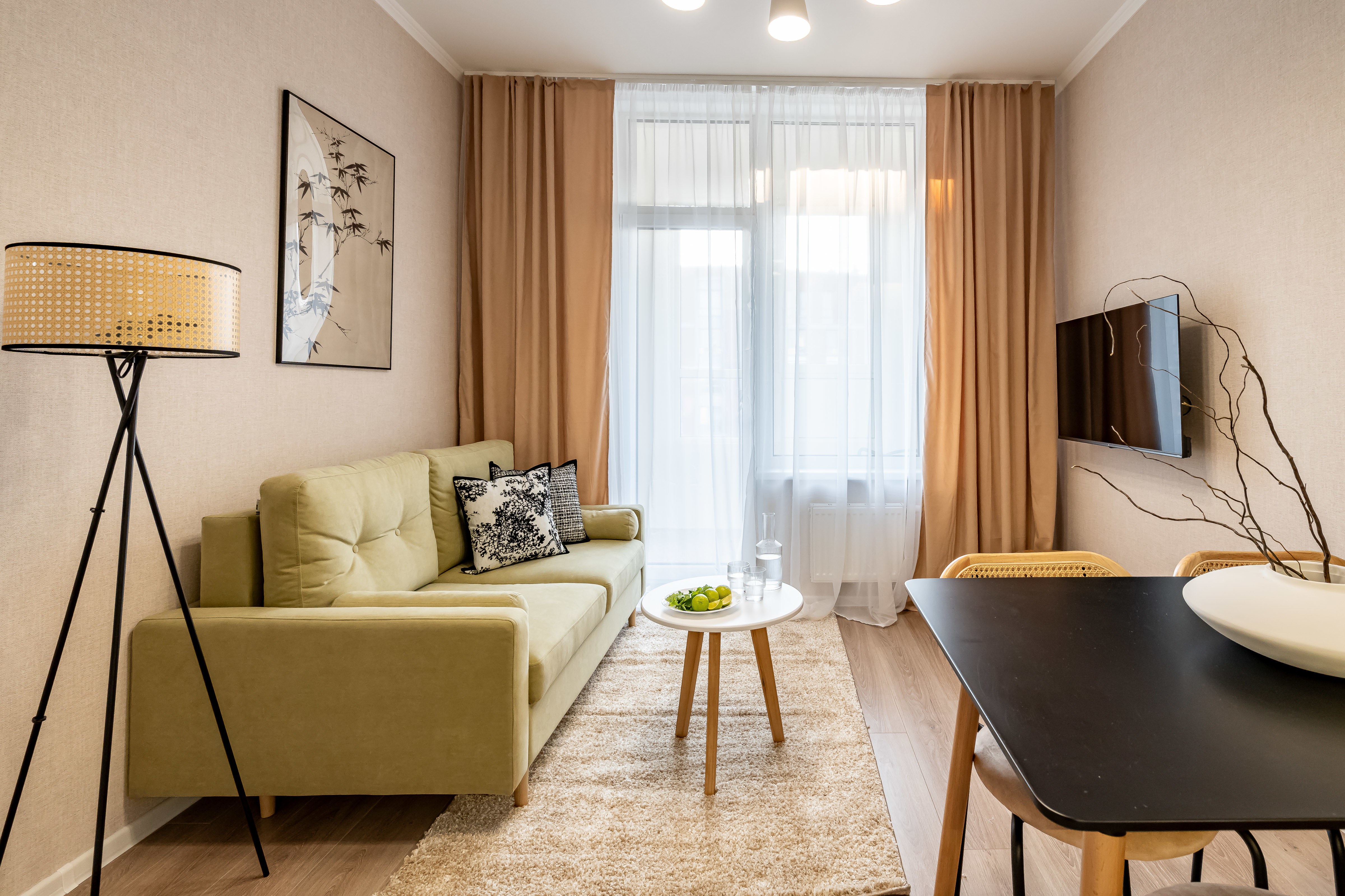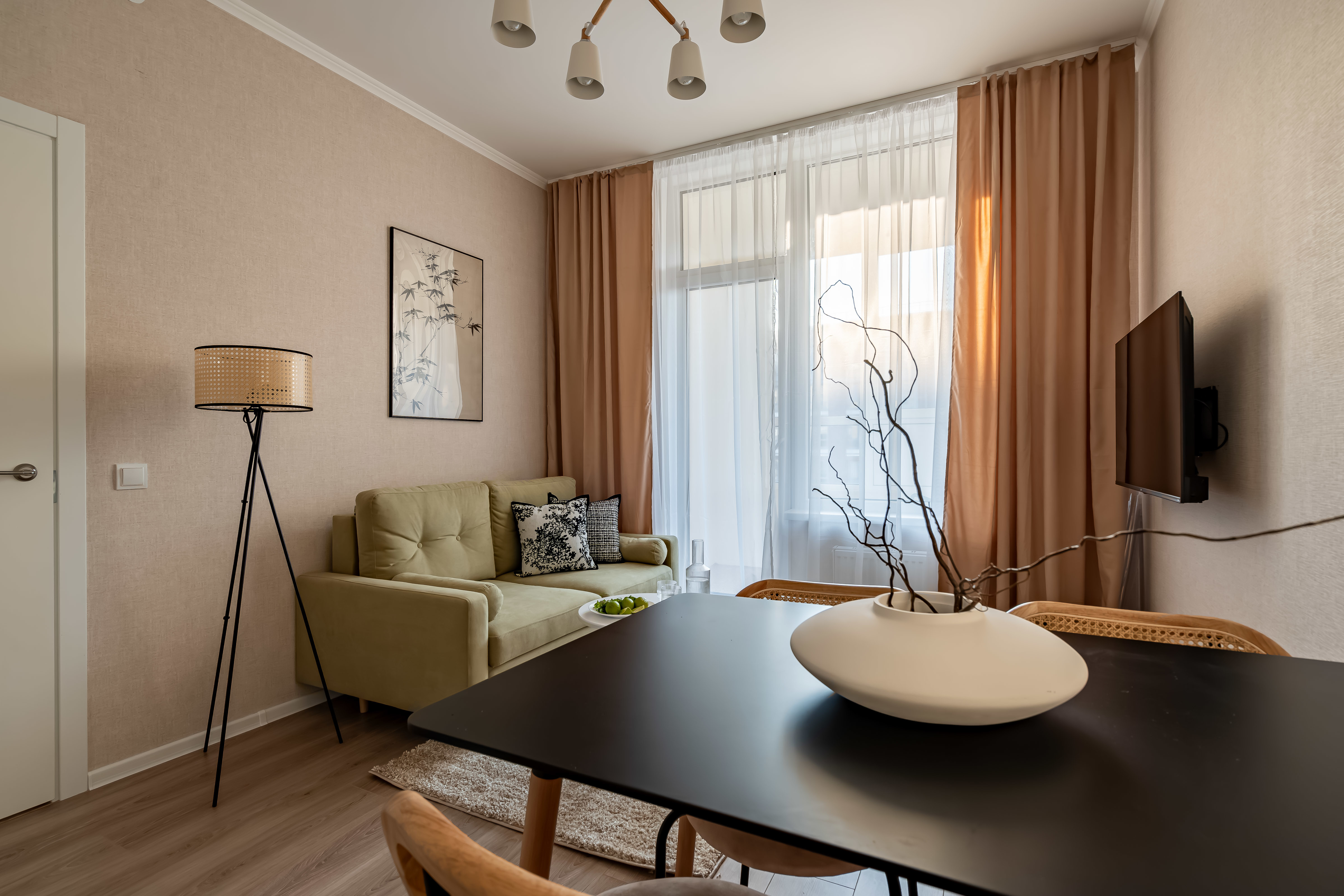 - Раскладной диван (всего в квартире можно разместиться вчетвером 2+2).