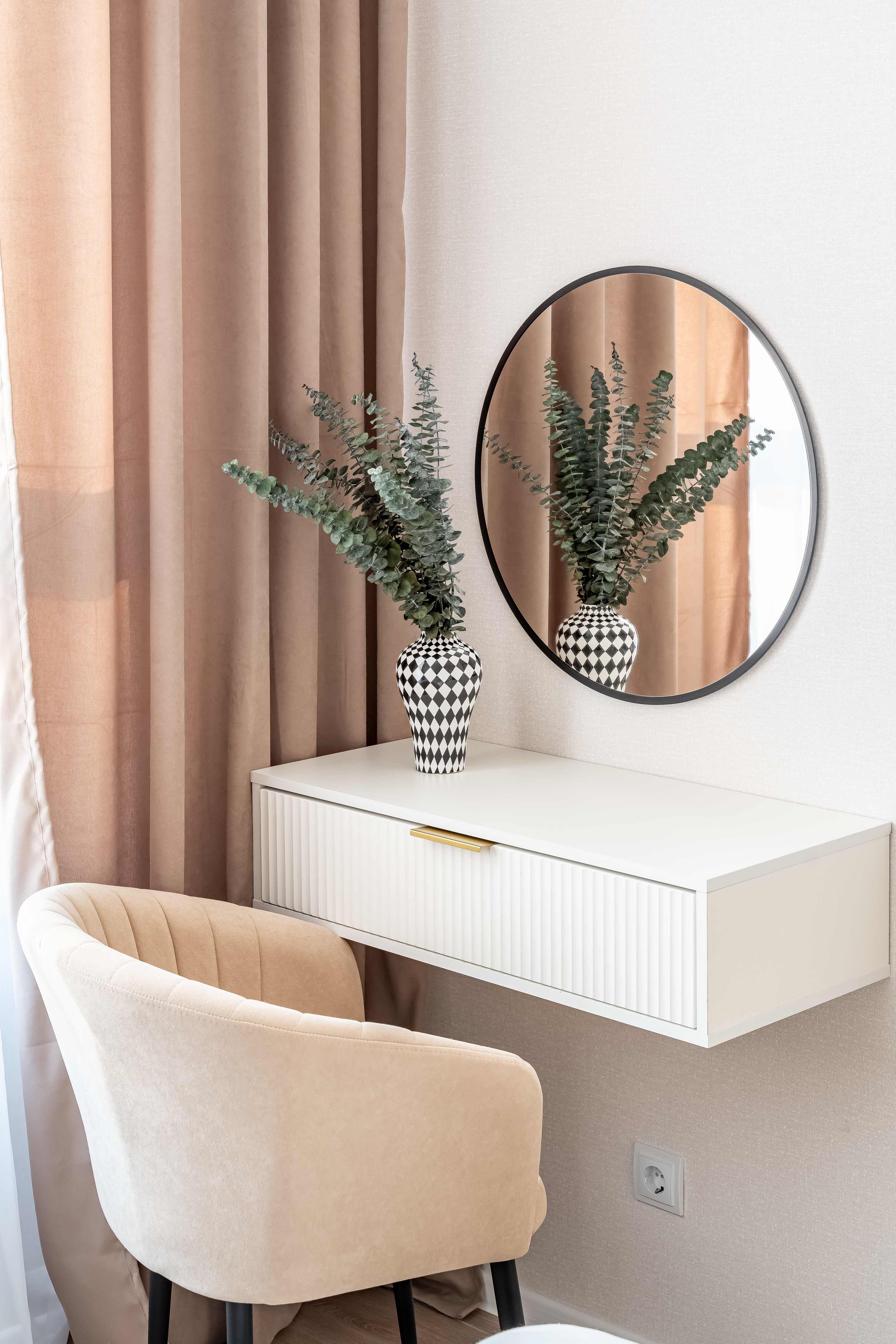 - Консольный столик с зеркалом в спальне.
