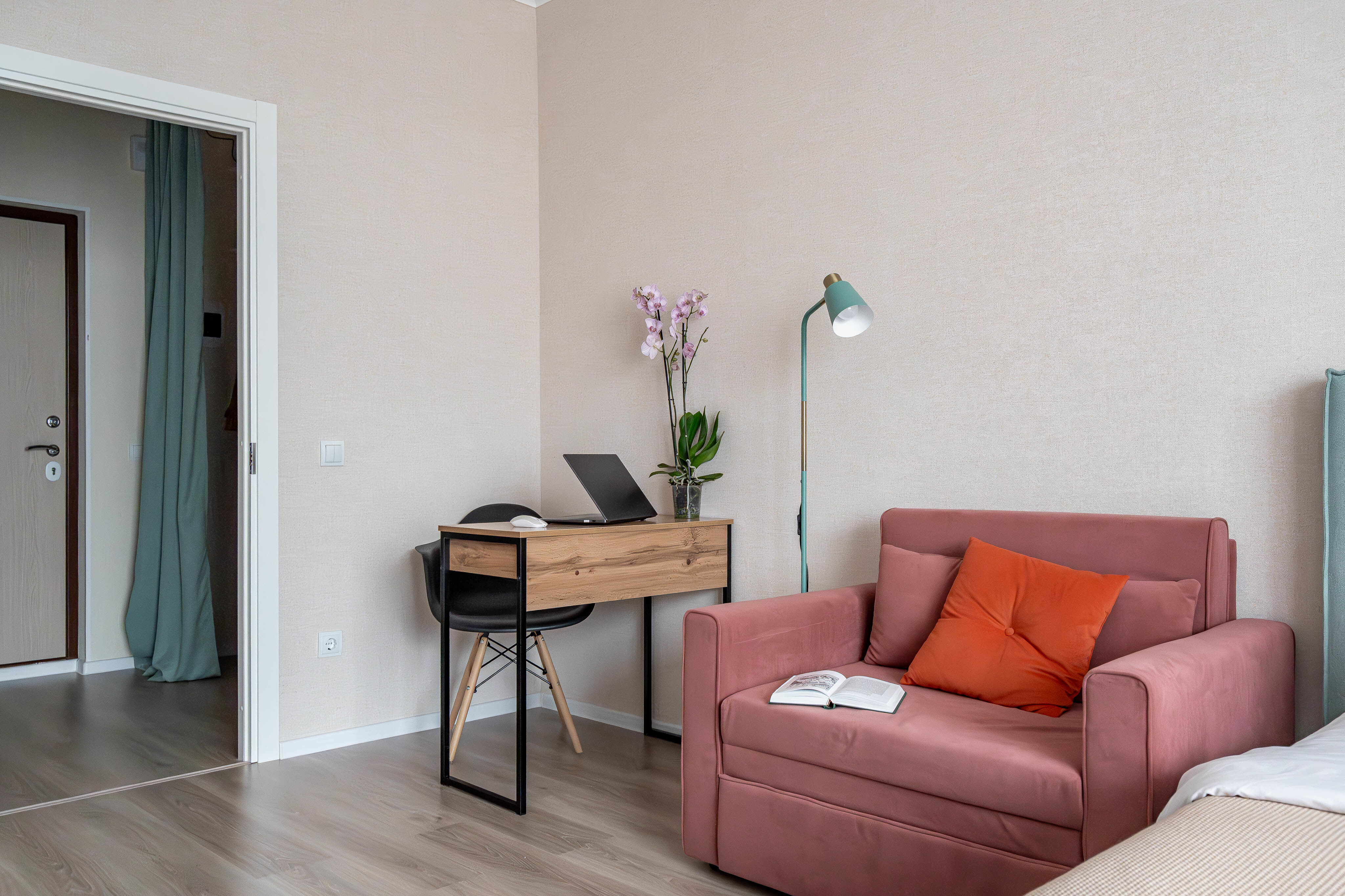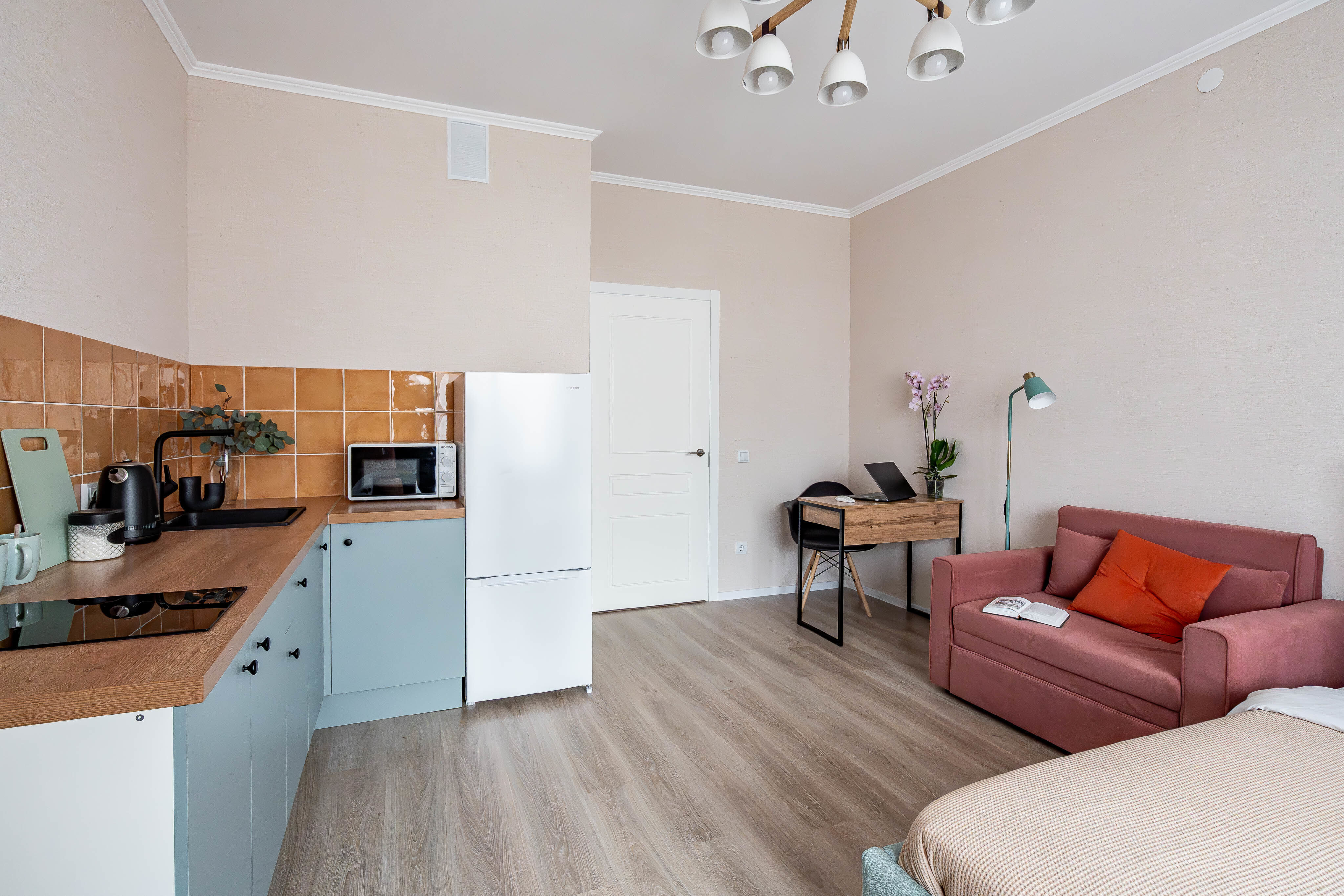 Cдaeтся вмеcтитeльная квартира-студия в ЖK «Любоград». Рядом магазины Леруа Мерлен и Лента (7 минут ходьбы), а также Стрельна и ЖК «Солнечный город» со всей инфраструктурой, работают все службы доставки продуктов и еды. До метро Ветеранов ходит трамвай, остановка в 7 минутах ходьбы, изолированный транспорт, в пробках стоять не надо.