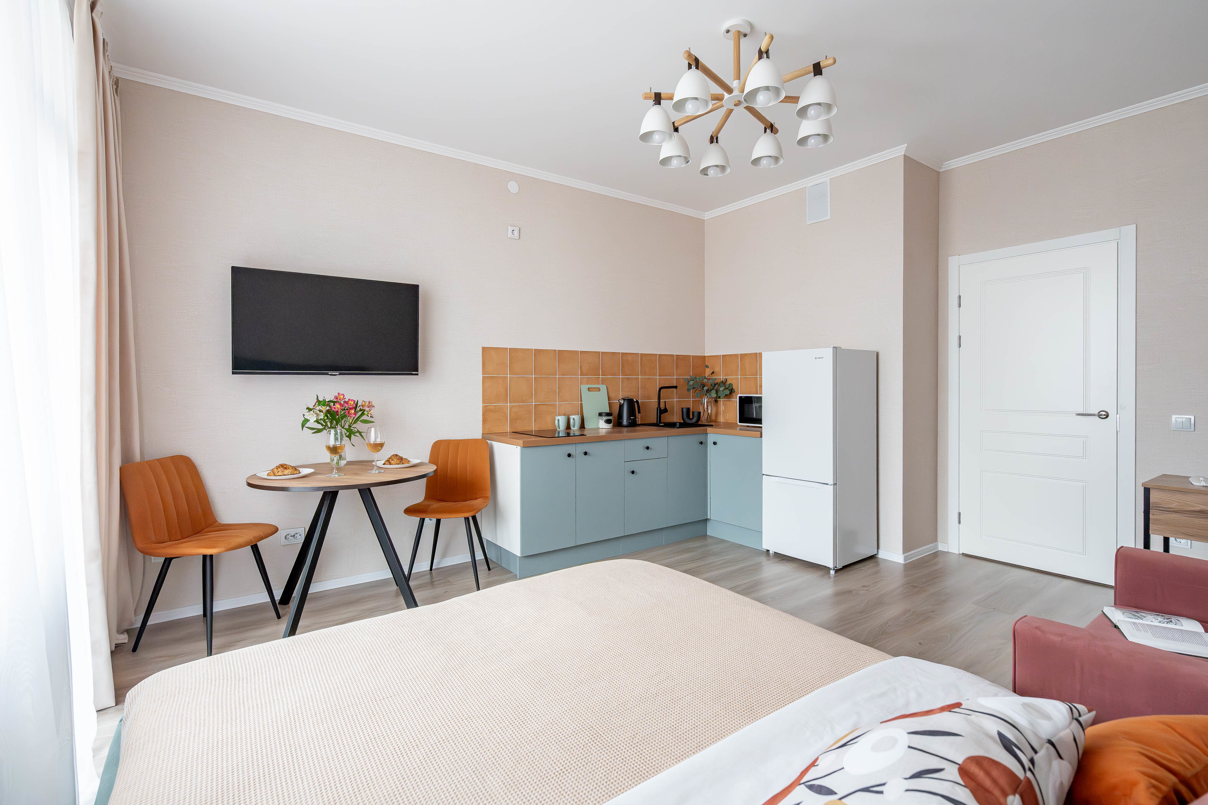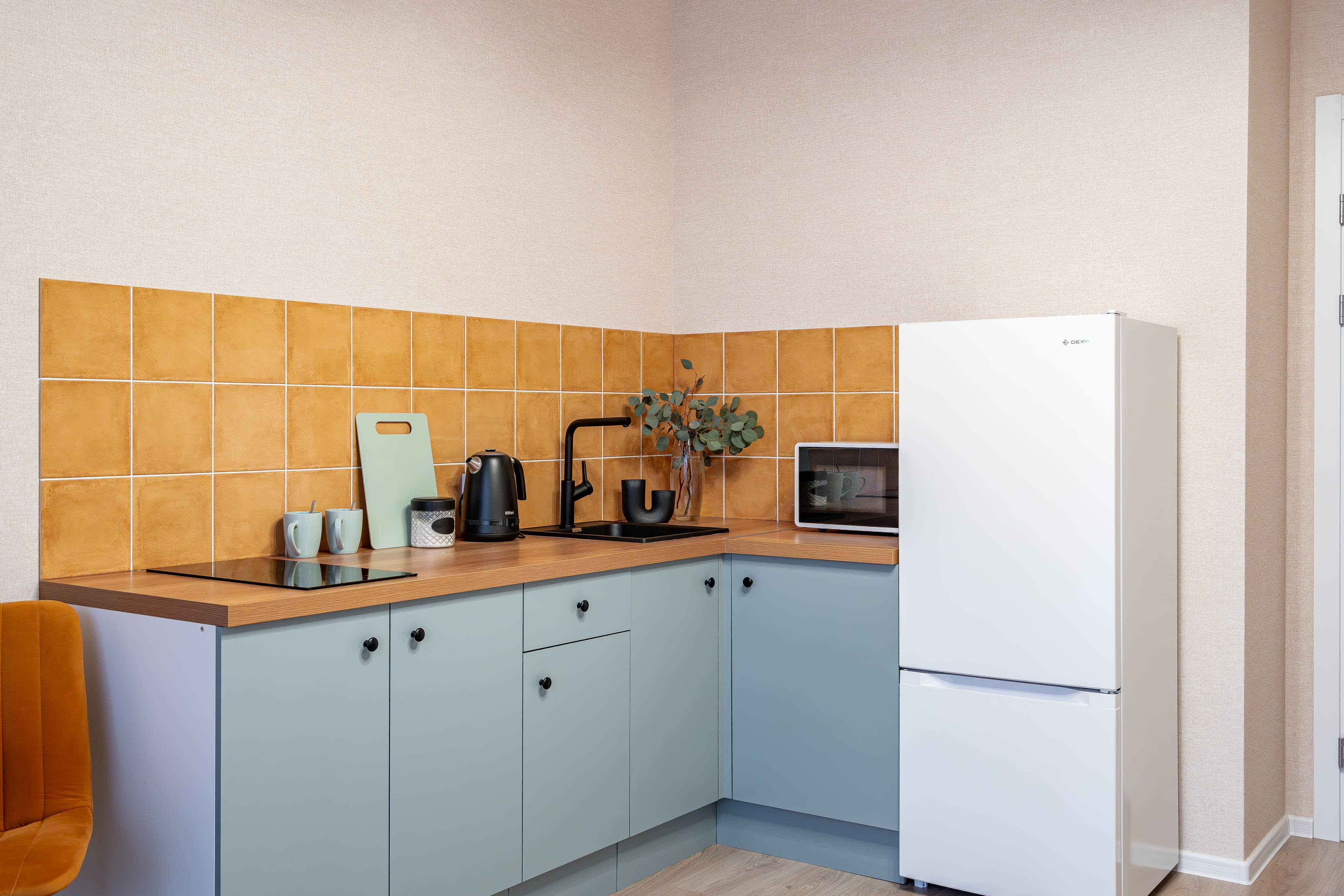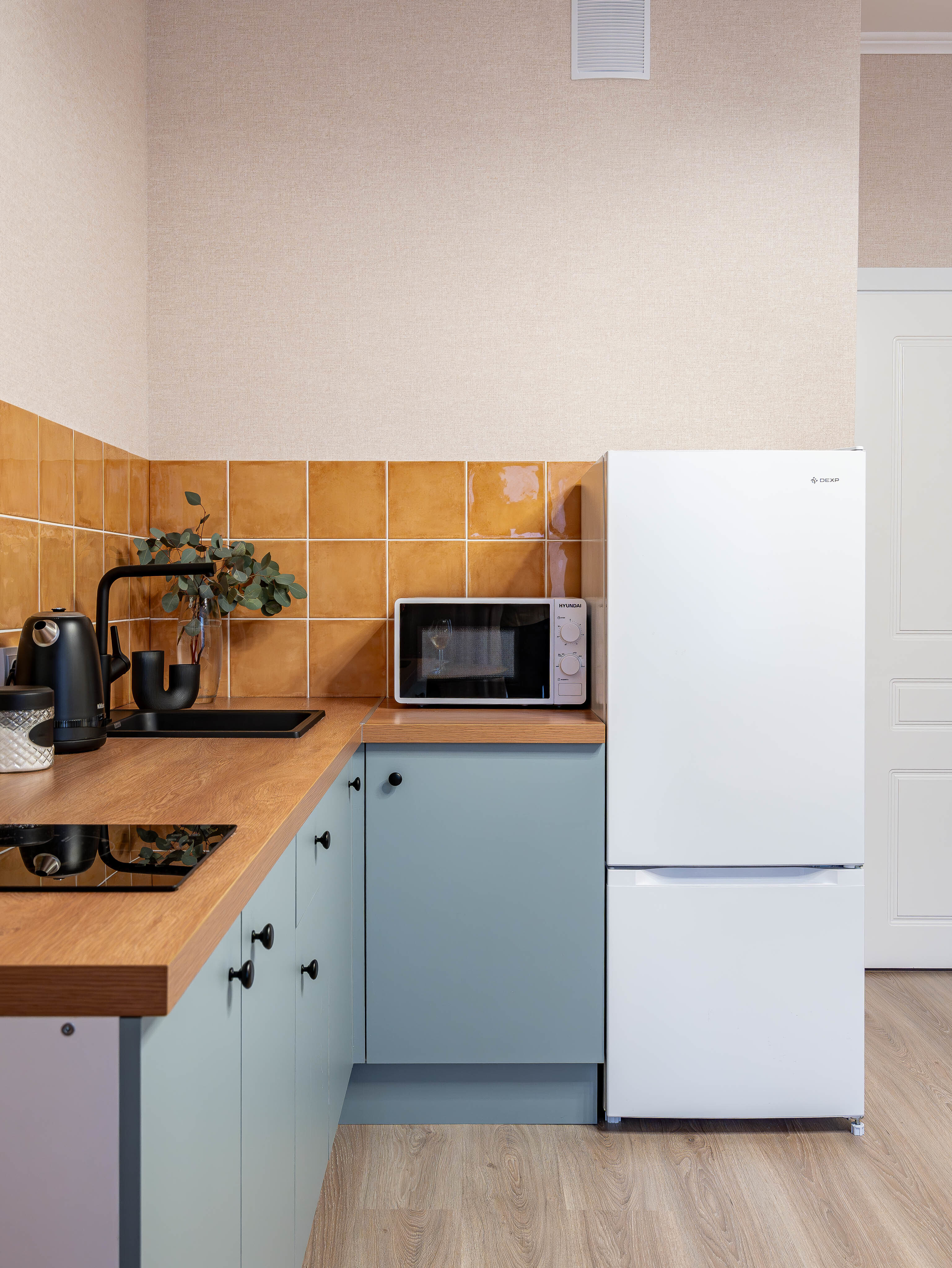 — Вся техника в вашем распоряжении: холодильник, стиральная машина, электрическая плита, СВЧ, телевизор со Smаrt ТV, чайник, пылесос, фен, роутер, утюг, сушилка и гладильная доска.
